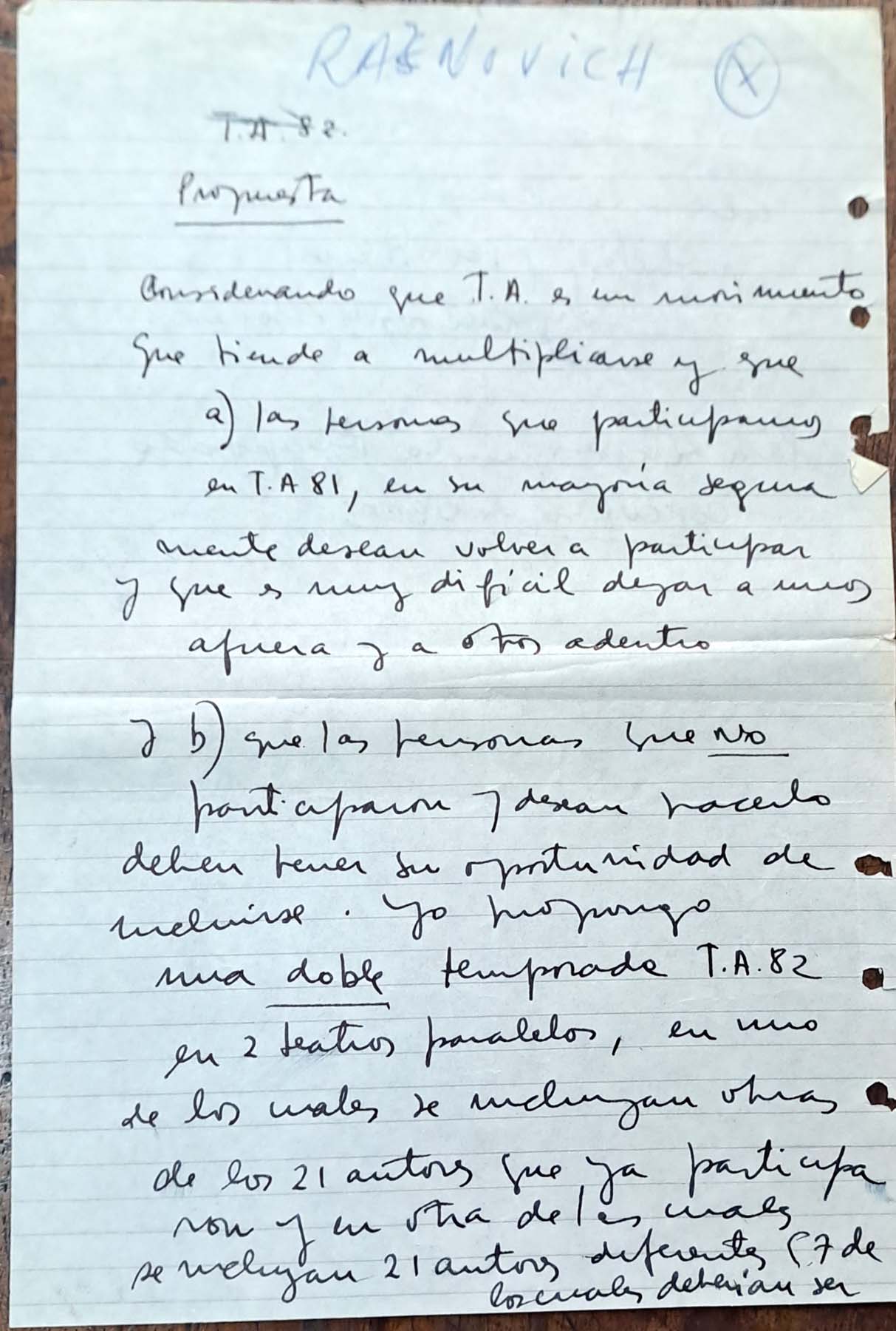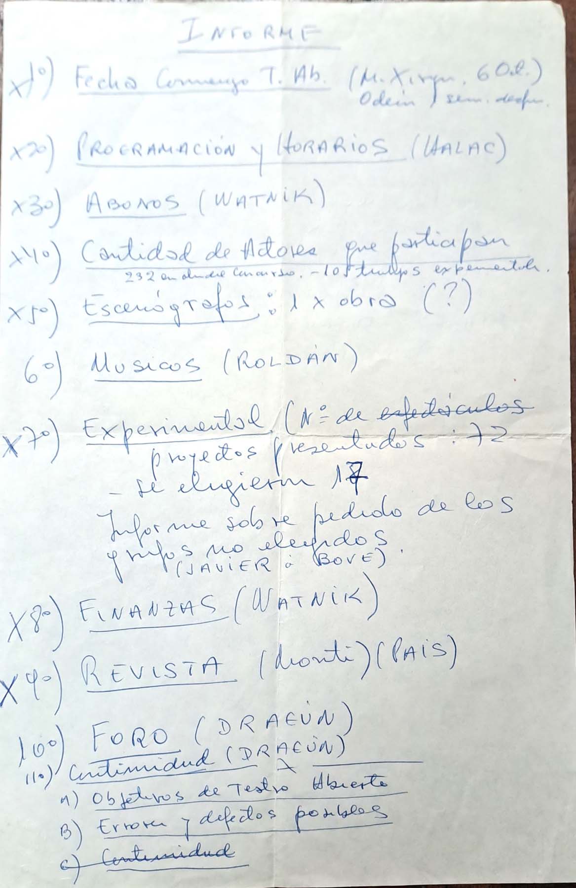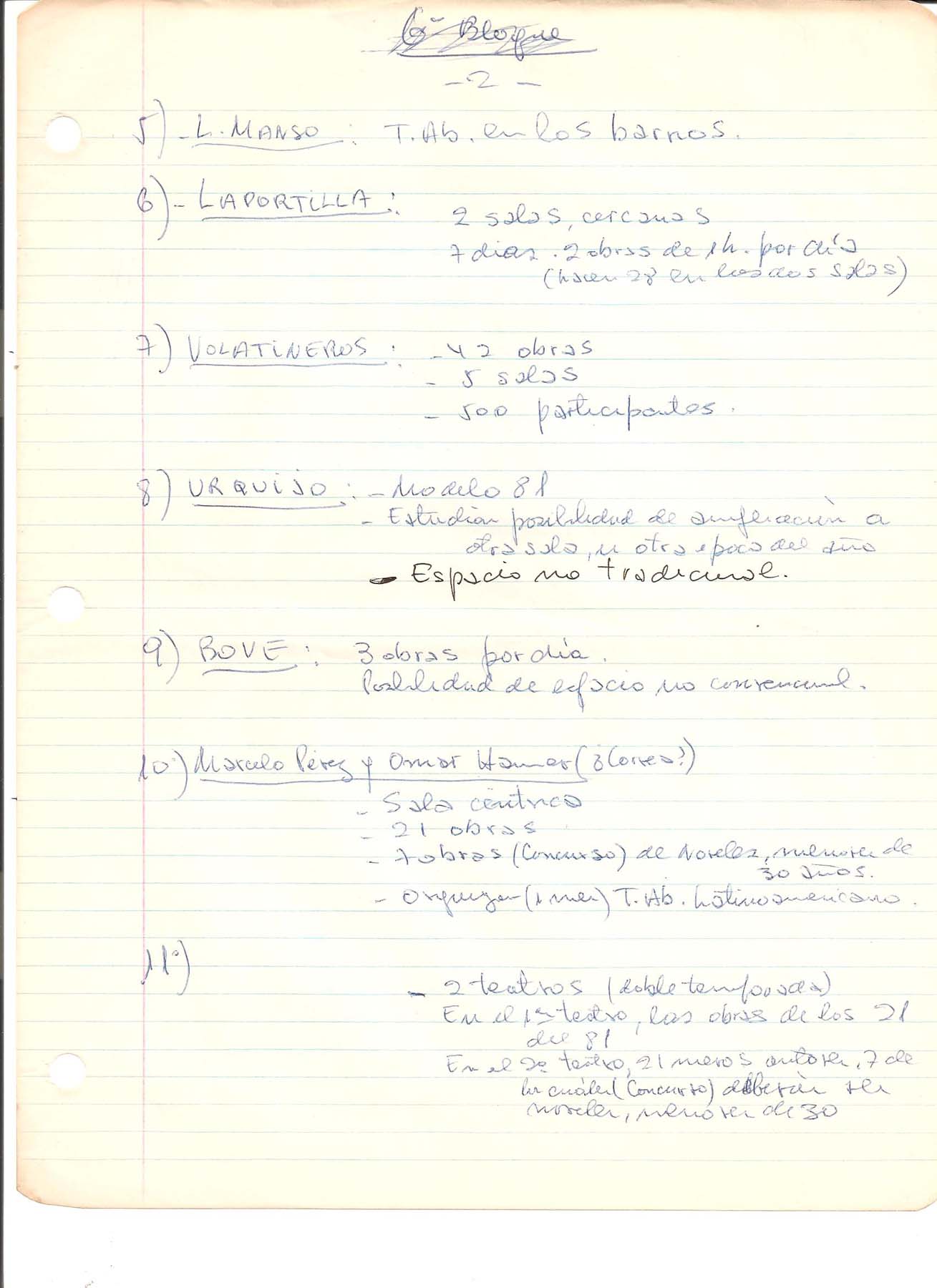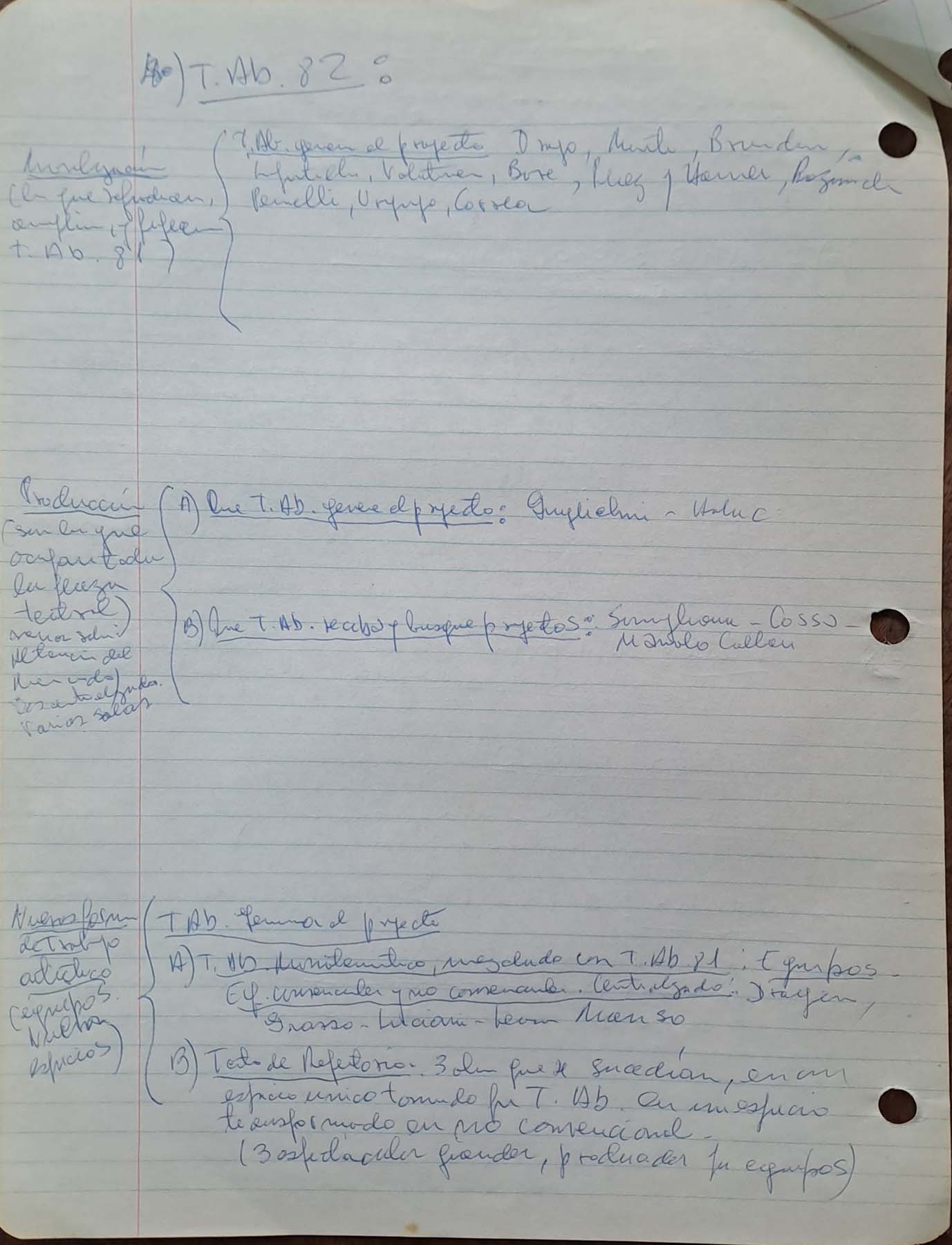 - Reunión sin fechar sobre propuestas para la realización de Teatro Abierto 1982