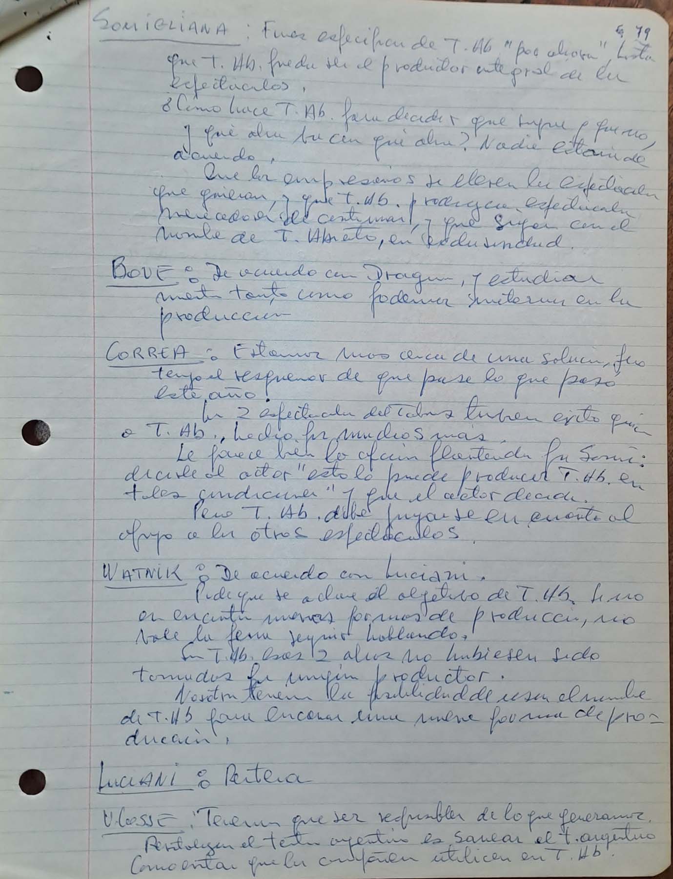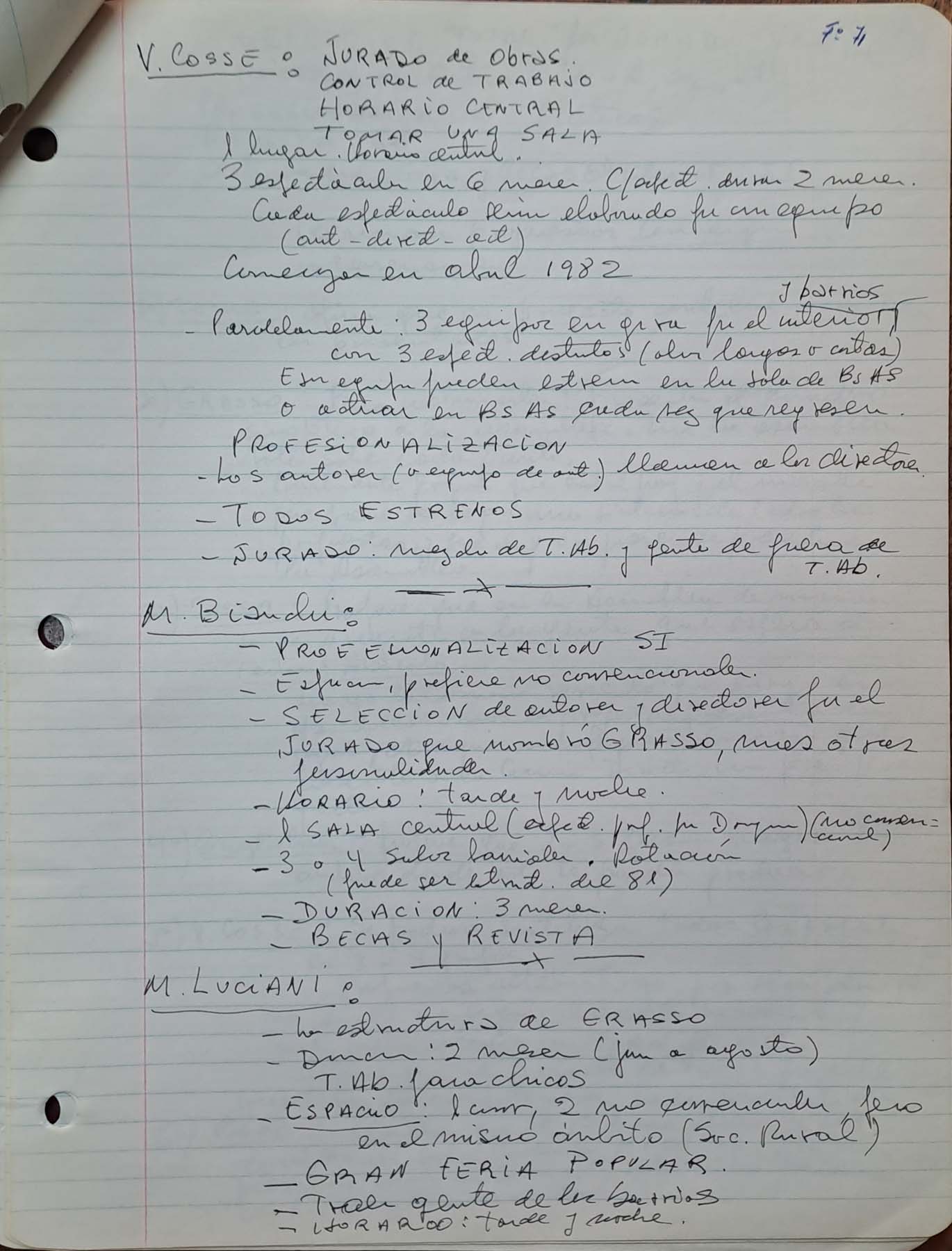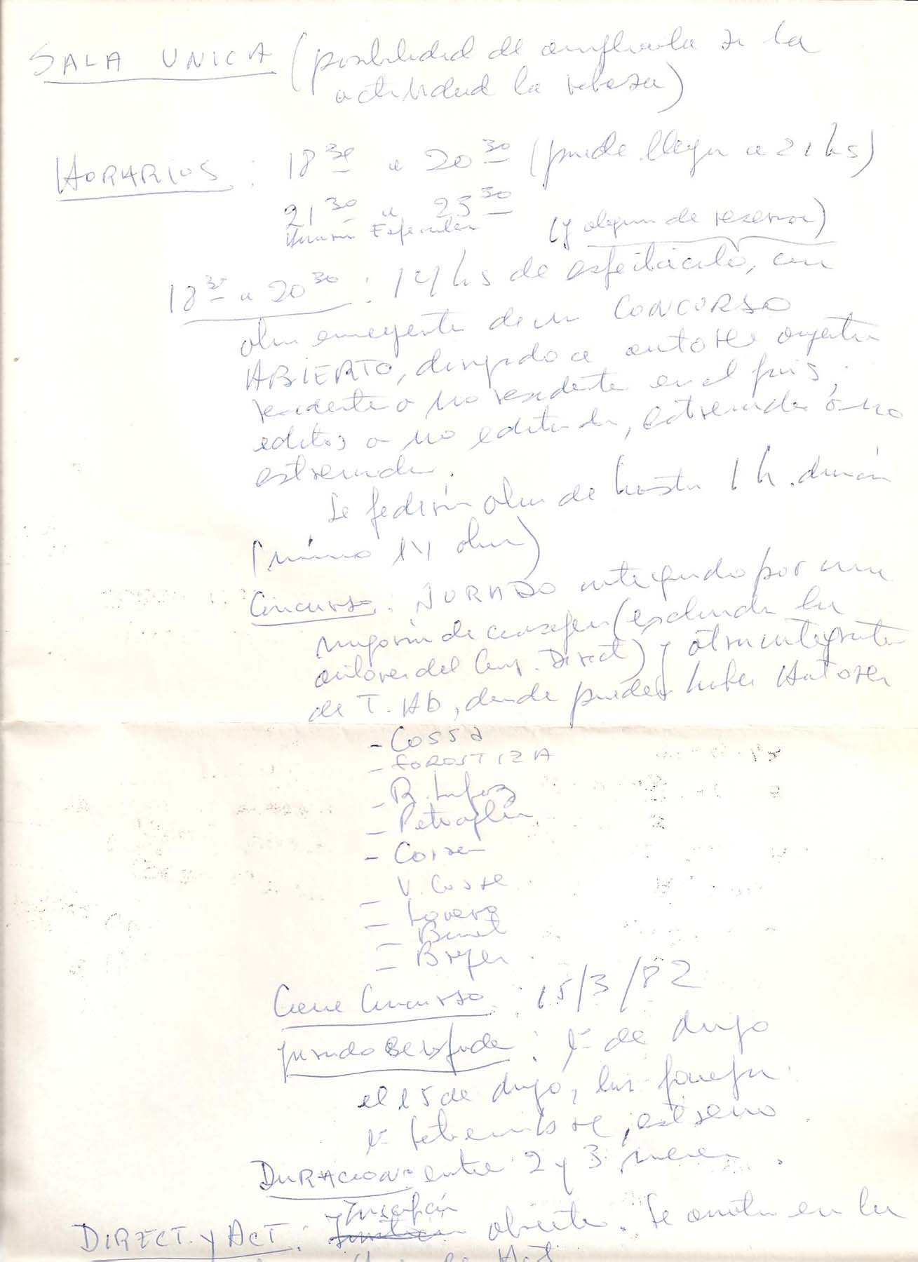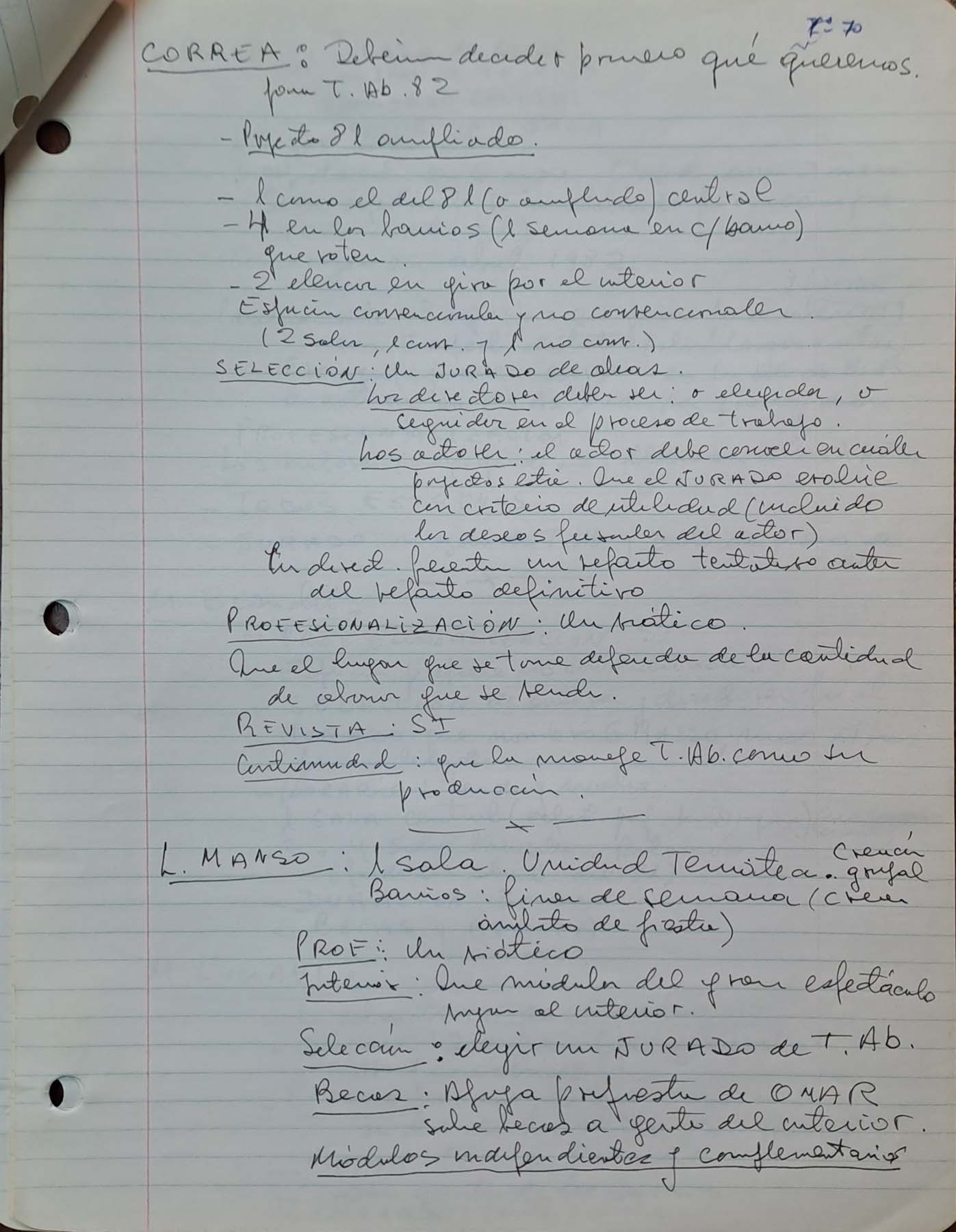 - Reunión sin fechar sobre propuestas para la realización de Teatro Abierto 1982