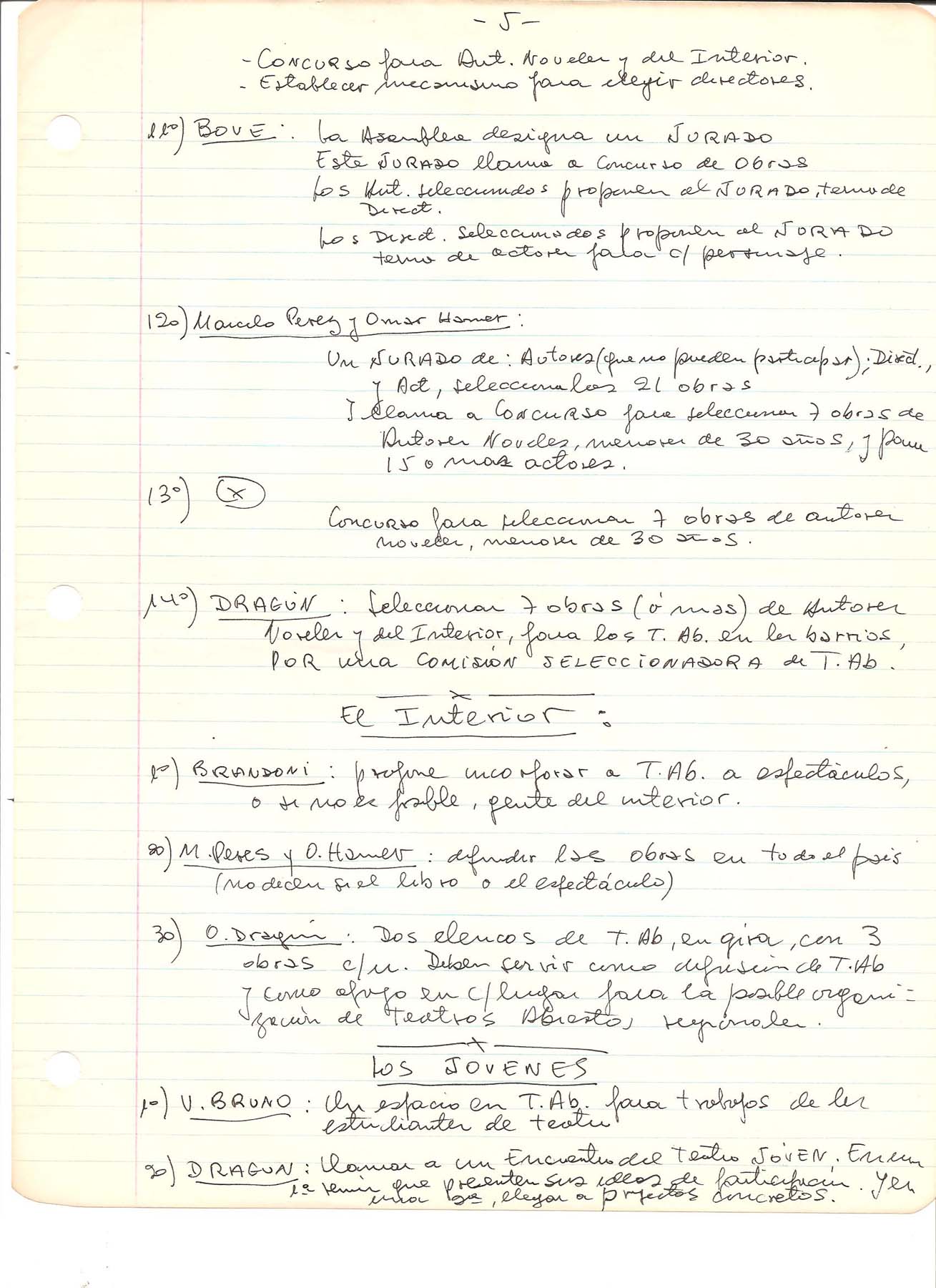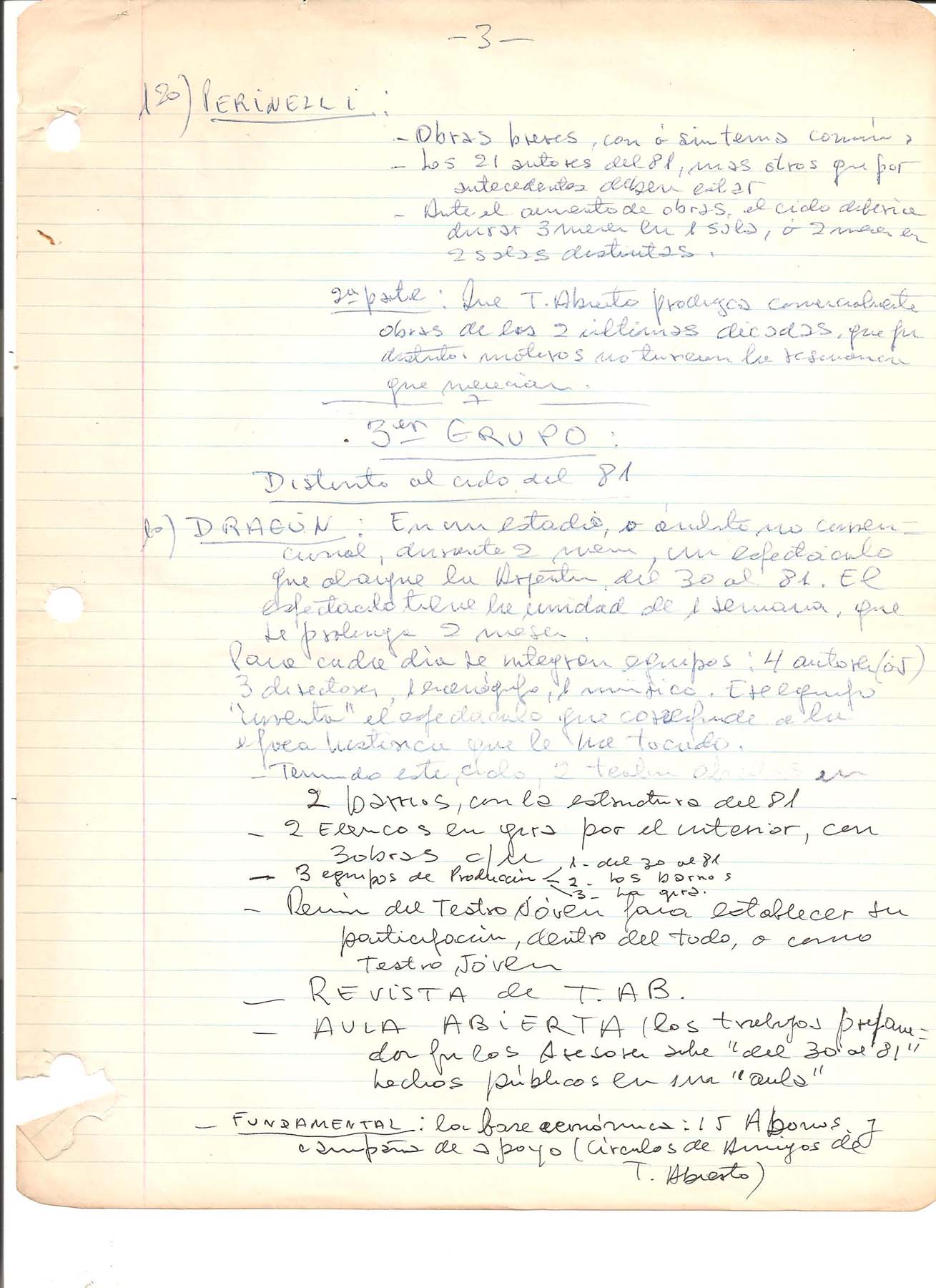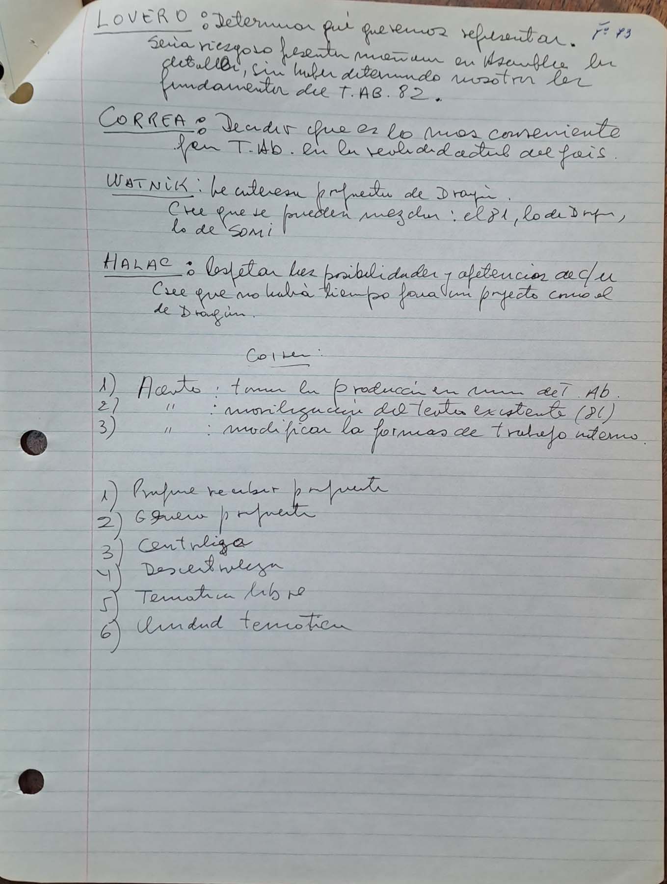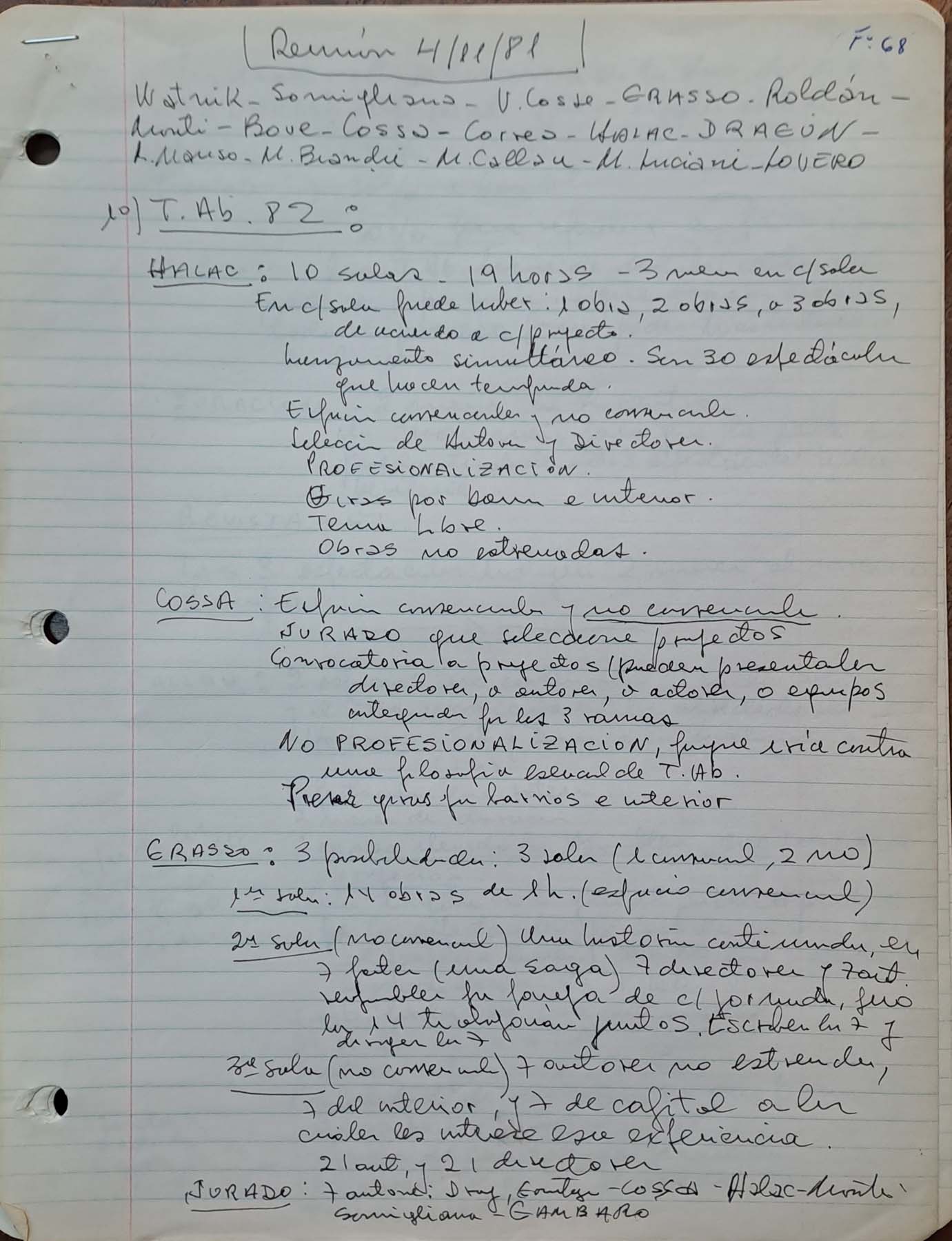 Actas y documentos asamblearios tomados por Osvaldo Dragún o materiales a disposición de la asamblea del 23.09.1981 a la celebración del ciclo de 1982.
