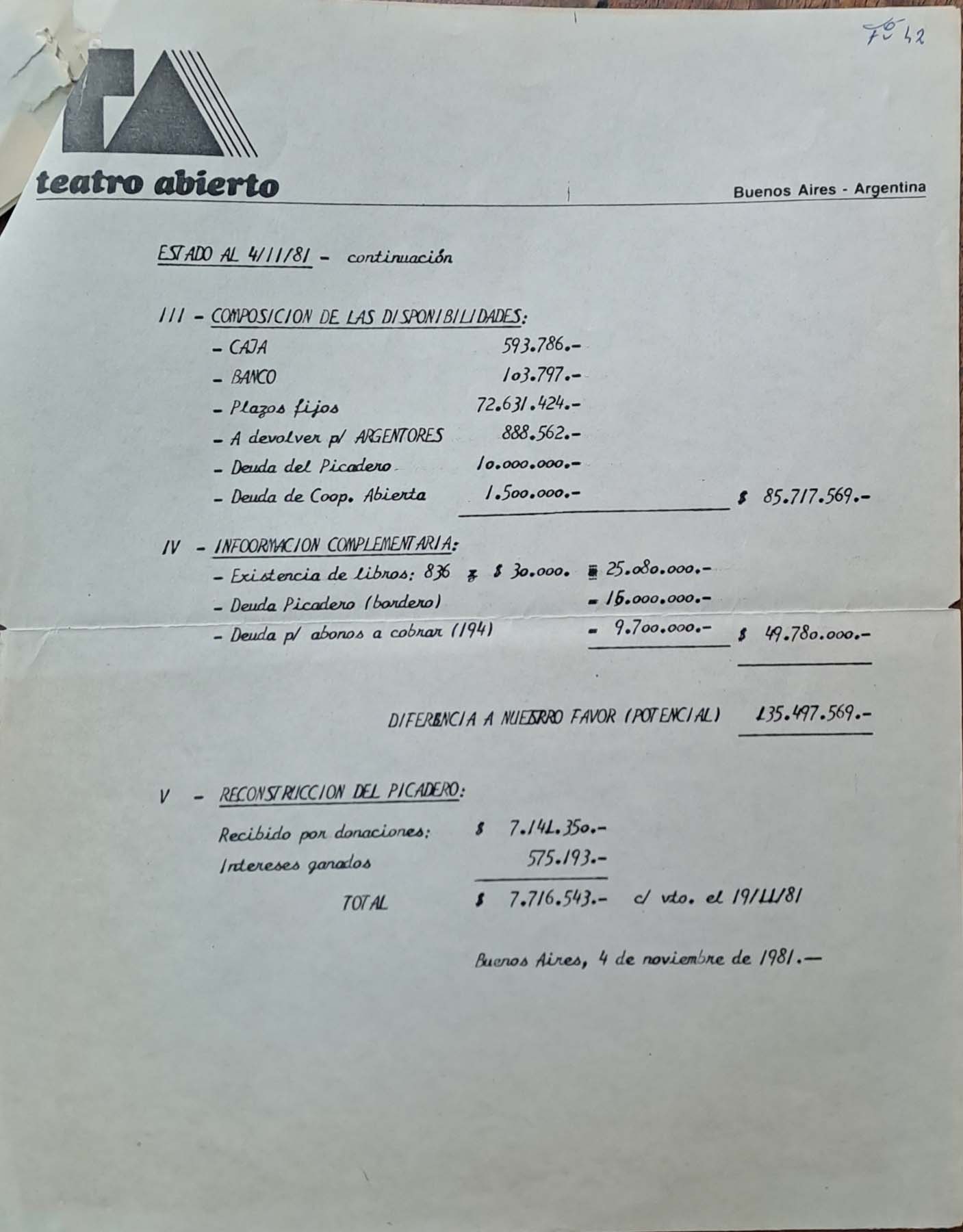 - Estado de cuentas 04.11.1981