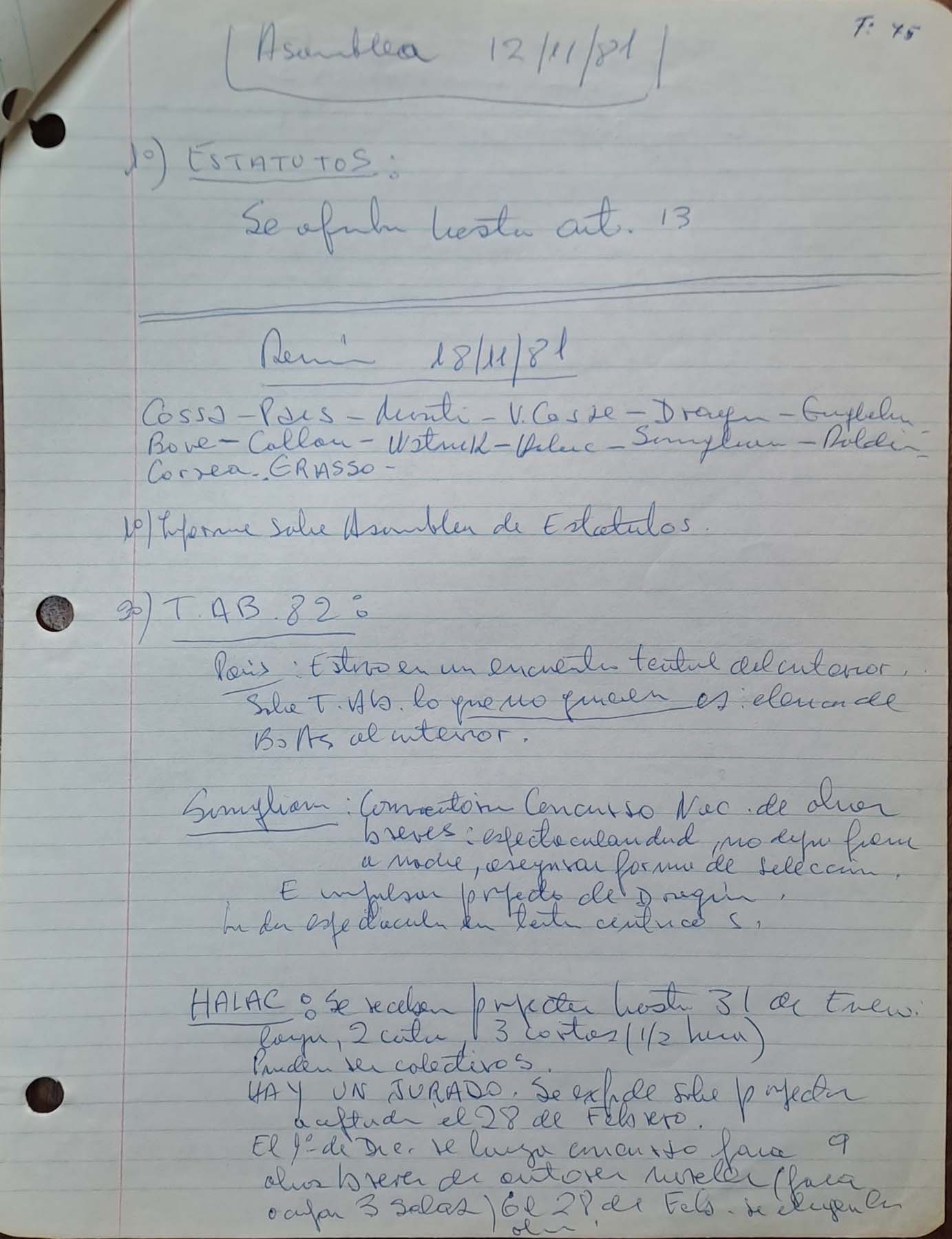 - Asamblea 12.11.1981 / Reunión 18.11.1981