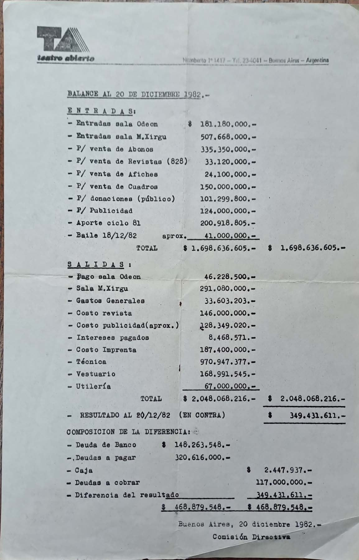 - Balance de cuentas 20.12.1982
