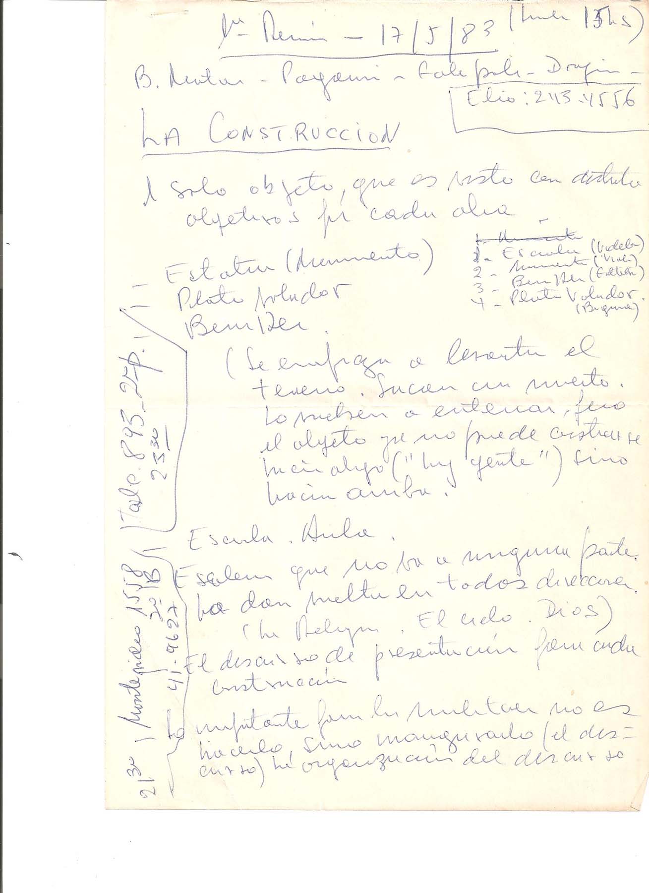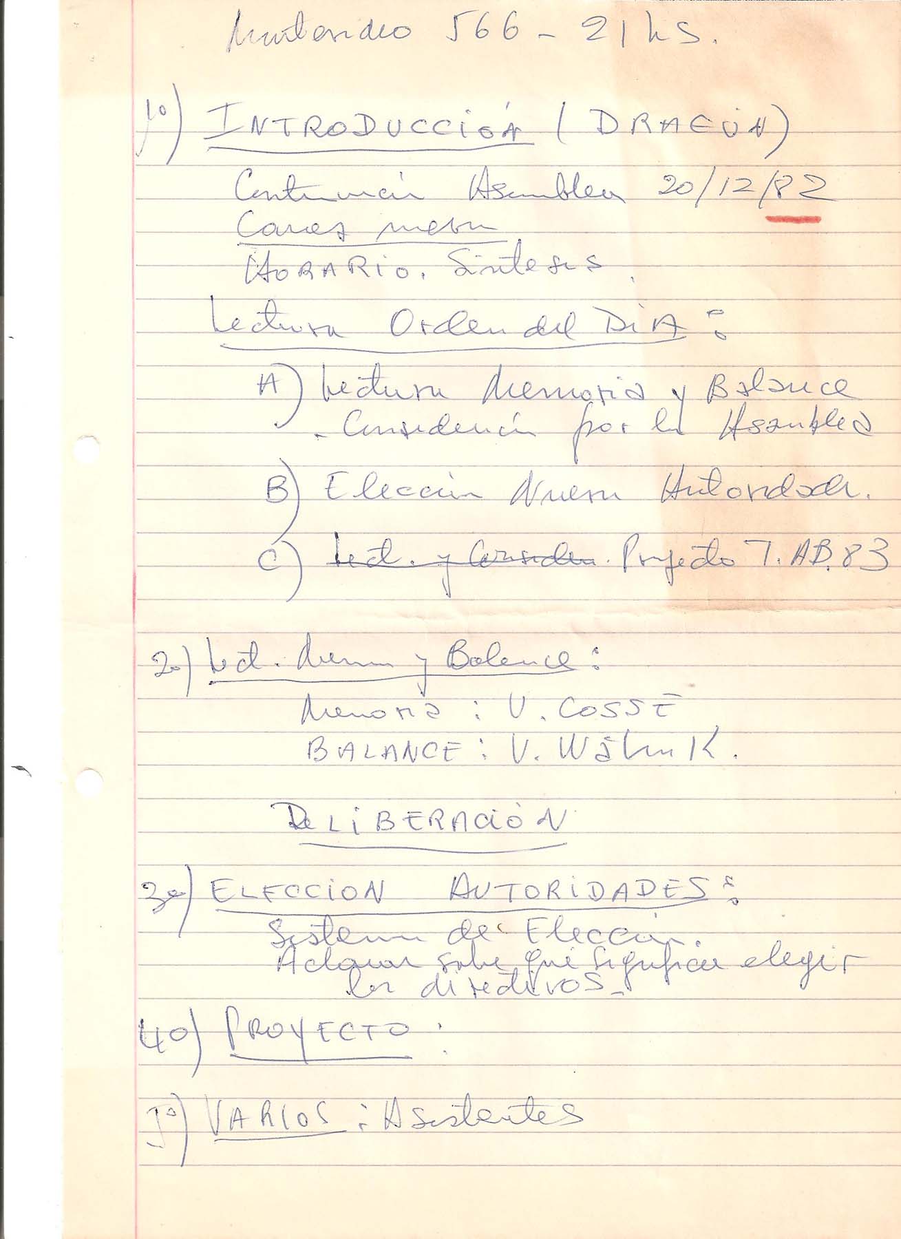 Actas y documentos asamblearios tomados por Osvaldo Dragún o materiales a disposición de la asamblea del 20.12.1982 a la celebración del ciclo de 1983.