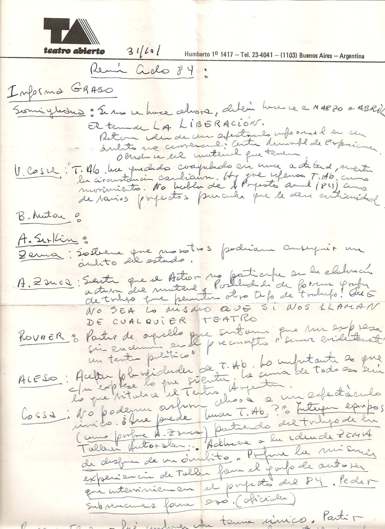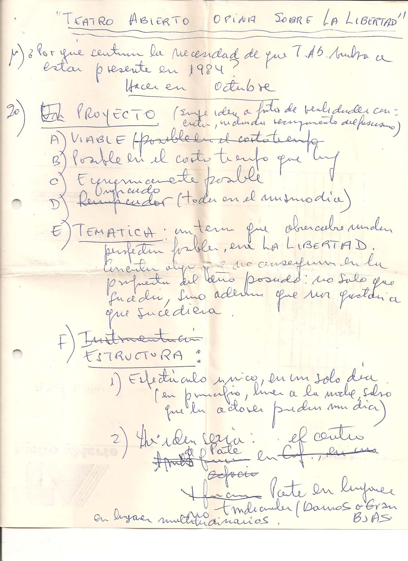 - "Teatro Abierto opina sobre la libertad". Proyecto para 1984.