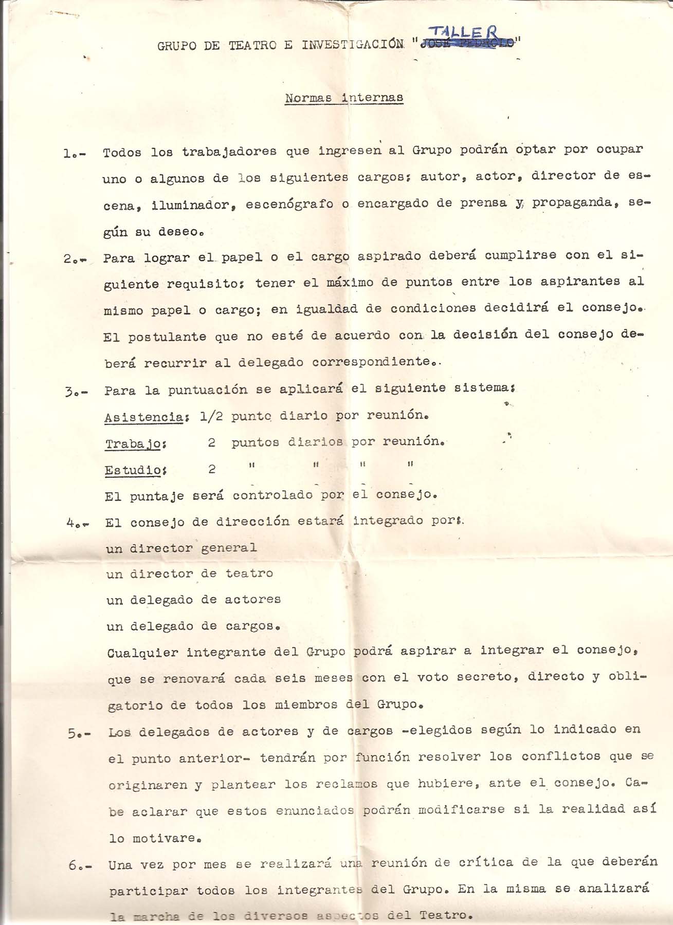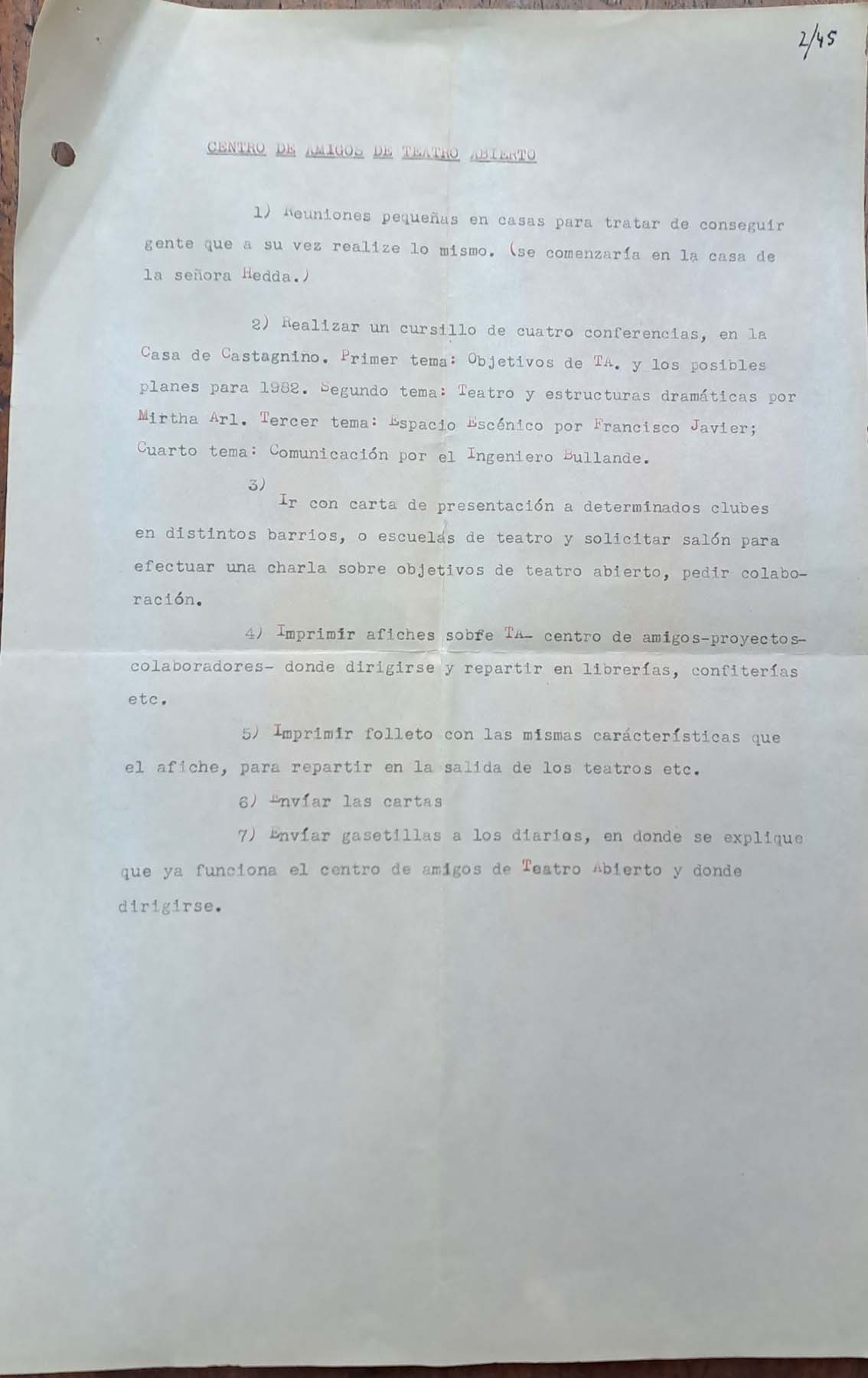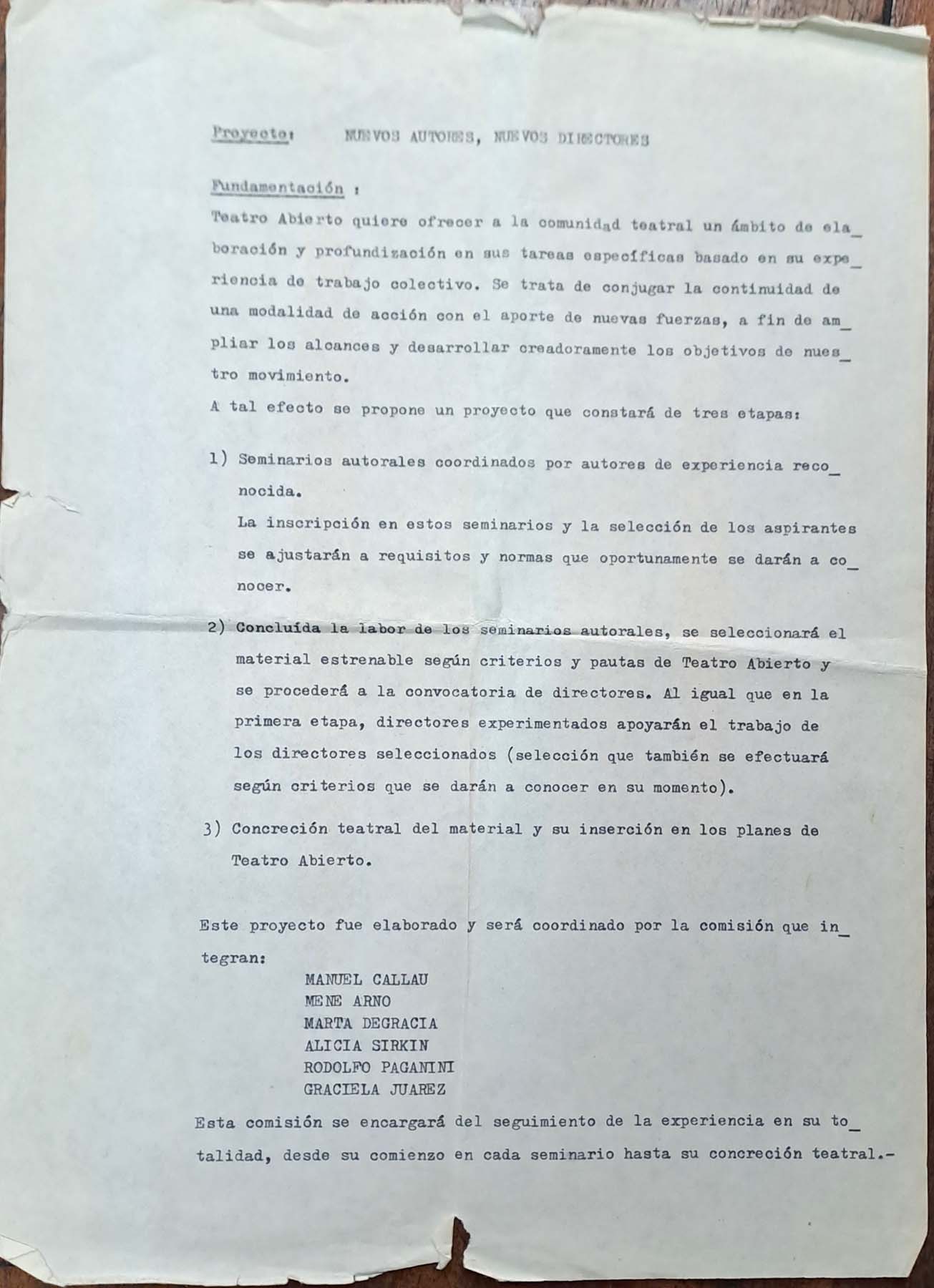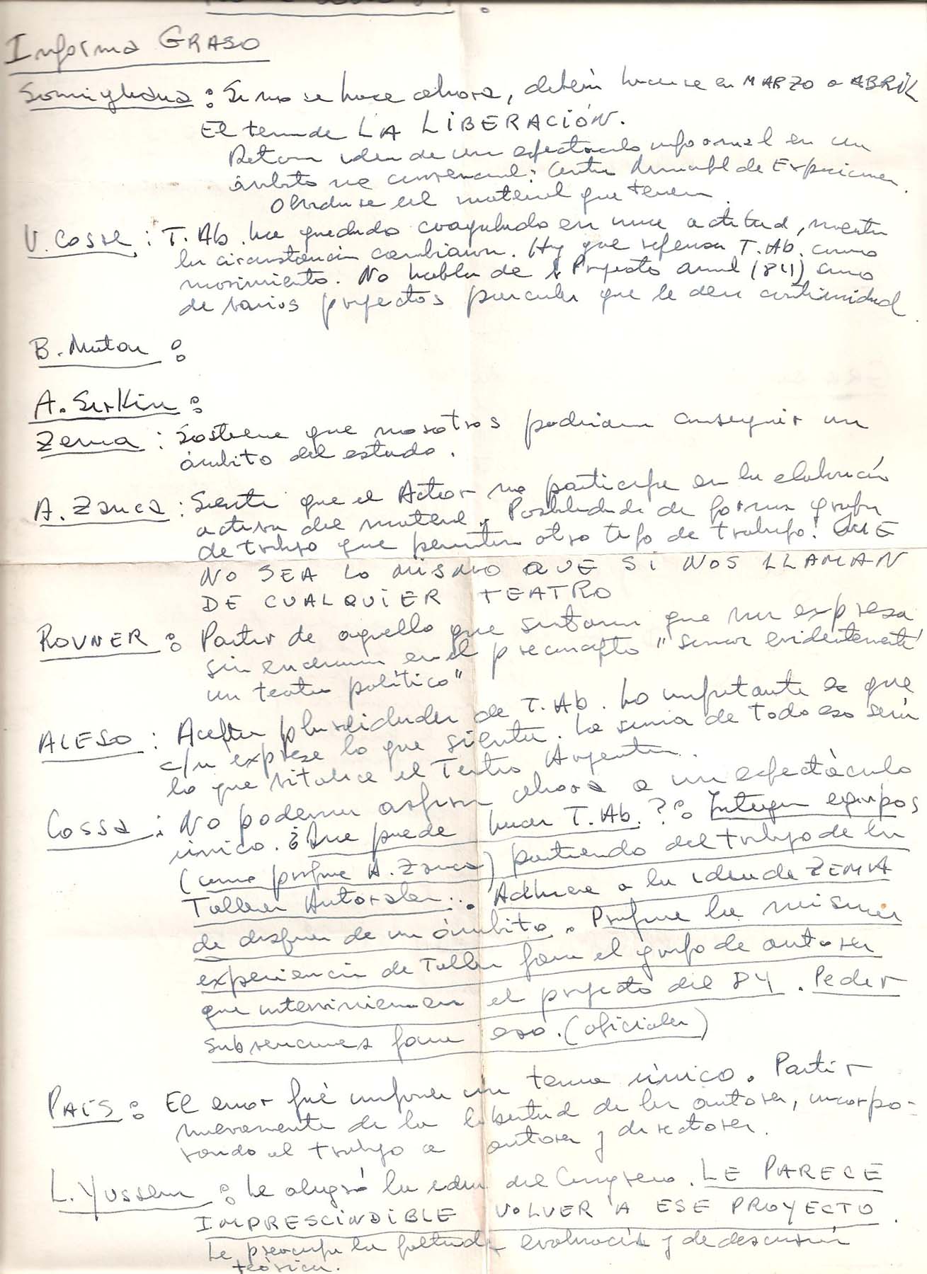 - Fundamentación del proyecto "Otro Teatro". 22.07.1985