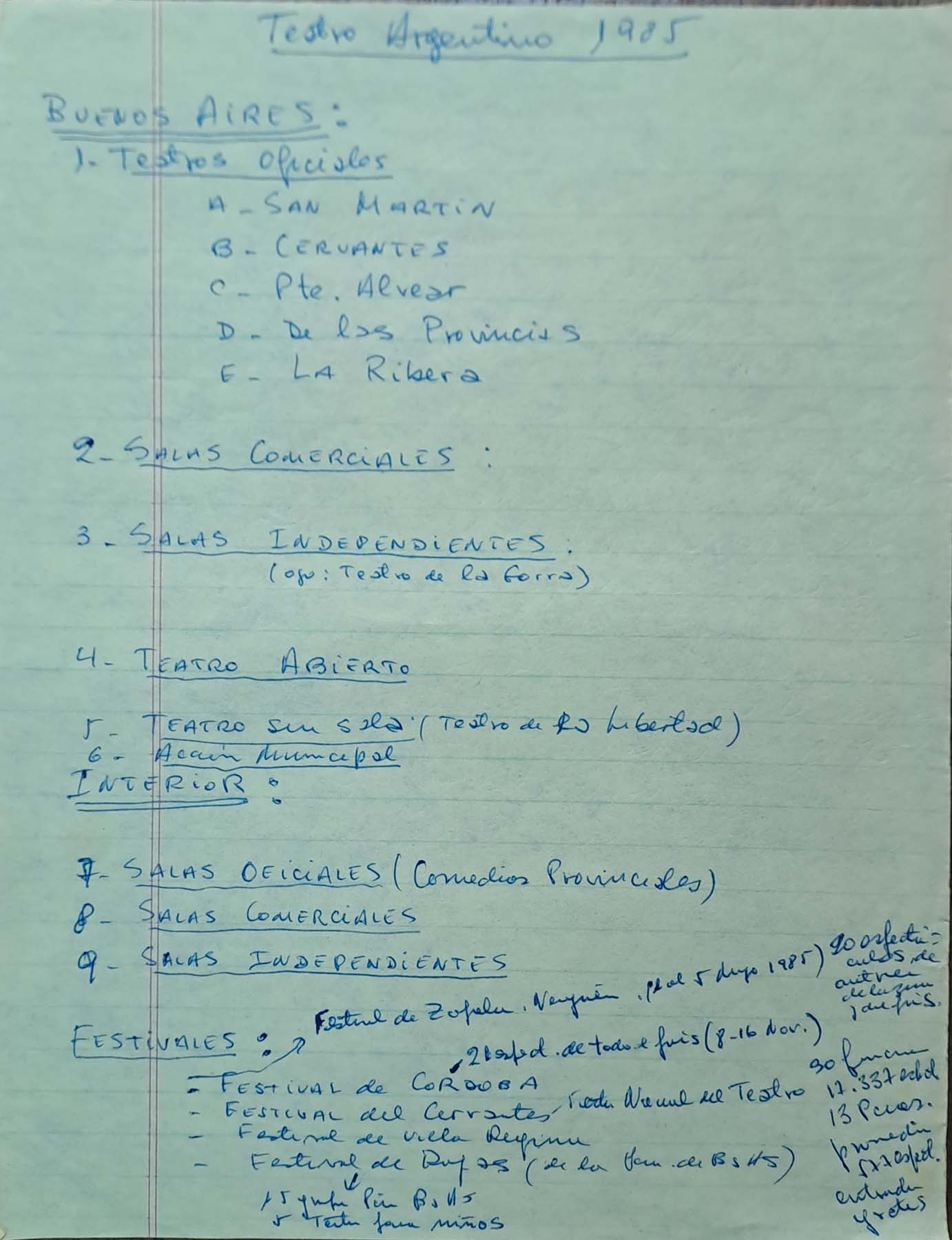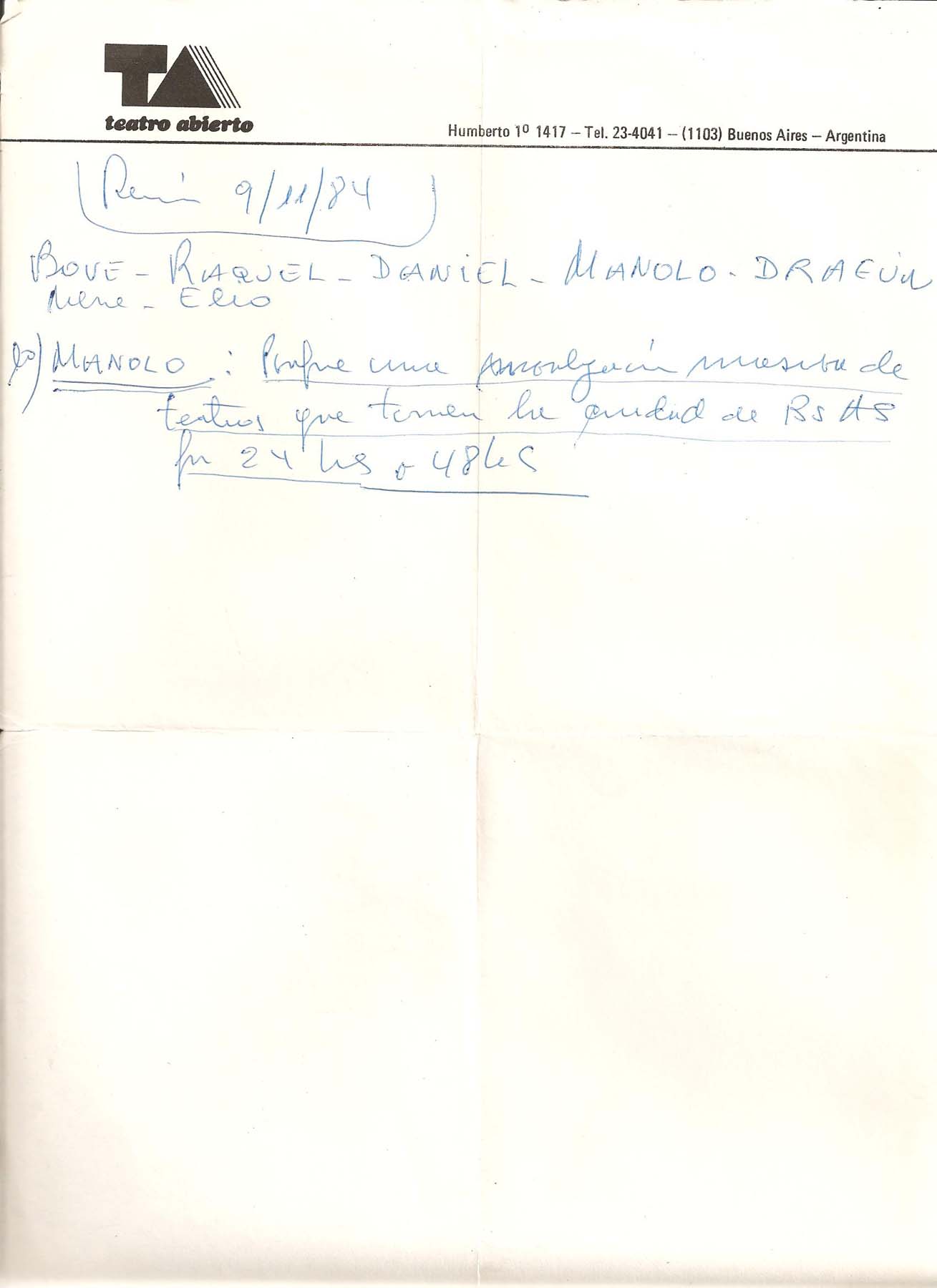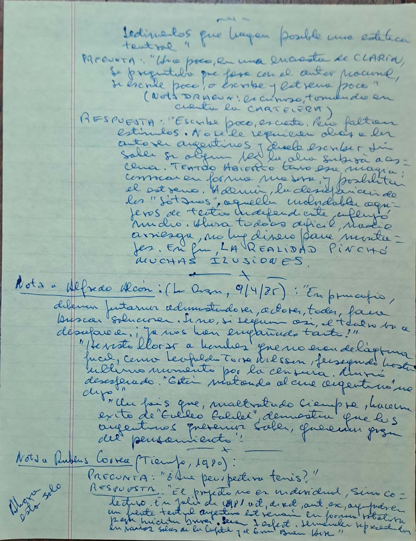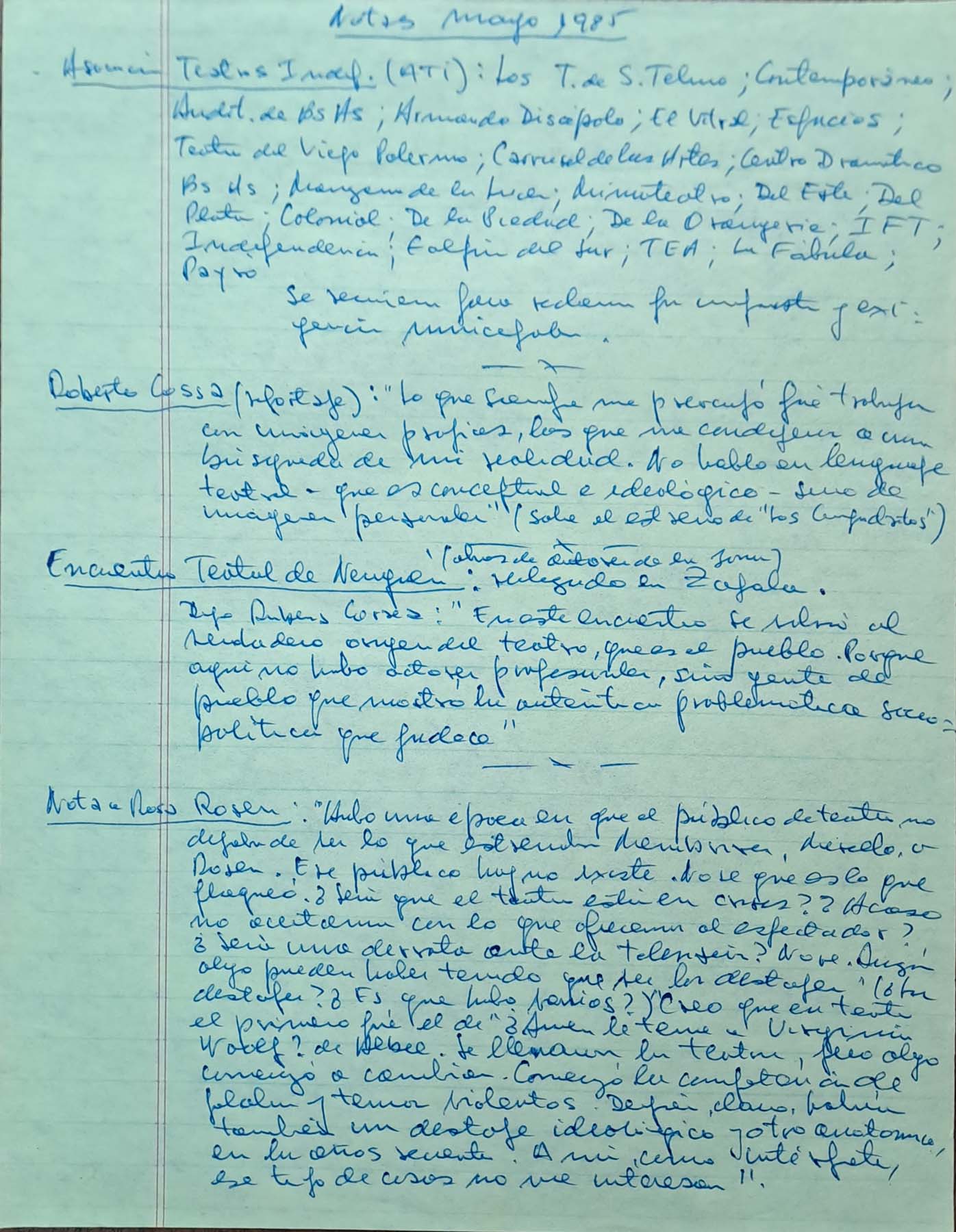 - Anotaciones sin fechar sobre Teatro Abierto entre 1984 y 1985