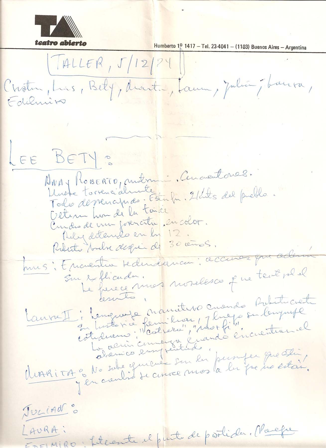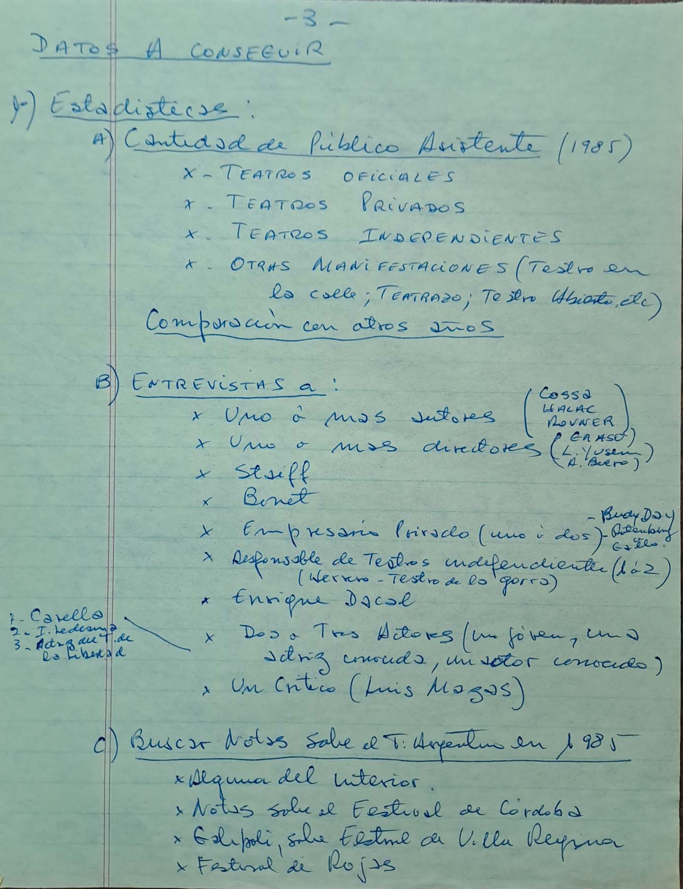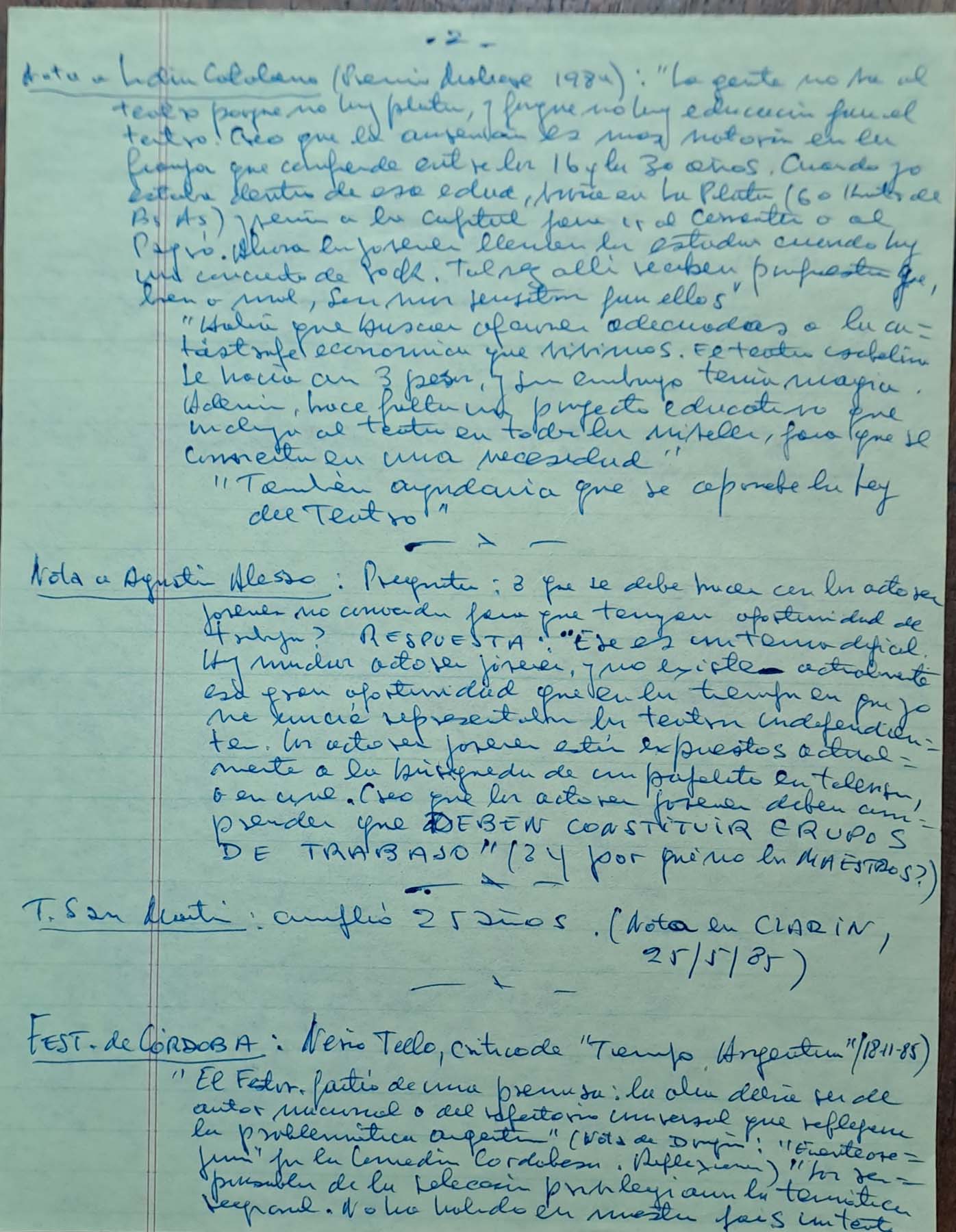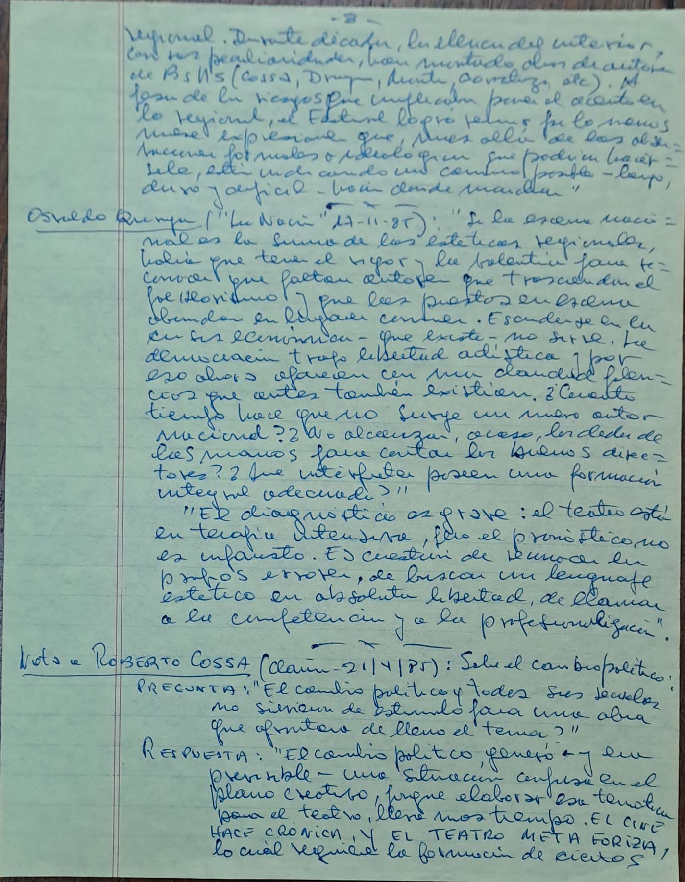 - Anotaciones sin fechar sobre Teatro Abierto entre 1984 y 1985