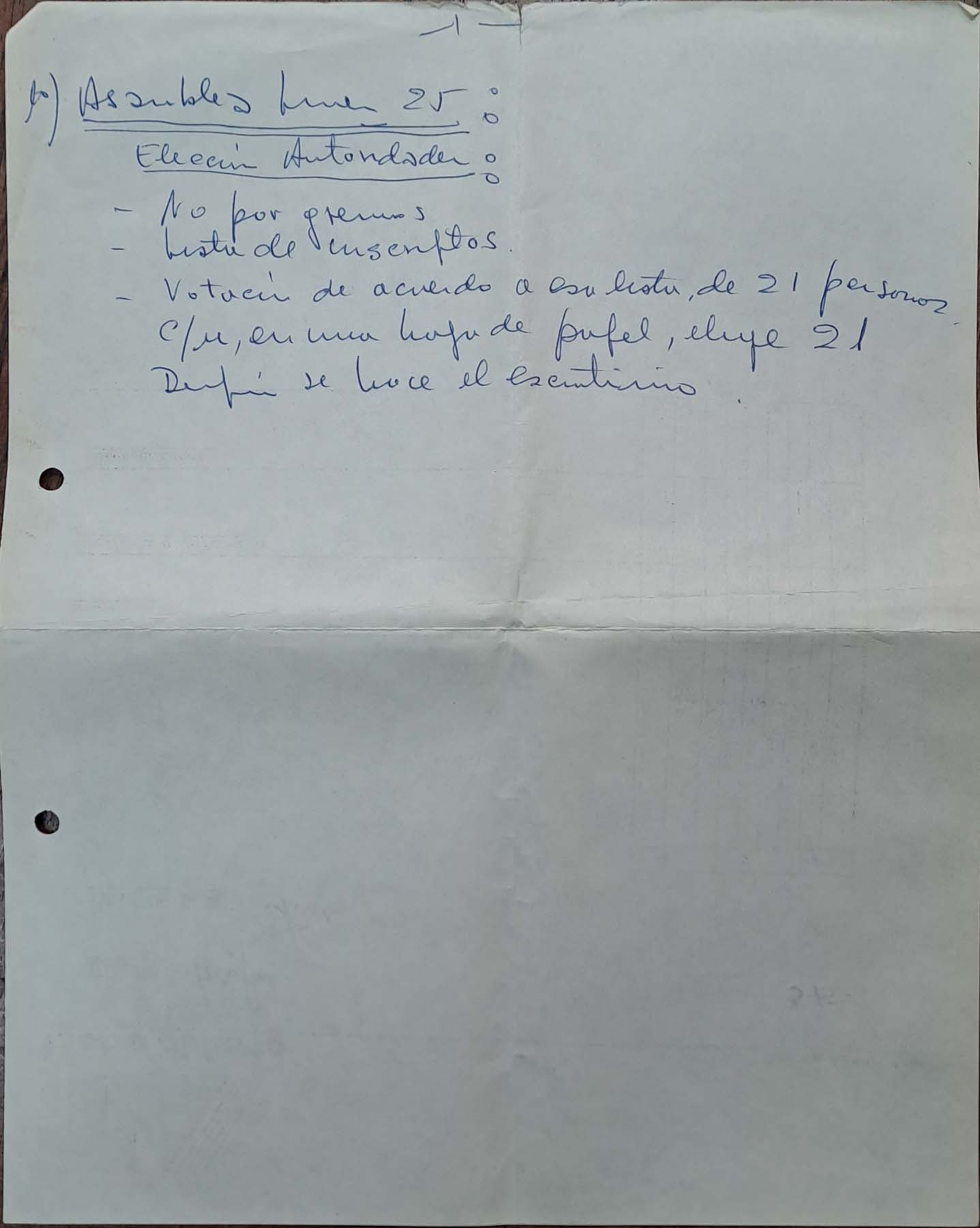 - Asamblea sobre proyectos y continuidad. Mayo 1985
