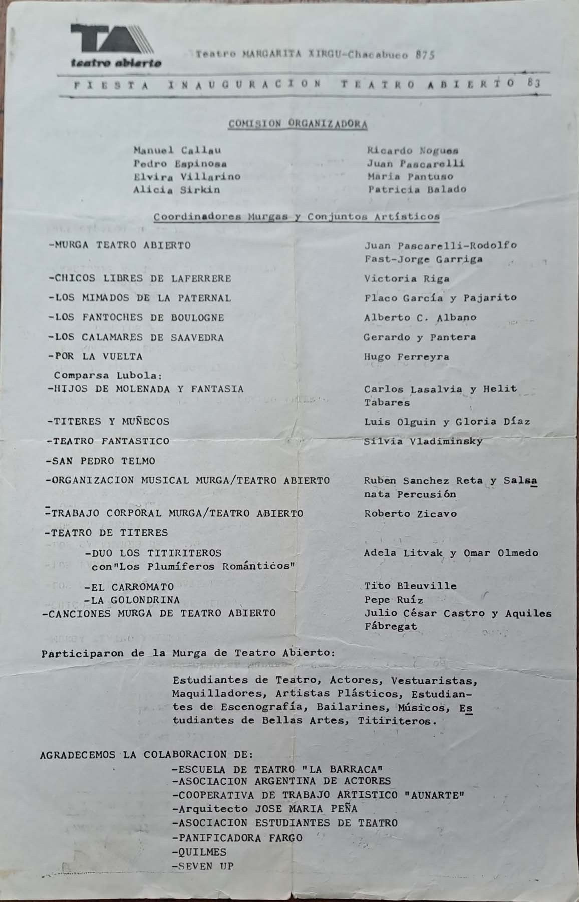 Organización del evento callejero de Teatro Abierto en 1983