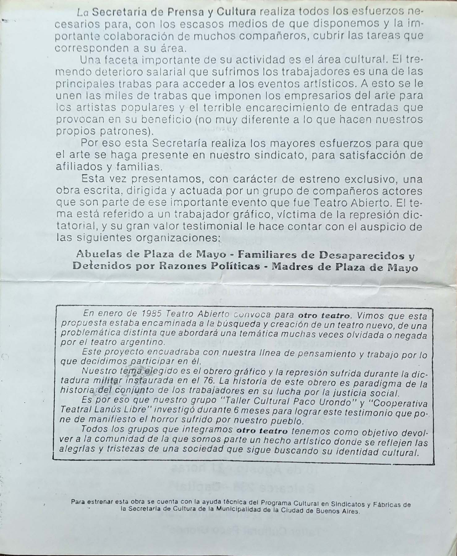 Afiches, volantes y programas 1984-1986