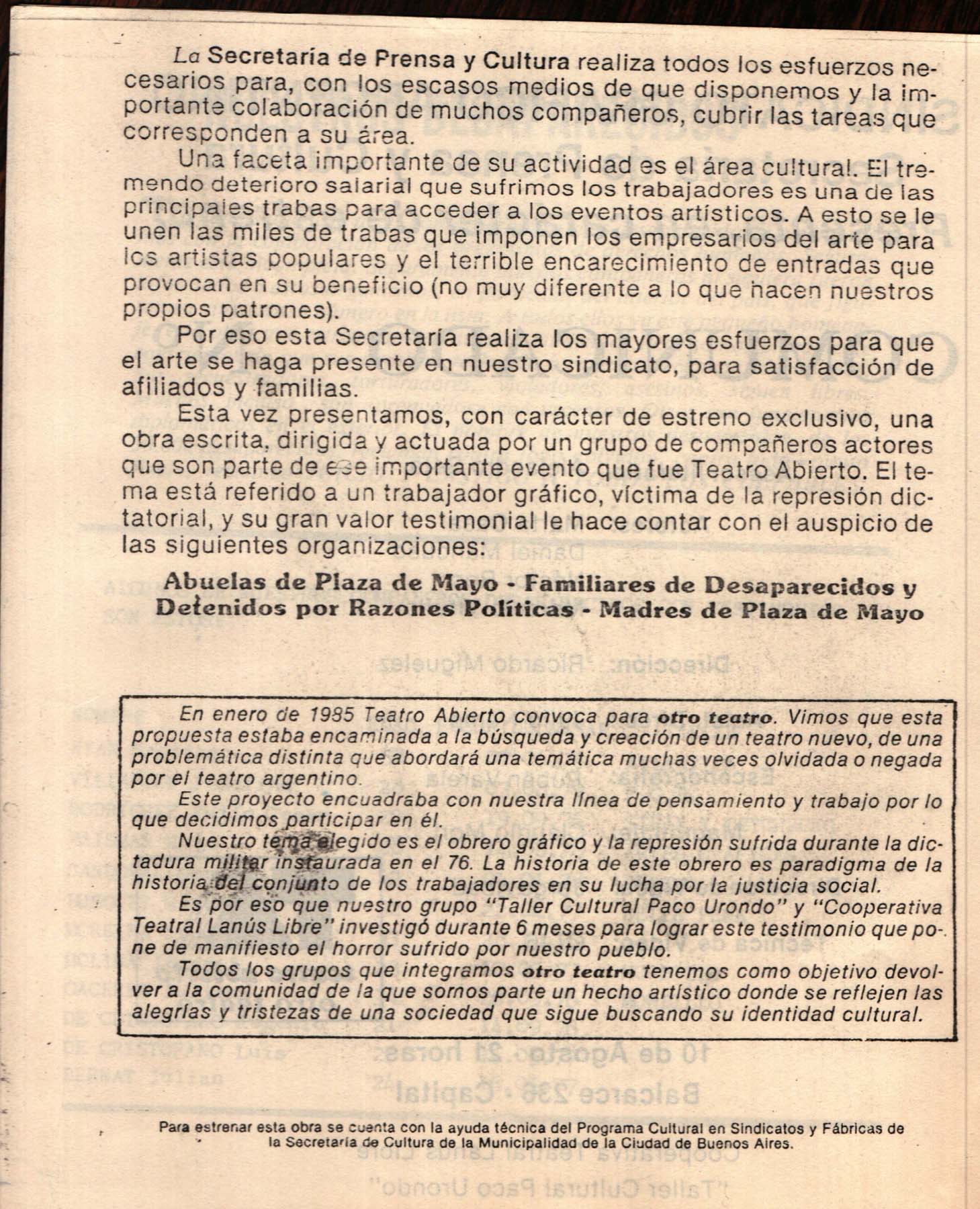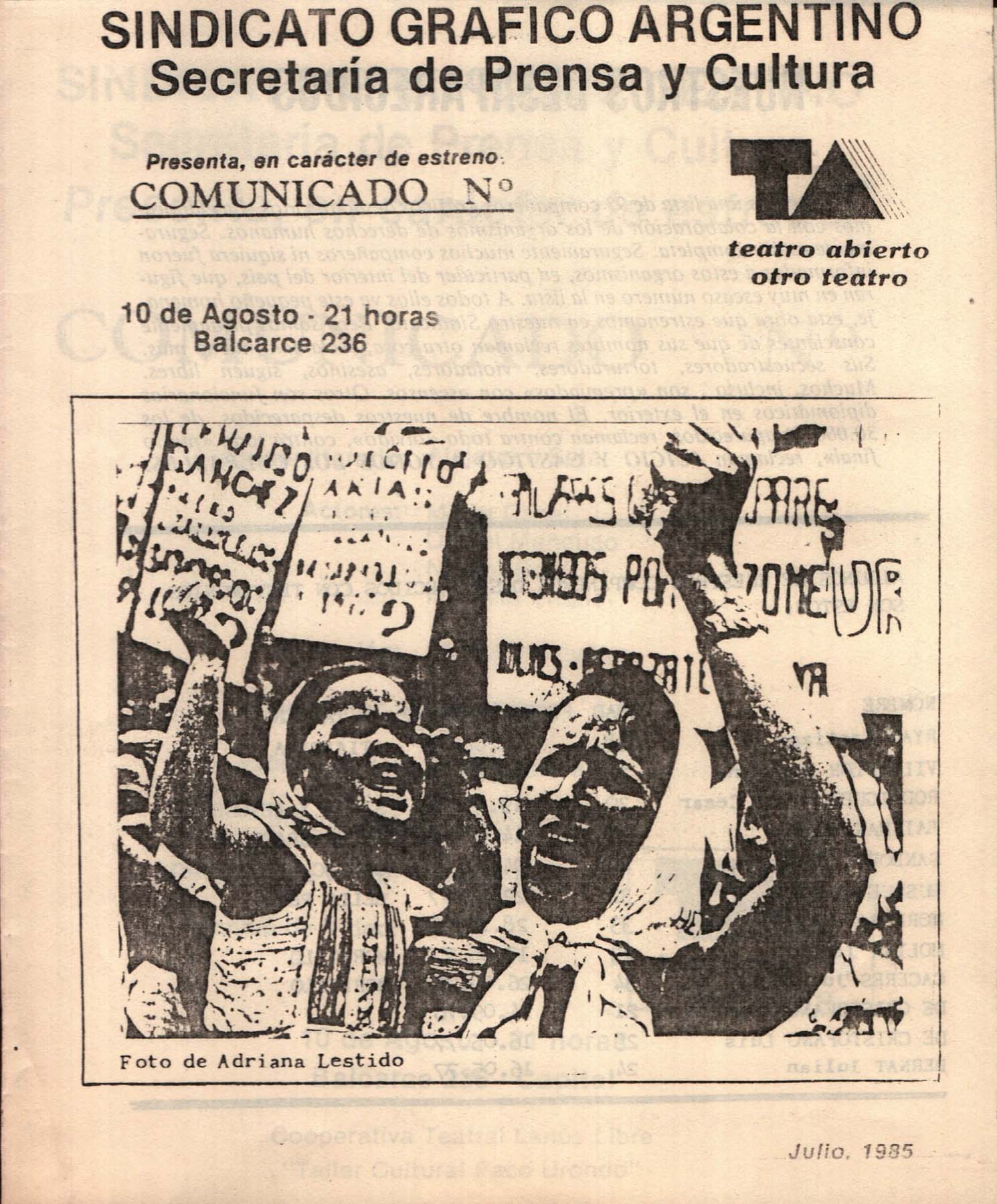 Programa de la obra Comunicado N°