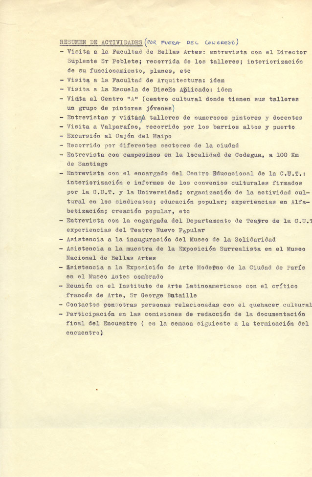 Resumen de actividades (por fuera del programa oficial del Encuentro de Artistas Plásticos del Cono Sur)