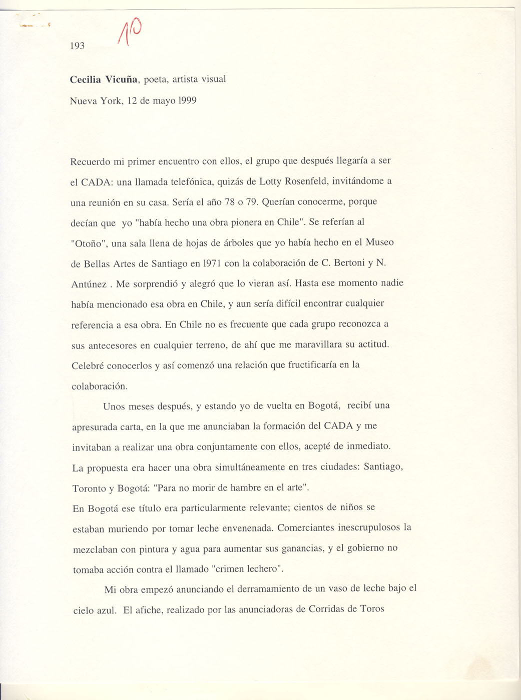 Testimonio Cecilia Vicuña