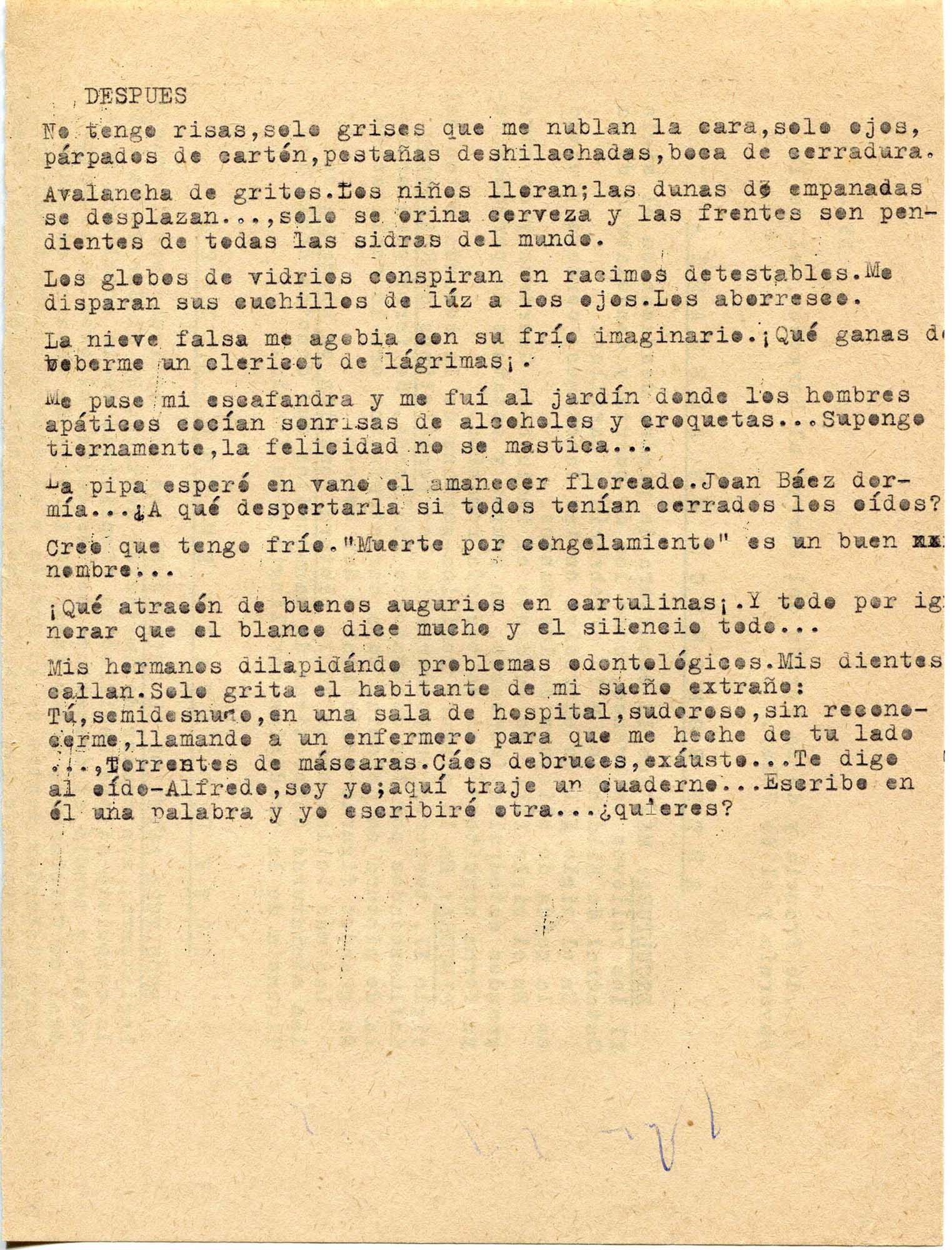 Texto en el que C. Moscarda describe un momento cotidiano pero teñido de cierta melancolía. Probablemente se trate de un momento posterior a la muerte de A. Seppe.