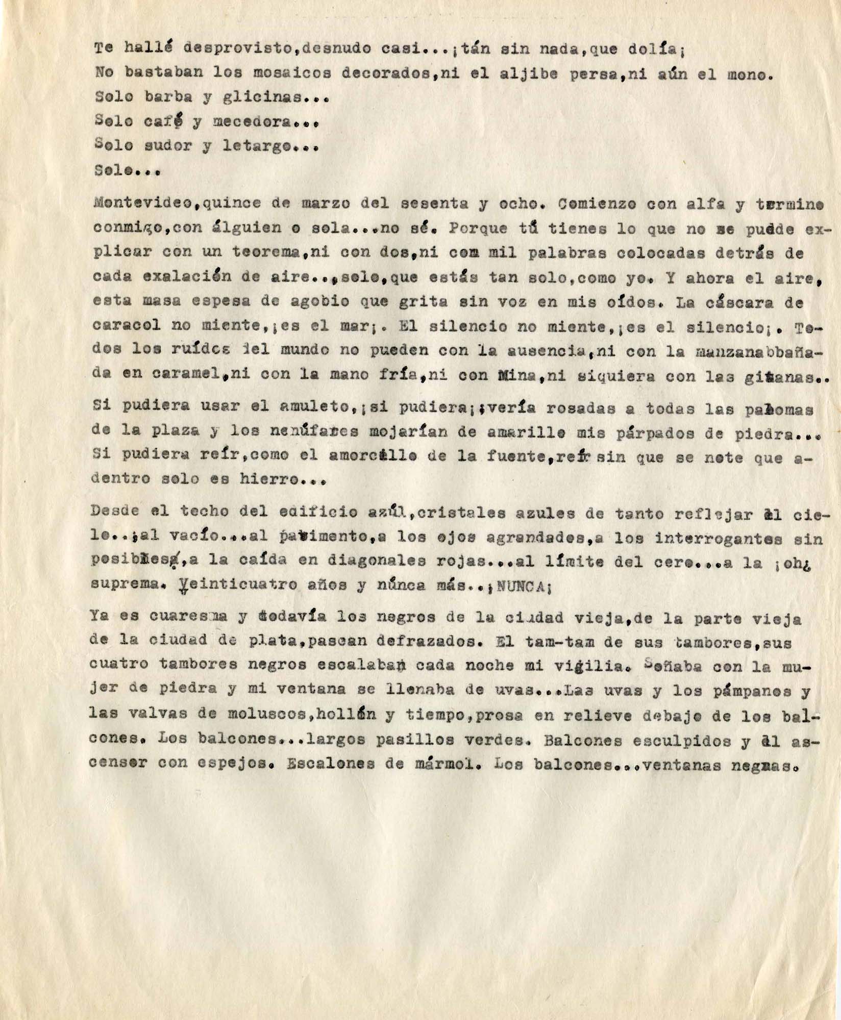 Pareciera una carta de Cira Moscarda sin enviar para A. Seppe. O un texto que va dirijido a él pero que no necesariamente era para que lo leyera.