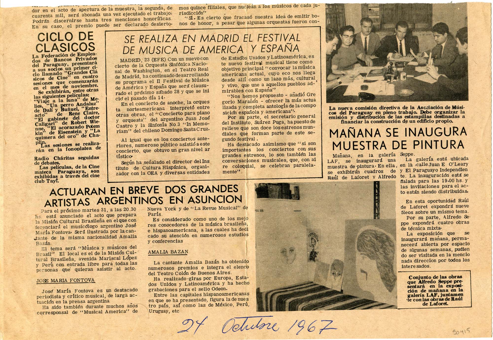 Nota sobre inauguración de exposición de pinturas de Raúl de Laforet y Alfredo Seppe realziada en la galería LAF de Asunción.