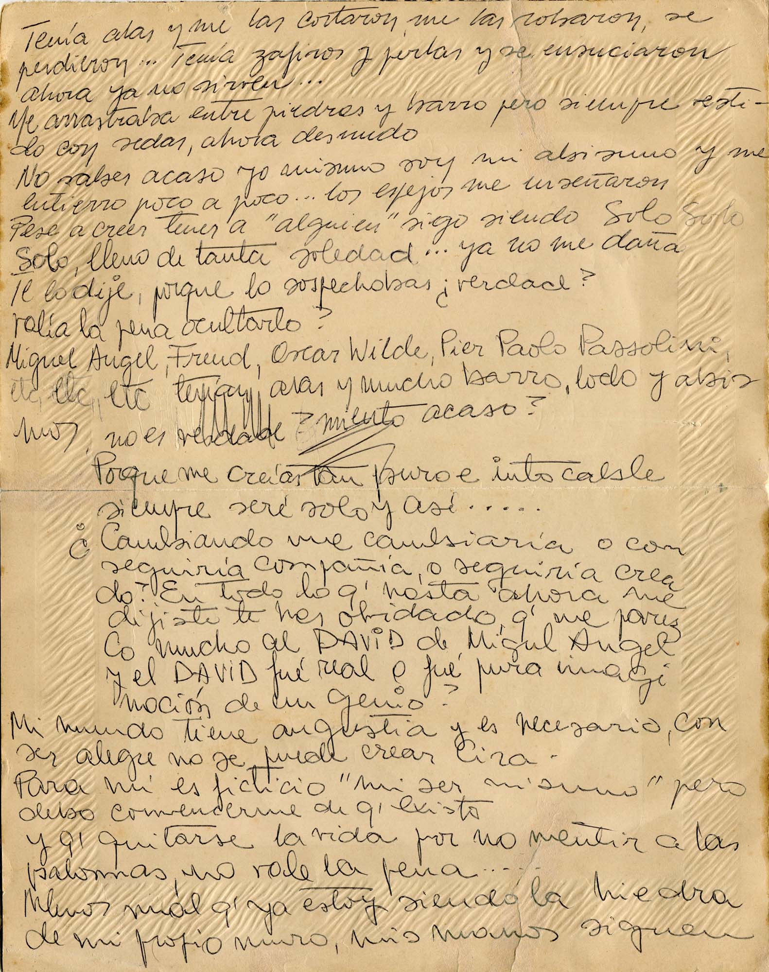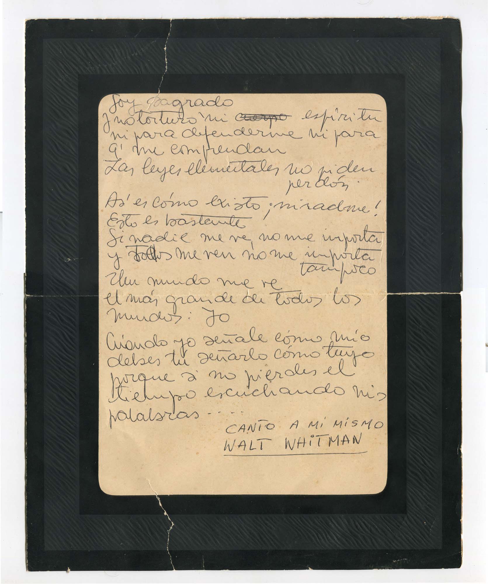 El texto, de carácter epistolar, está dirigido a Cira Moscarda. A modo de epígrafe, se incluye al dorso de la carta un fragmanto del Canto a mí mismo de Walt Whitman, y cumple una función: La carta es un descargo de Seppe, posiblemente con relación a alguna demanda de responsabilidad afectiva de Moscarda, en la que enuncia su autonomía, y se deslinda de cualquier compromiso y expectativa sobre él.