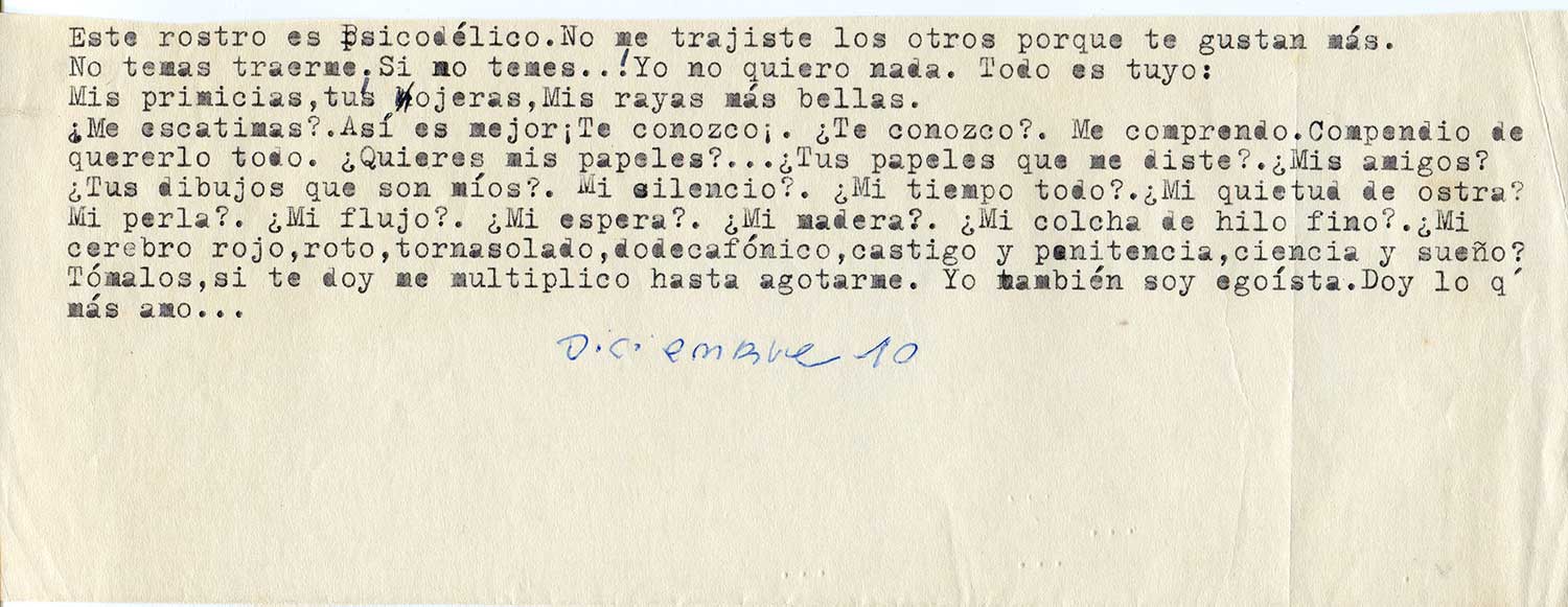 Se trata de un breve texto que condensa un momento de la escritura de Moscarda. En él se hace referencia a unas papeles: "los papeles que me diste". El relato, en una comunicación epistolar entre ella y Abraham Genis (el médico de Alfredo Seppe en Montevideo), consigna la entrega por parte de éste a Moscarda de un cúmulo de papeles en una especie de maletín. Estos papeles serían los que se guardan en el archivo de Moscarda, como si fuera un archivo dentro de otro. El texto hace referencia además a esa forma de producción en la que se confunden las autorías.