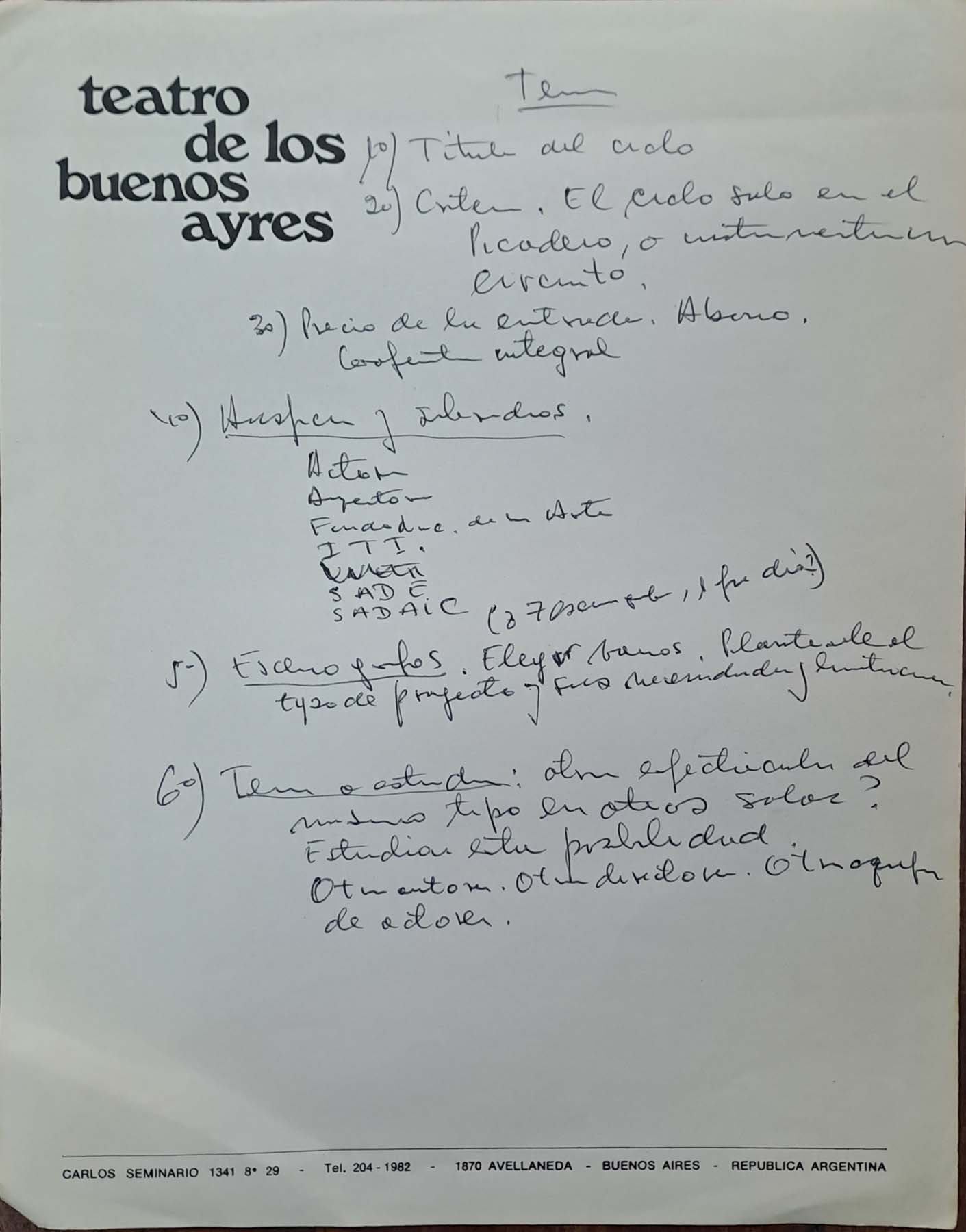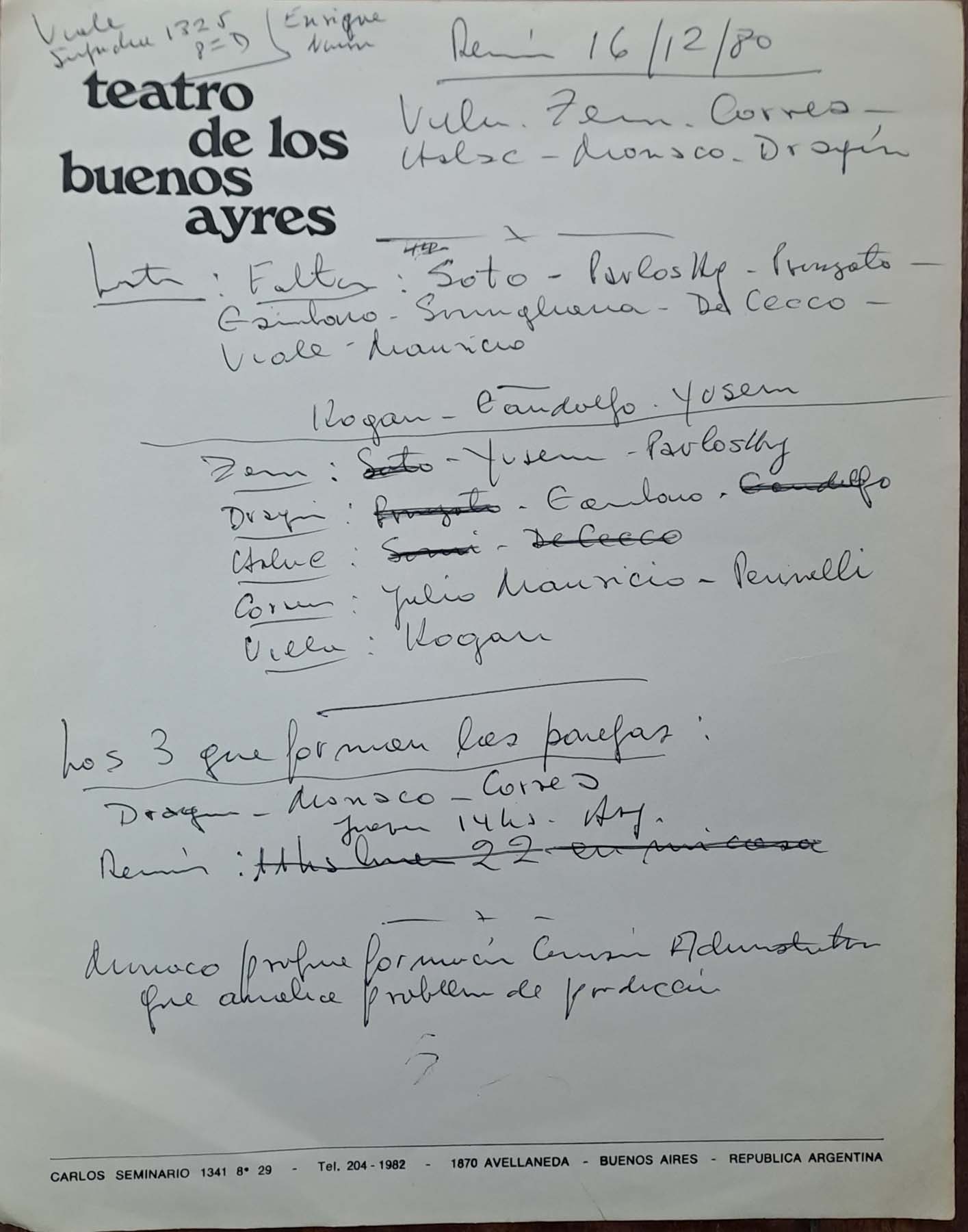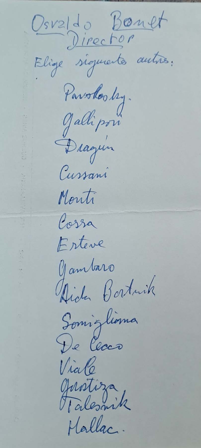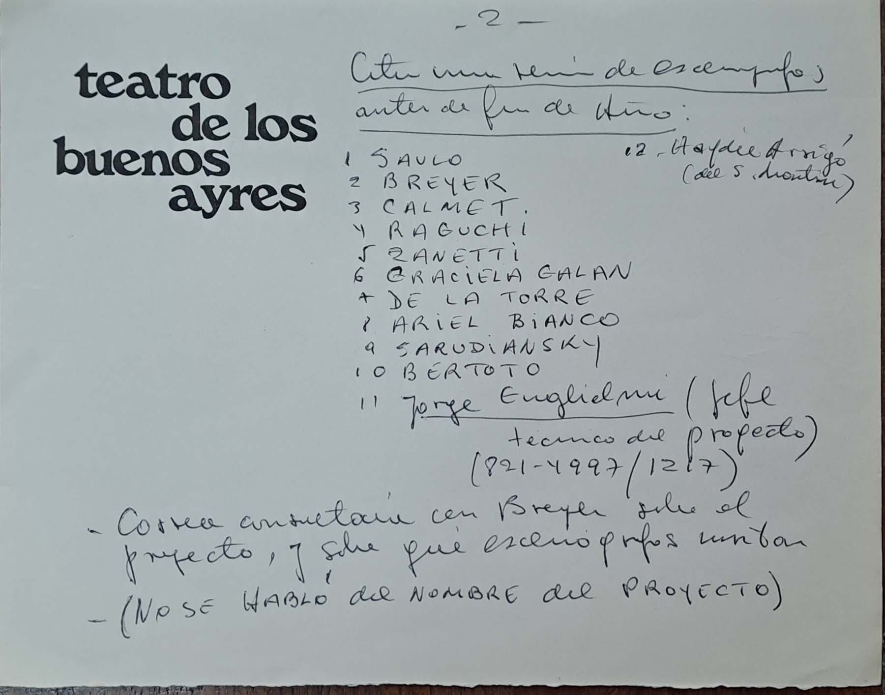 - Notas de la elección de los dramaturgos sobre los directores de escena para su proyecto de 1981