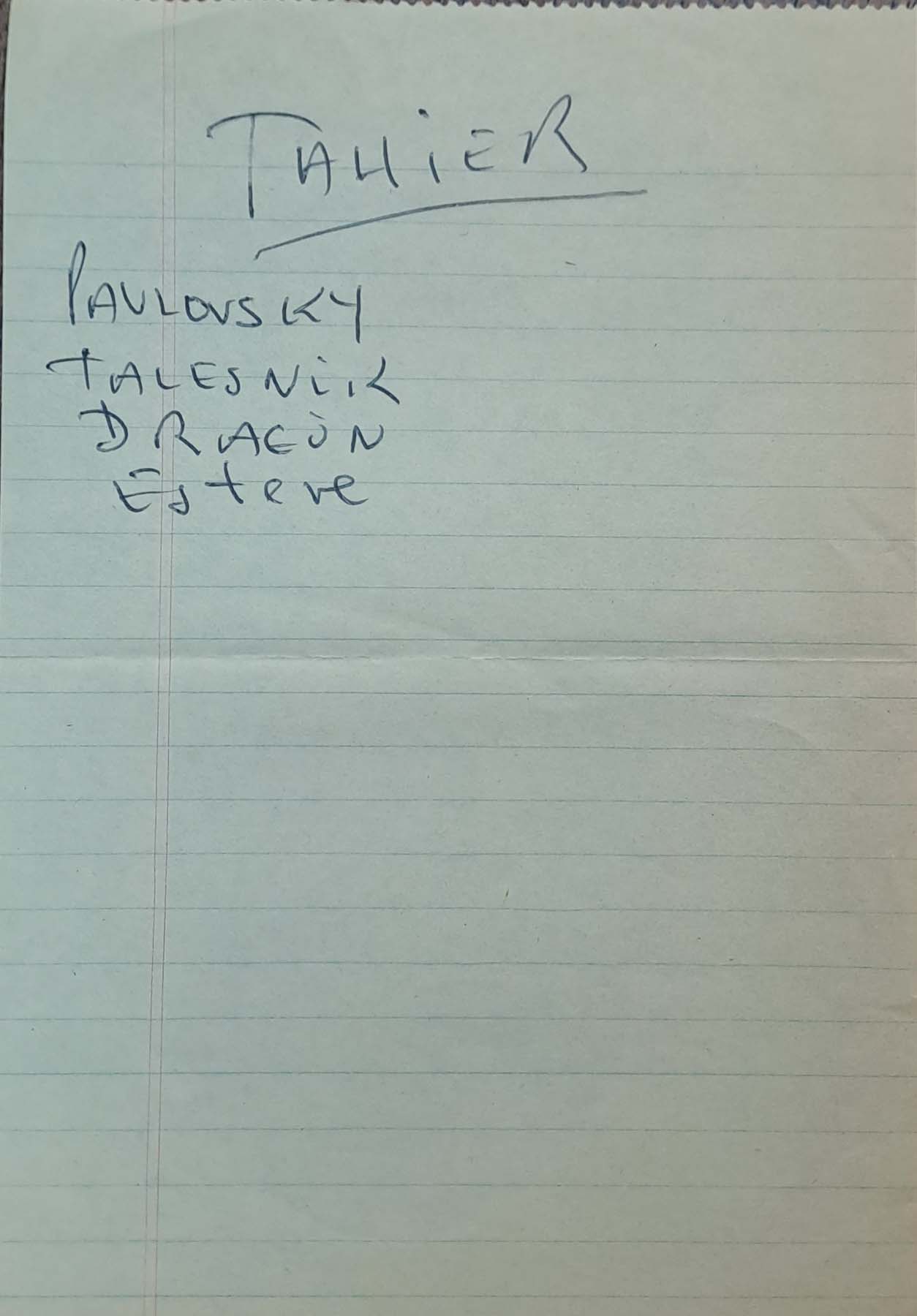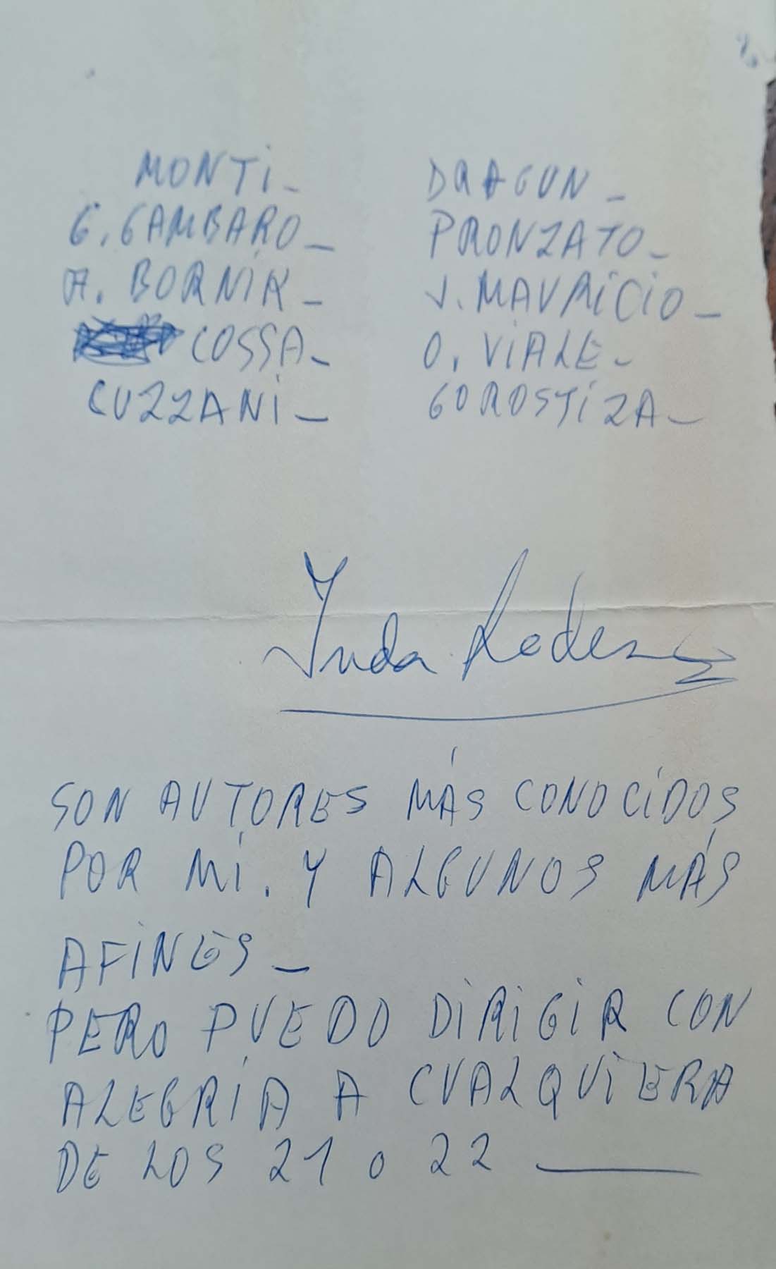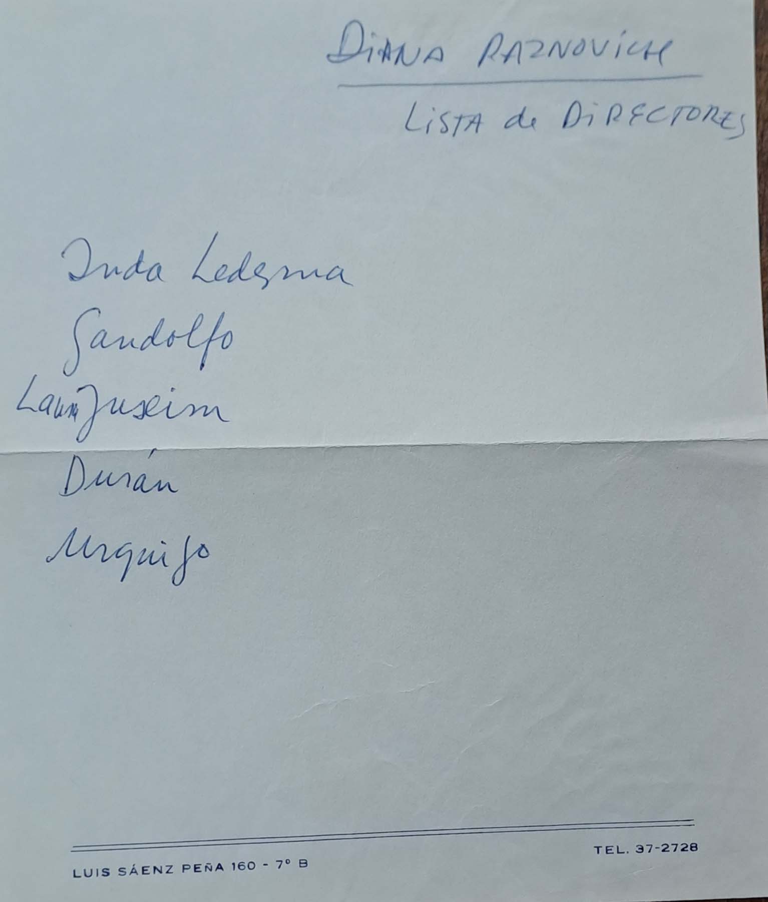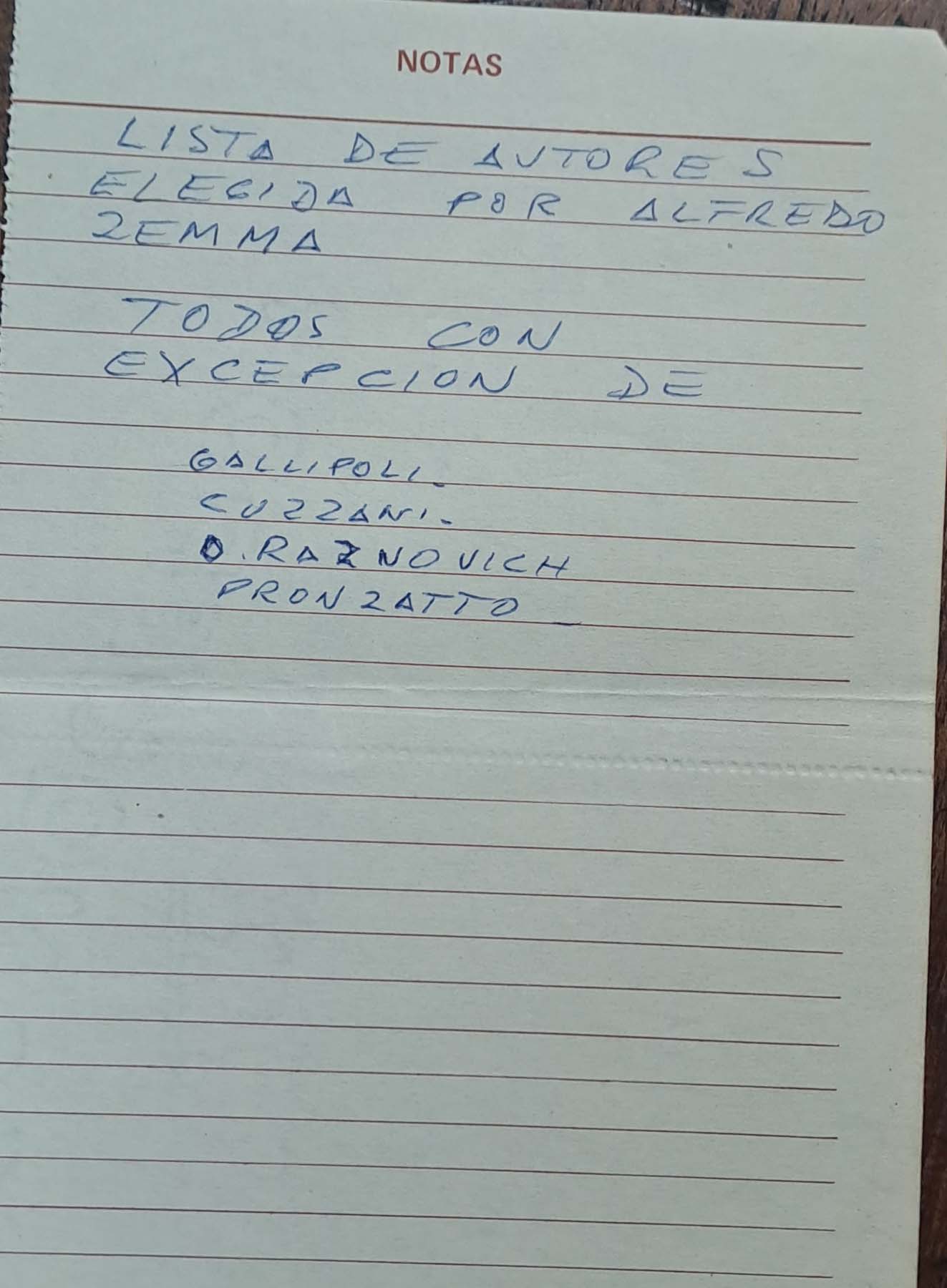 - Notas de la elección de los dramaturgos sobre los directores de escena para su proyecto de 1981