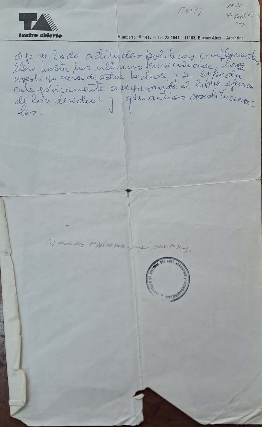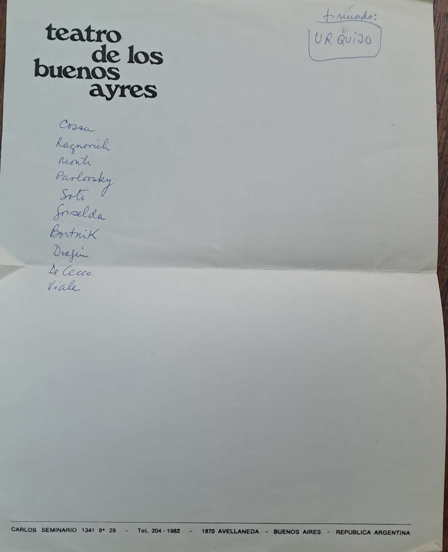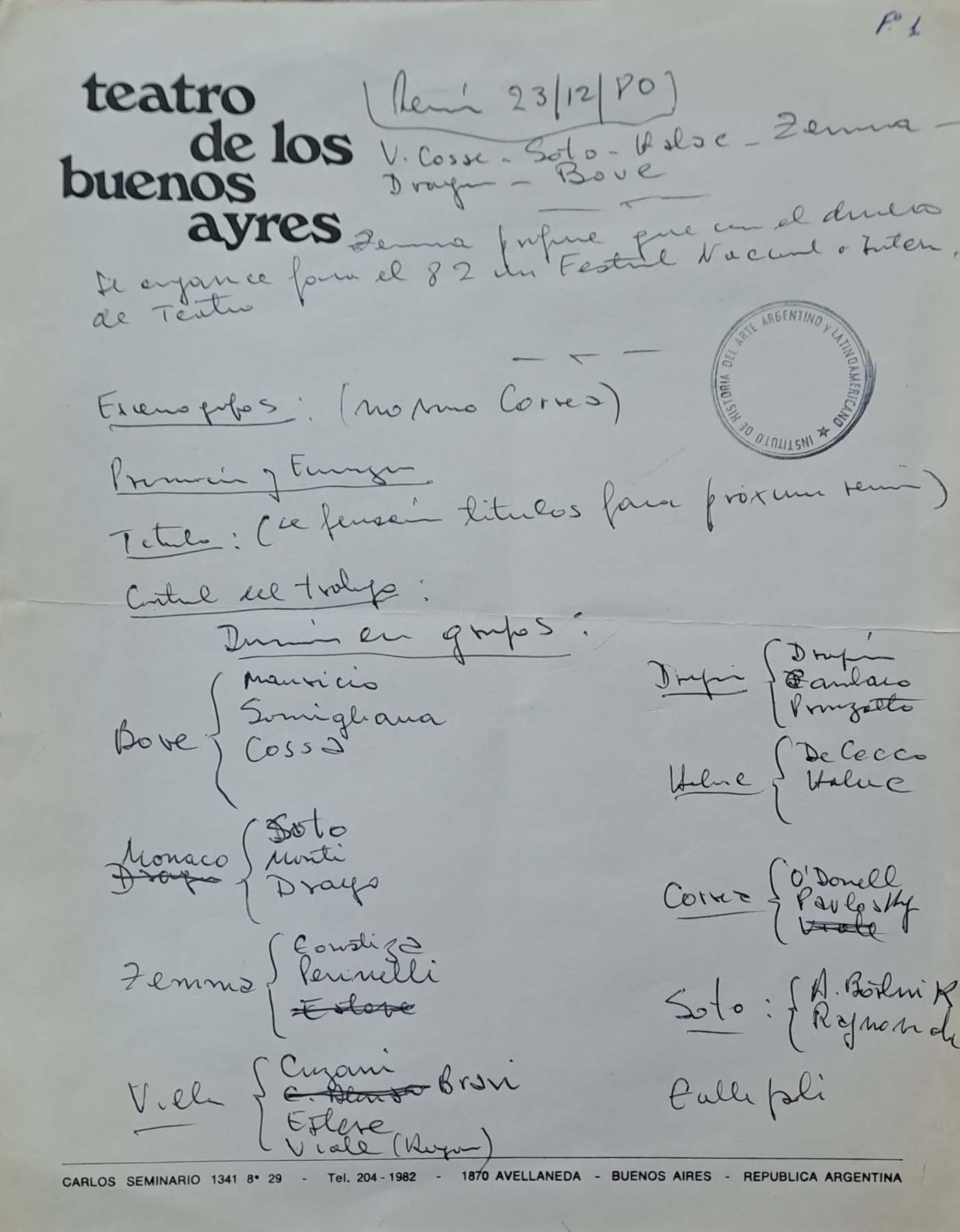 Derecho de uso: Archivo Osvaldo Dragún donado por María Ibarreta al Instituto de Historia del Arte Argentino y Latinoamericano "Luis Ordaz" de la Universidad de Buenos Aires.