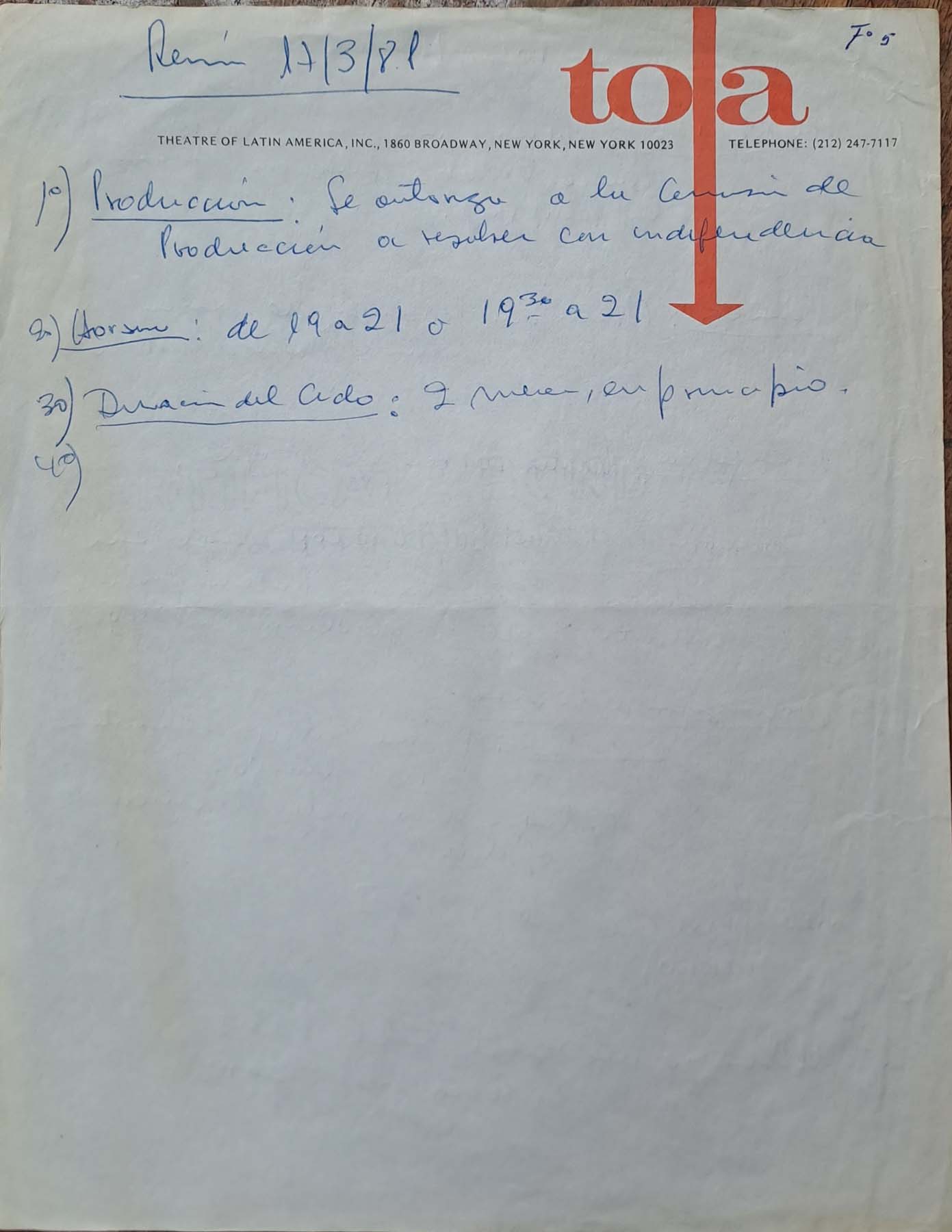 - Reparto duplas de textos y dirección para el desarrollo de 1981.