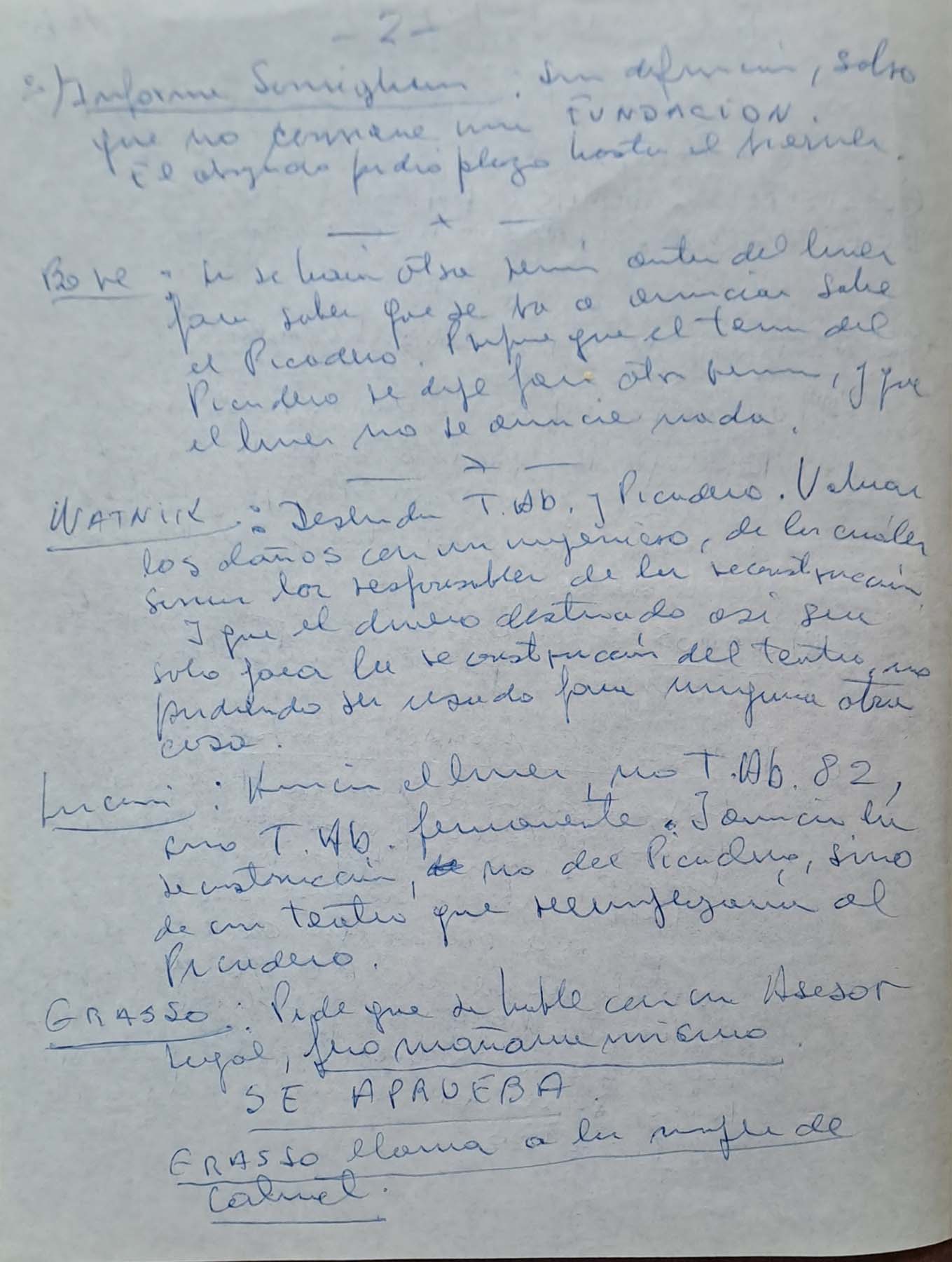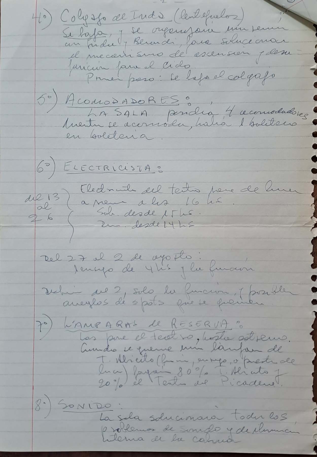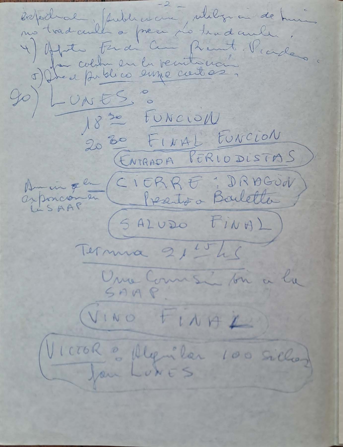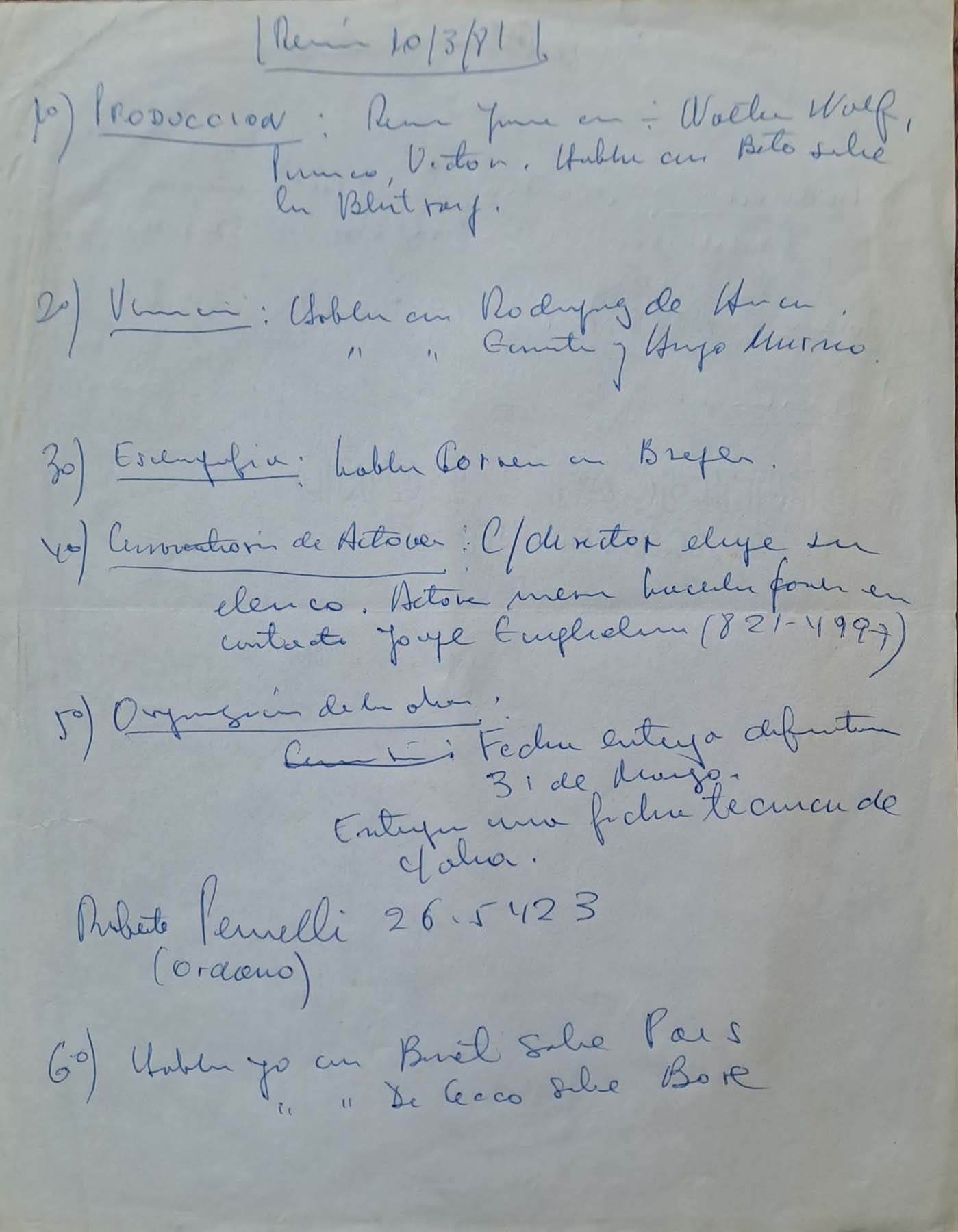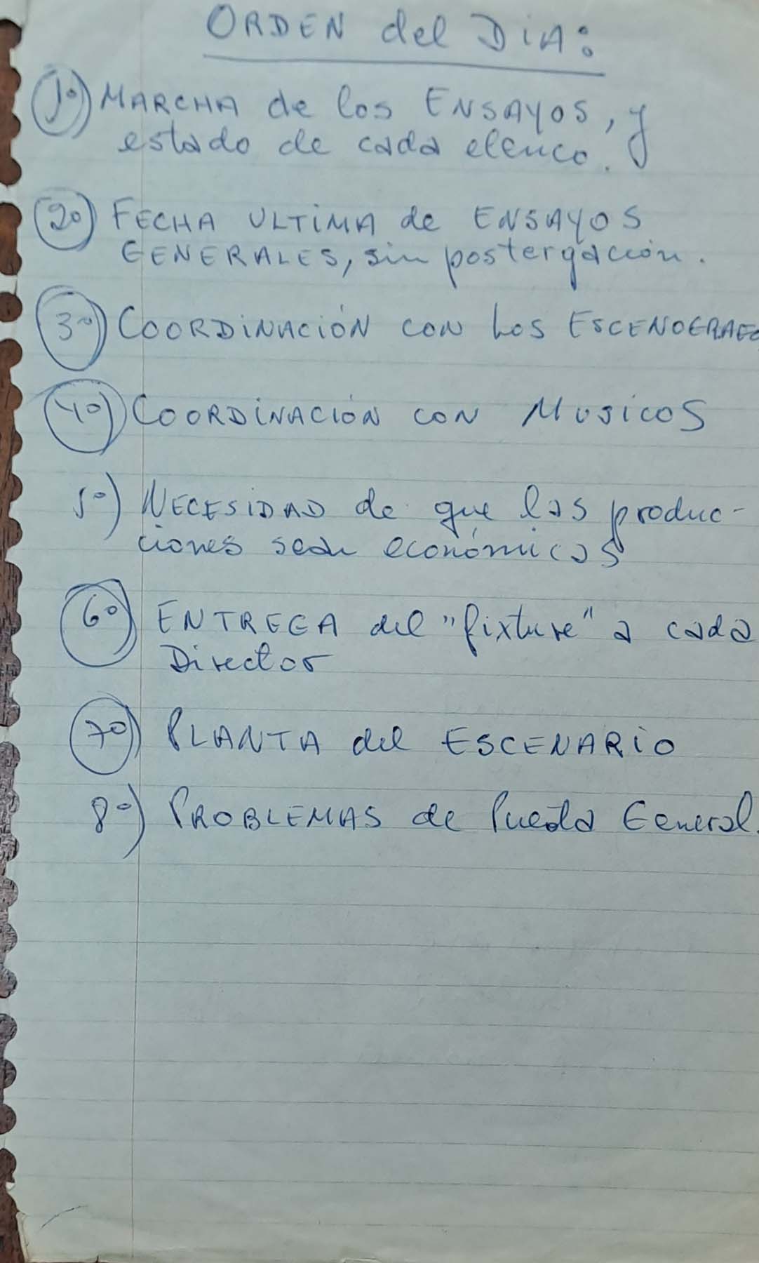- Orden del día con informes de ensayos; escenografía; músicos: aspectos financieros y puesta general