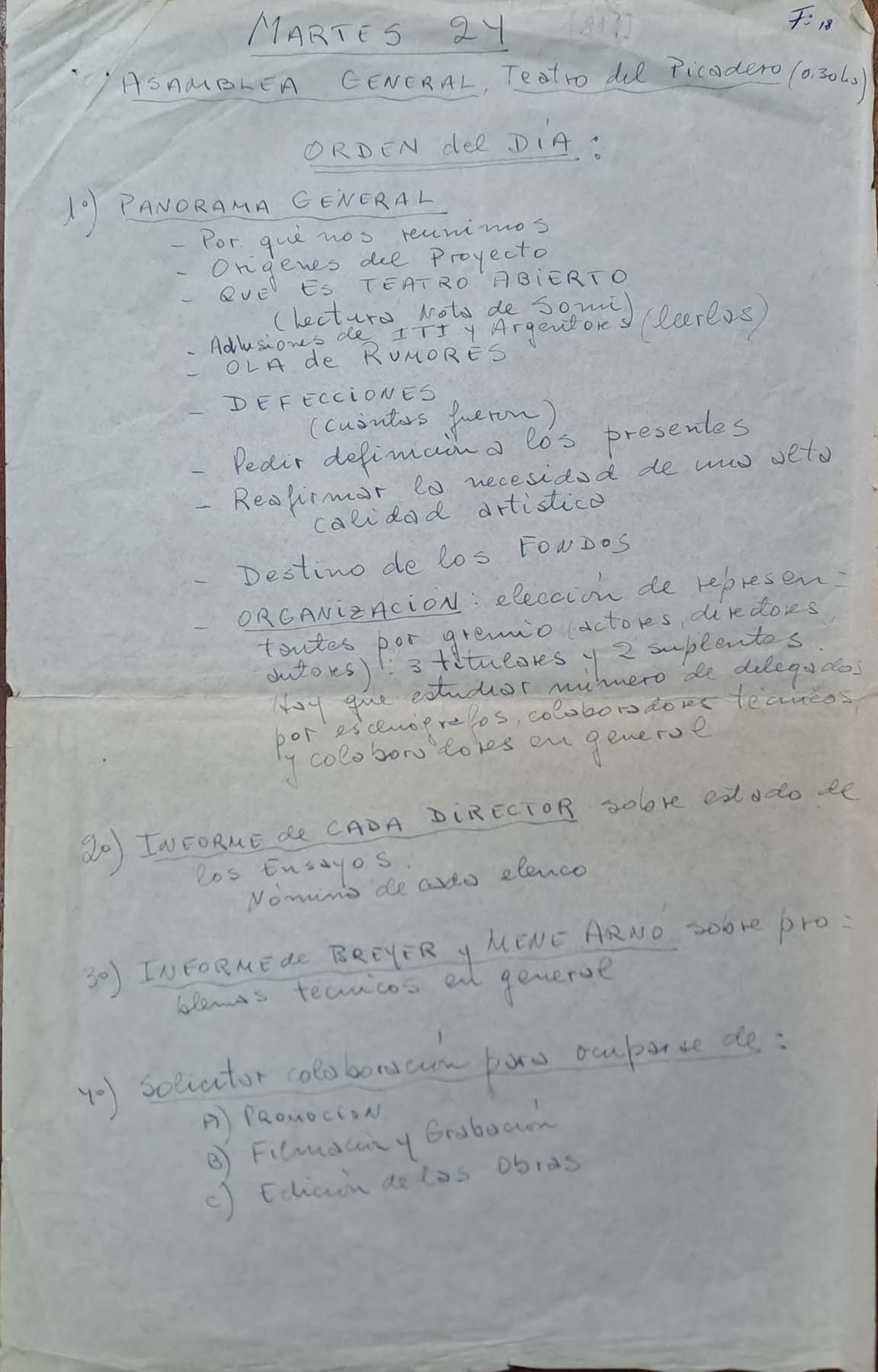 - Orden del día Asamblea General.Teatro del Picadero. 25. 05.1981