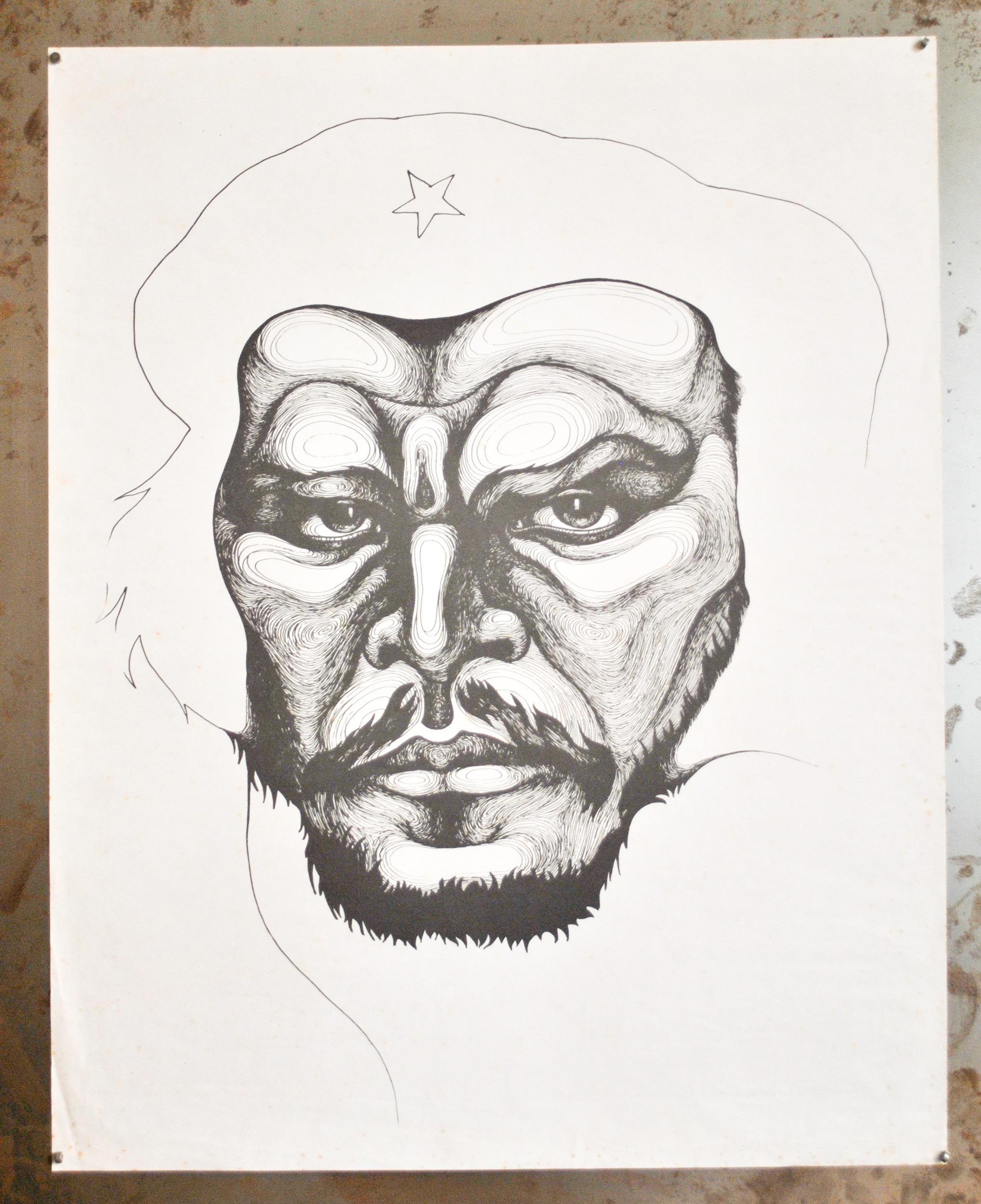 Reproducción de un grabado del rostro de Ernesto Che Guevara, realizado por Carpani.