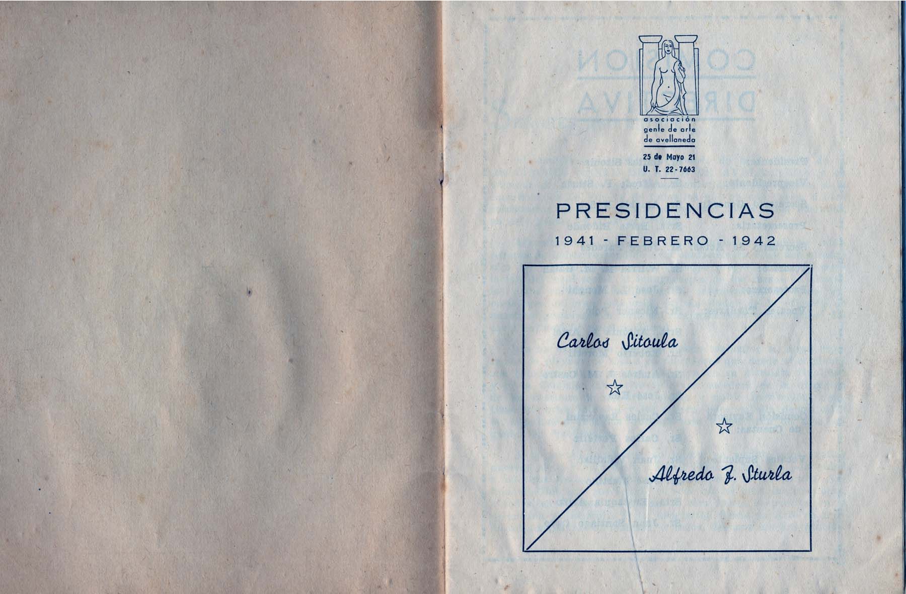Muestra de la asociación gente de arte de Avellaneda. Pequeño catálogo con balance de cuentas, autoridades, tareas realizadas en el período 1941-1942