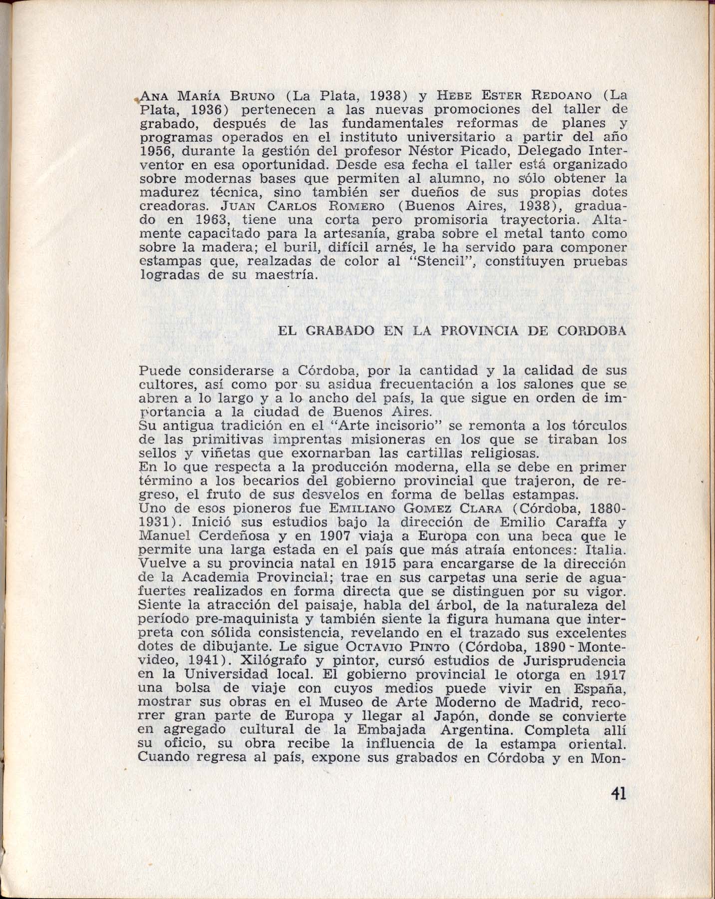 Libro de Fernando Lopez Anaya sobre el grabado argentino en el siglo XX. Principales instituciones promotoras. Juan Carlos Romero aparece nombrado en la pág. 41.