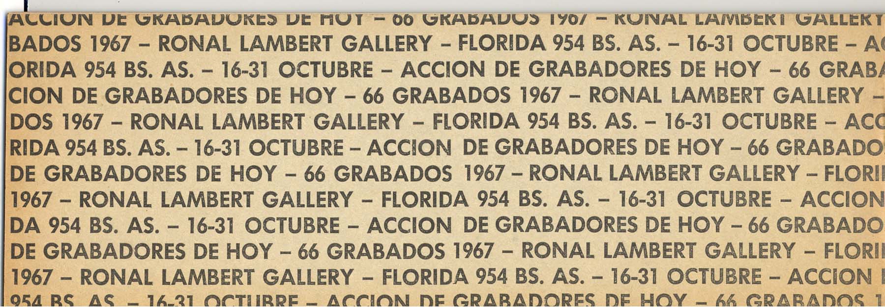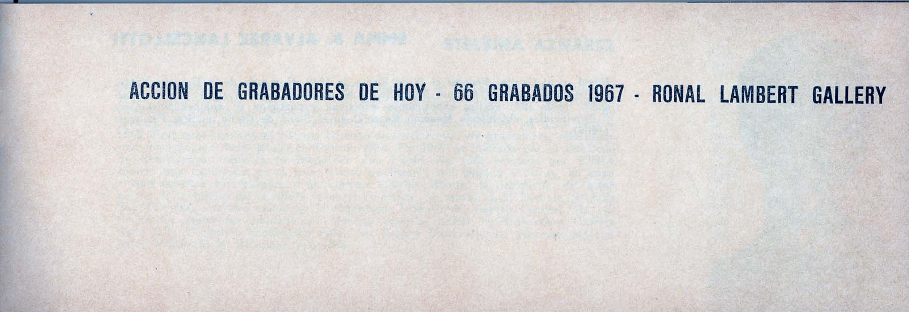 66 grabados 1967. Participan: Álvarez Lancelloti, Aznarez, Beccaria, Biglione, Cremaschi, Cugat, Drago, Lochasian, Levy, Lovera, Luna Ercilla, Muñeza, Orlandi, Paley Sola, Resnik, Romero, Sanchez, Santander, Tau, Villamor, Weiss,