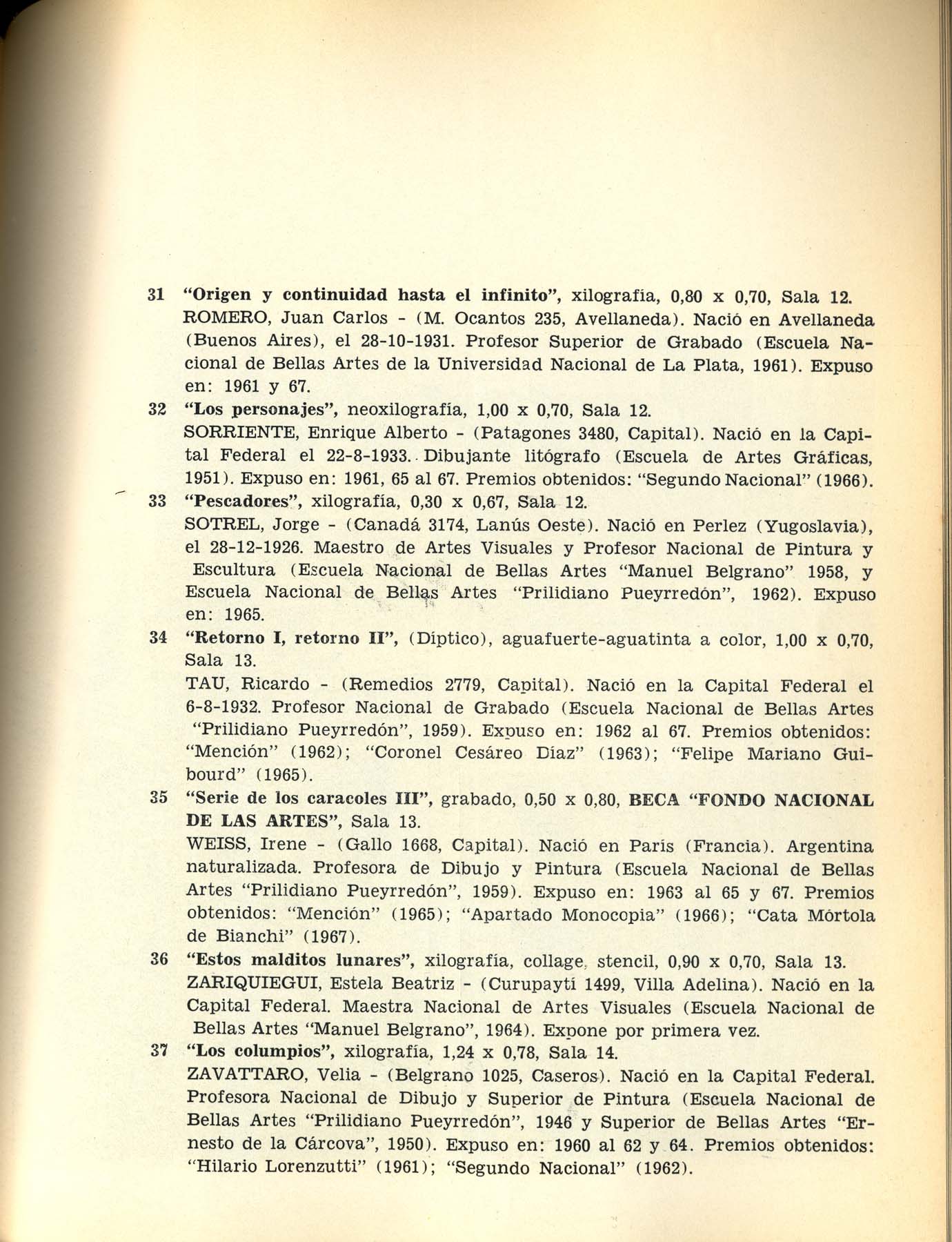 Invitado de honor: aquiles badi. Participan, entre otros: Garcia uriburu, Ilde Mazzola, Roberto Alfaro, Norberto Pagano, Margo Daniel, Mario Gargatagli, Cavallero, Esposito, Martorell, Albano, Alvarez, Alzogaray, Amicarelli, Benedit, Giannone, Kemble, jarach, Lezama, Alfaro, Armagni, Audivert, Beccaria, Moncalvo, Muñeza, Orts Mayor, Paez, Paley, Perez Celis, Piñeiro, Rodriguez, Romberg, Weiss, Zariquiegui, Zavattaro. Participación con la obra "orígen y continuidad hasta el infinito"