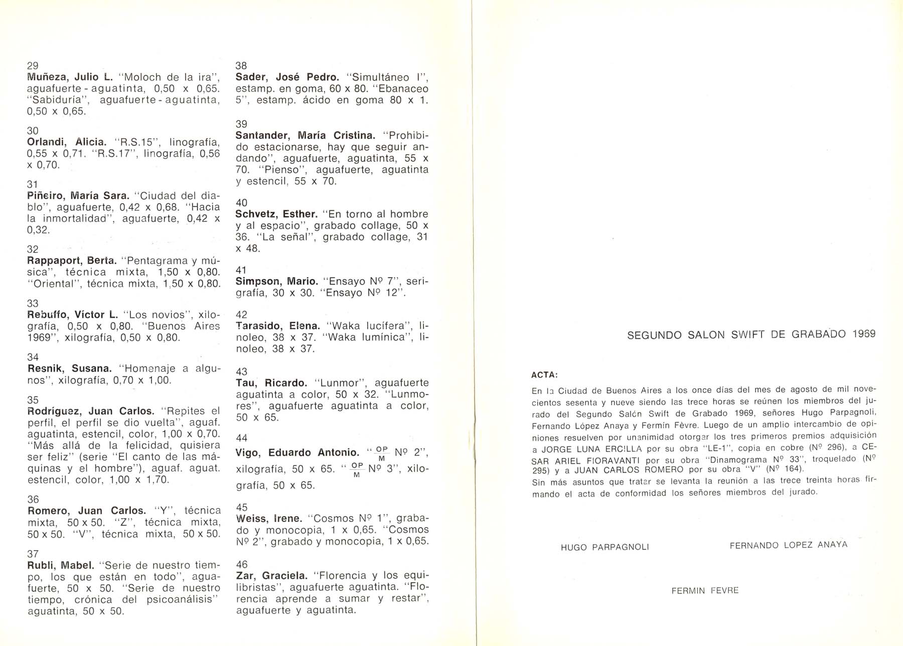 Participación con las obras: "Y""X" y "V". Texto de Hugo Parpagnoli. Participan: Alberastury, Alfaro, Andino, Armagni, Barral, Beccaria, Bou, Capitani, Cecconi, Crespo, Cugat, Delhez, Diaz, Fendrik, Fioravanti, Gagliardi, Goldstein, Gómez, Gonzázlez, Guera, Iturralde, Licenziato, Luna Ercilla, Luna, Macchione, Muller, Muñeza, Orlandi, Piñeiro, Rappaport, Rebuffo, Resnik, Rodriguez, Romero, Rubli, Sader, Santander, Scvetz, Simpson, Tarasido, Tau, Vigo, Weiss, Zar. Premio a la obra V. Jurado Anaya, Fevre, Parpagnoli.