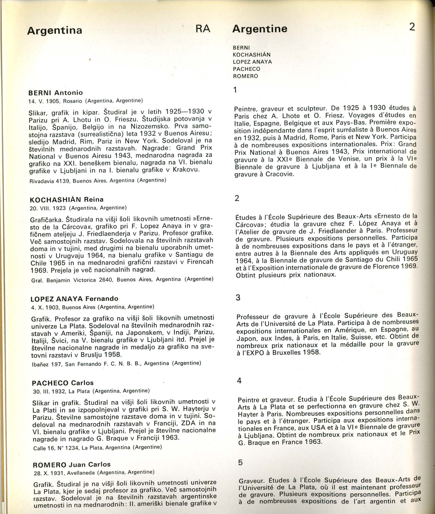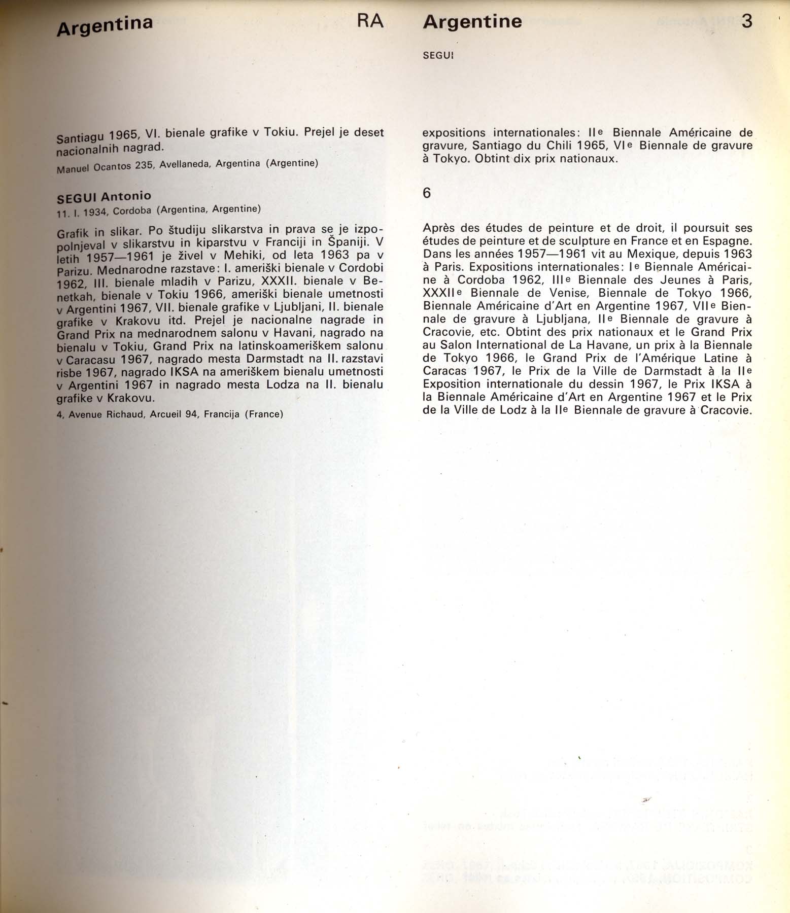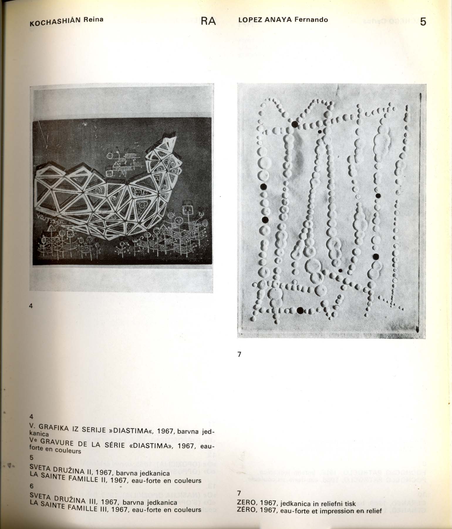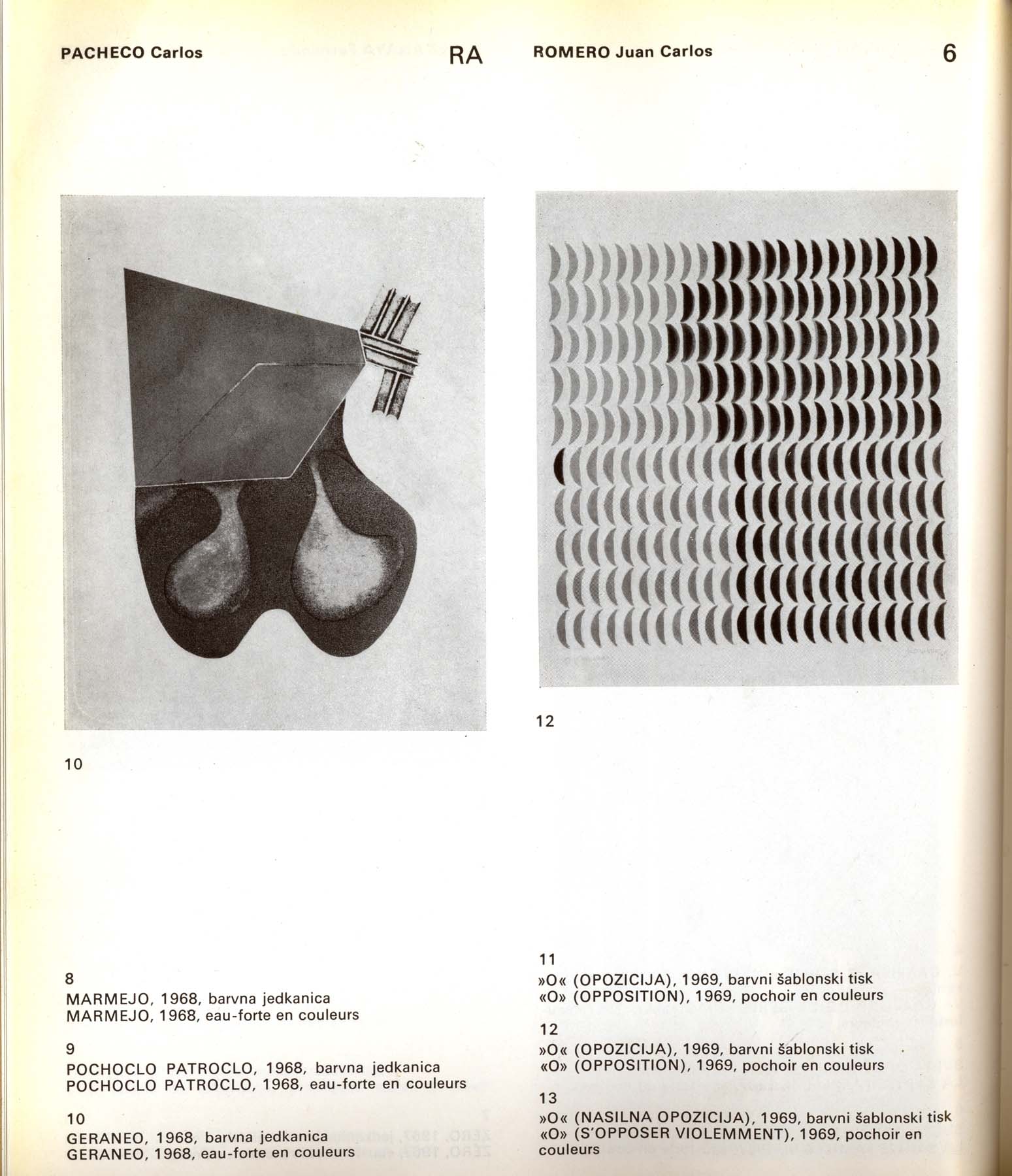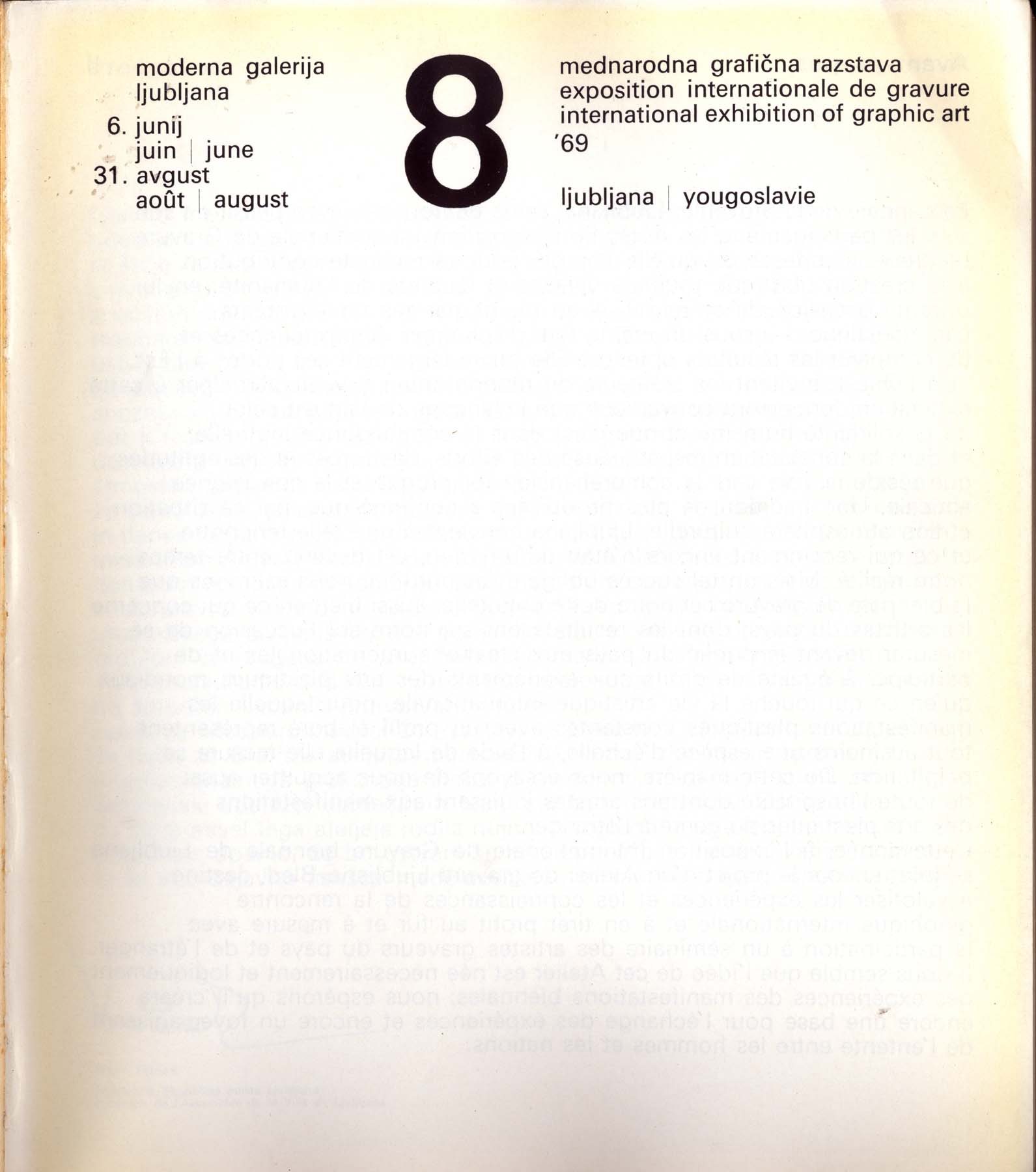 Expo de grabado. Participan, entre otros Ipcelj, Jones, Ikeda, Biasi, Kiar, Paolozzi, Berber, Kitaj, Raveel, Lucassen, Maraz, Bergman, Pogacnik, John, Messagier, Spacia, Johns, Piza, Bak, Kano, Postman, Bates, Tilson, Berni, Bisti, Kallhard, Kiar, Vedova, Bontecou, Segui, Reynal. Delegación argentina: Berni, Kochashian, Lopez Anaya, Pacheco, Romero, Seguí. Participación con obra "O"