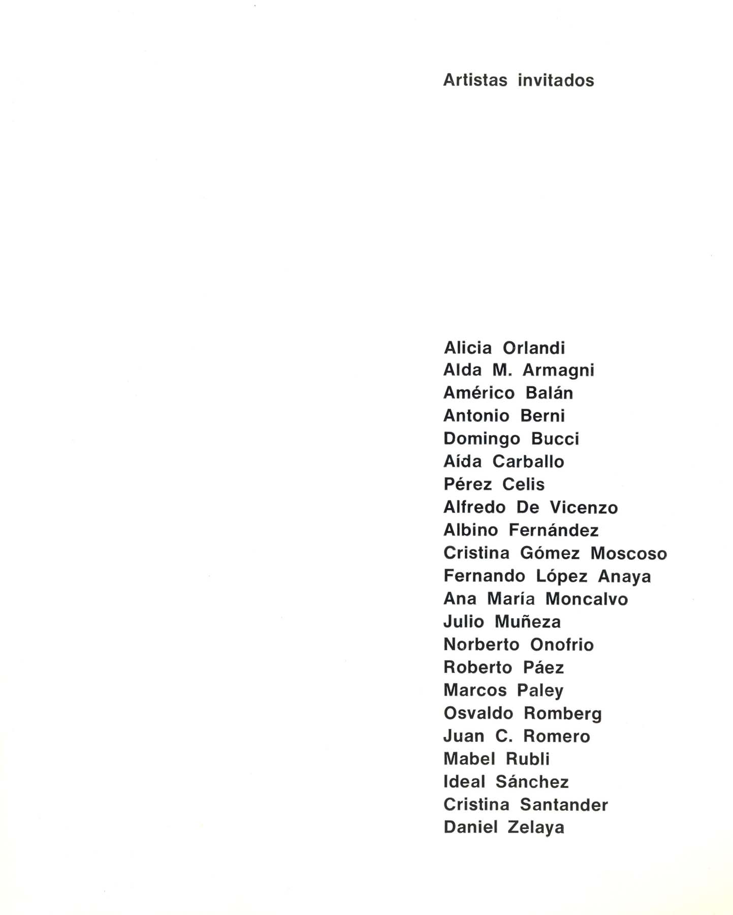 Participación como Artista Invitado. Participan: Orlandi, Armagni, Bal{an, Berni, Bucci, Carballo, Celis, De Vicenzo, Fernández, Gómez Moscoso, López Anaya, Moncalvo, Muñeza, Onofrio, Páez, Paley, Romberg, Romero, Rubli, Sánchez, Santander, Zelaya.