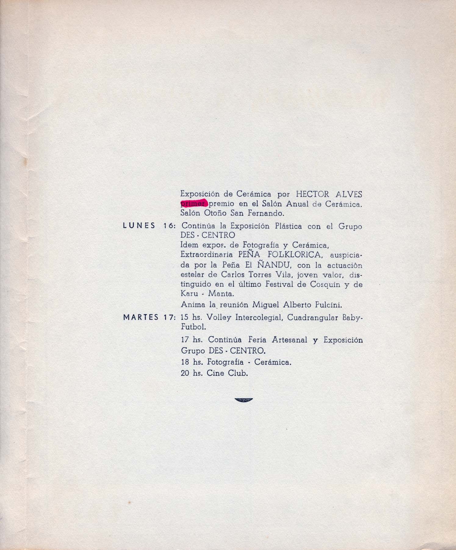Carpeta. Exhibición Grupo Des-Centro: Jorge Duarte, Roberto Duarte Laferrere, Maria Juana Heras Velasco,Jorge Lezama, María Martorell, Manuel Espinosa, Cesar Fioravanti, Jorge Gamarra, Emilio Renart, Ricaro Roux. Texto manifiesto de los artistas.