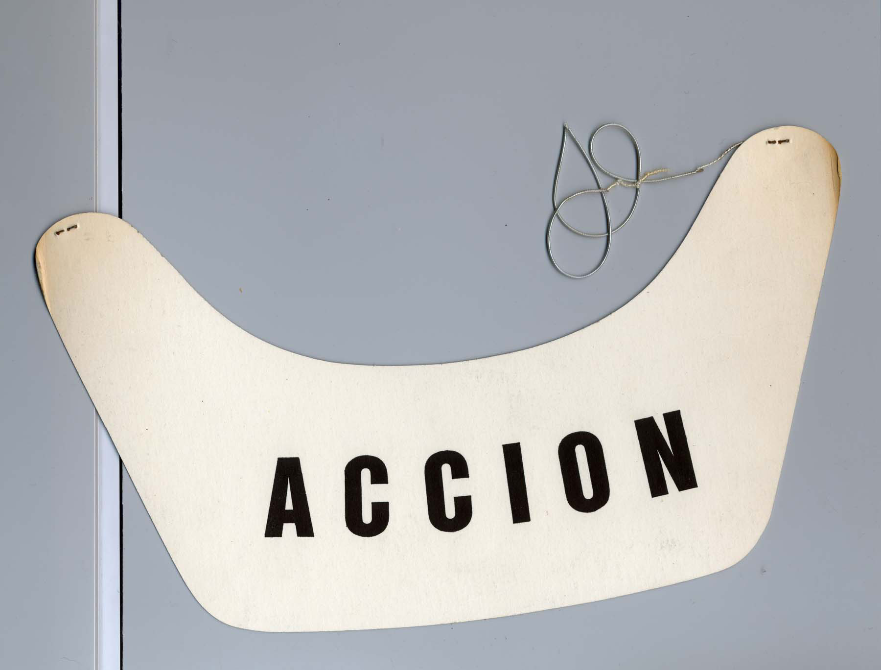 Obra de autor desconocido ¿vicera?. Lleva las inscripciones: "razonamiento/ acción". Se encuentra en el interior del catálogo de la muestra