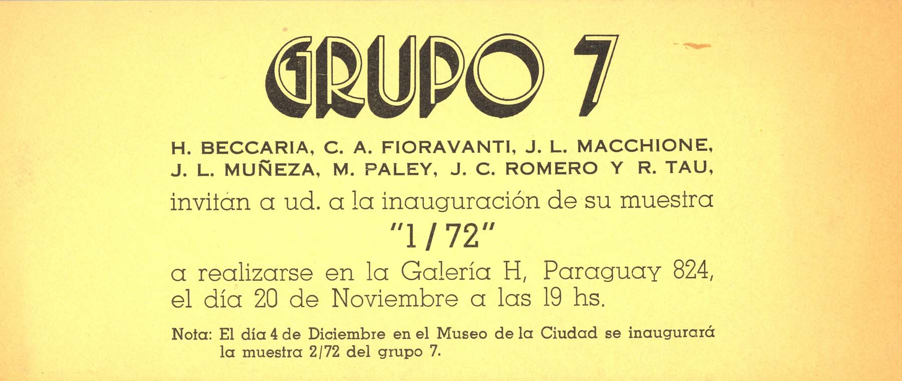 Exhibición colectiva del Grupo 7: Beccaría, Fioravanti, Macchione, Muñeza, Paley, Romero, Tau,