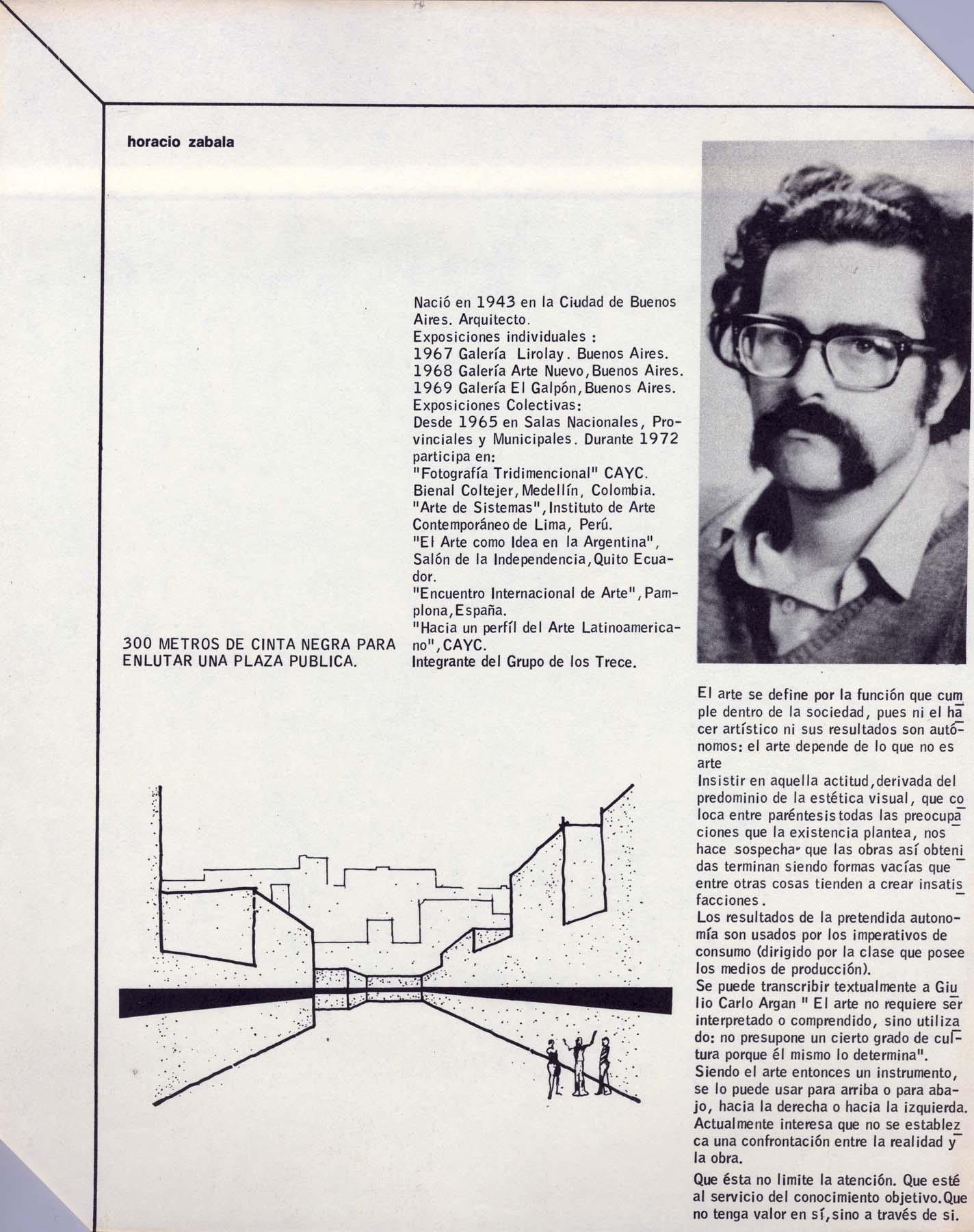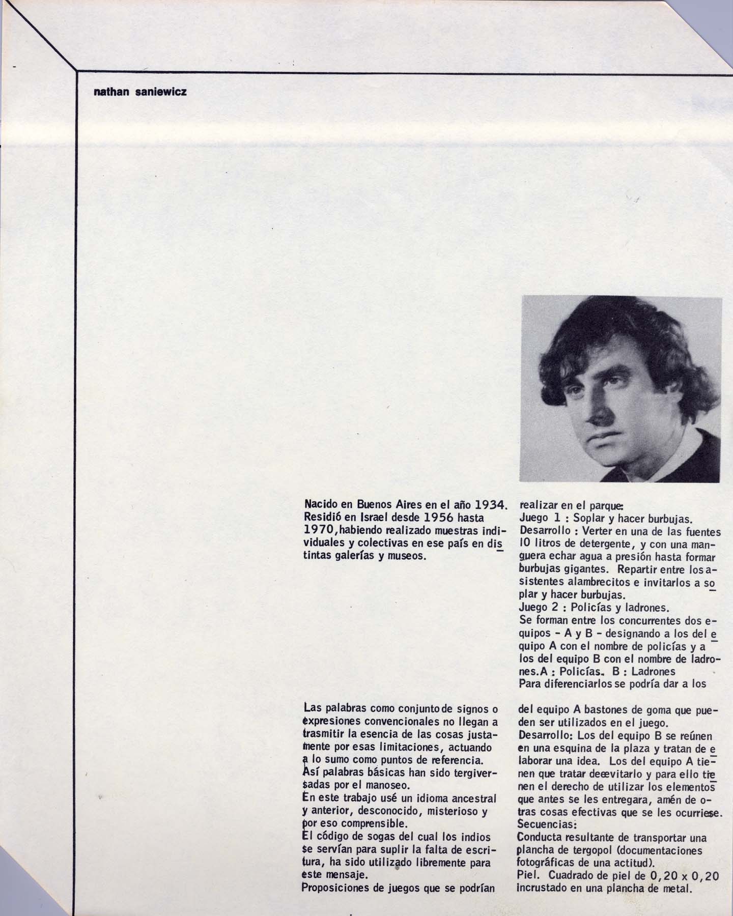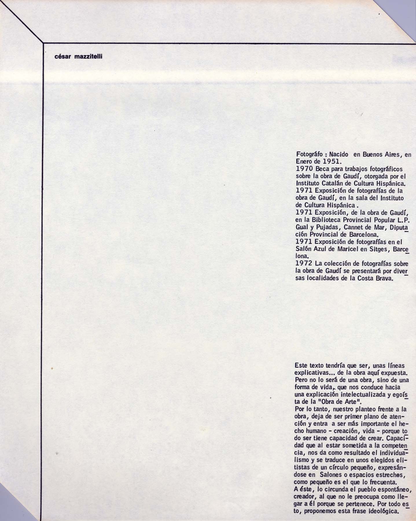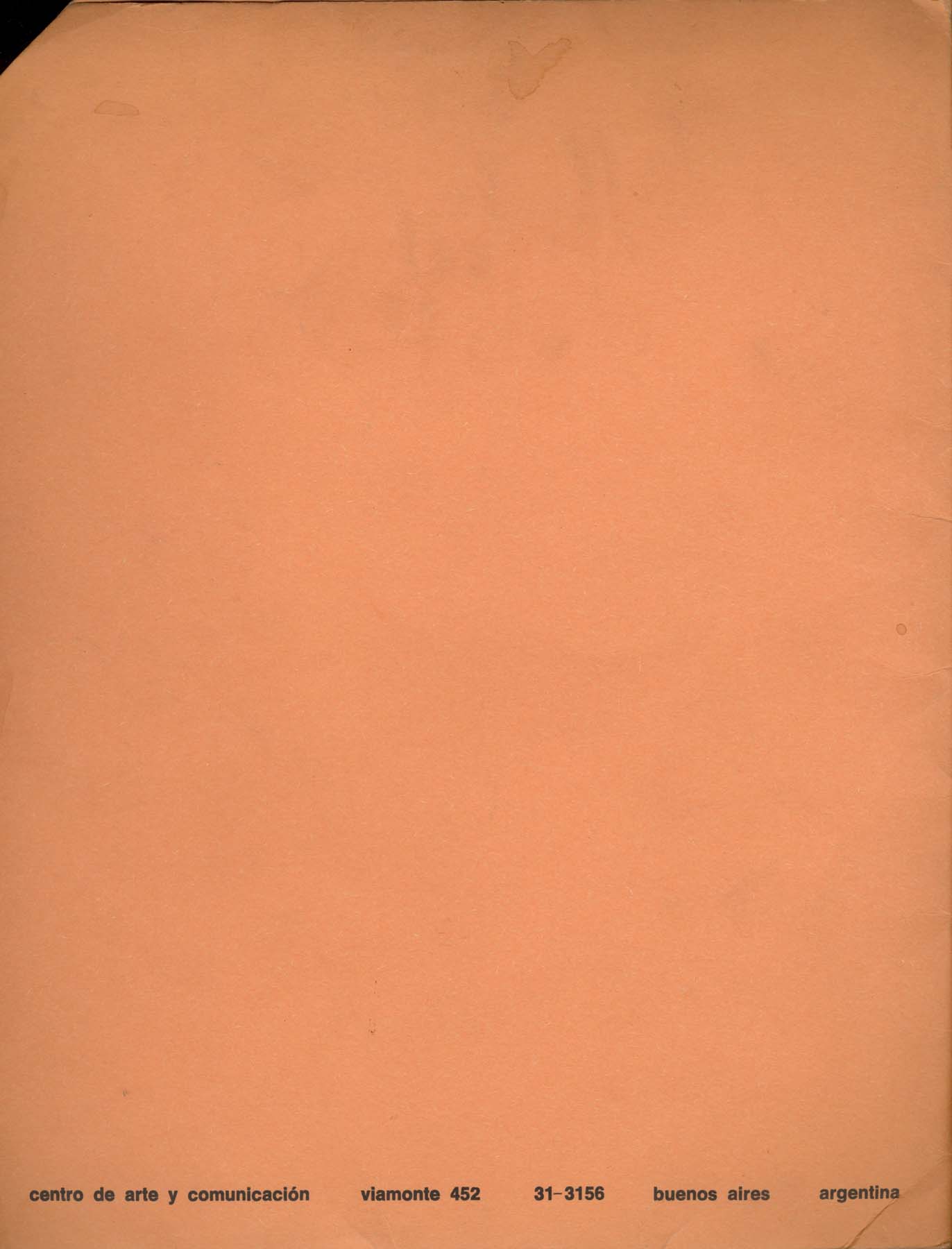 Carpeta de cartulina con hojas Cayc. Actividad realizada en la plaza Ruben Darío. Presenta Grupo de los trece. Organiza Jorge Glusberg. Participan: Zabala, Cayc, Pazos, Dermisache, Perel, Pazos, Solbelman, Dintel, Kotier, Gonzáles, Grippo, Gamarra, Pazos, Lezama, Frascara, Berceteche, Gonzáles Mir, Roux, Faivre, Nusimovich, Romberg, Marzano, Portillos, Romero, Blanco Espacio Humano, Cerrato, Dujovny, Marotta, Conte, Portillos, Sanievich, Teich, Fioravanti, Raffo, Duarte, Bedel, Claiman, Pellegrino, Montagu, Glusberg, Saravia, Sardi, Raffo, Duarte, Amarasi, Leonetti, Pazos, Maxera, Arraiano, Duarte, Claiman, Bedel