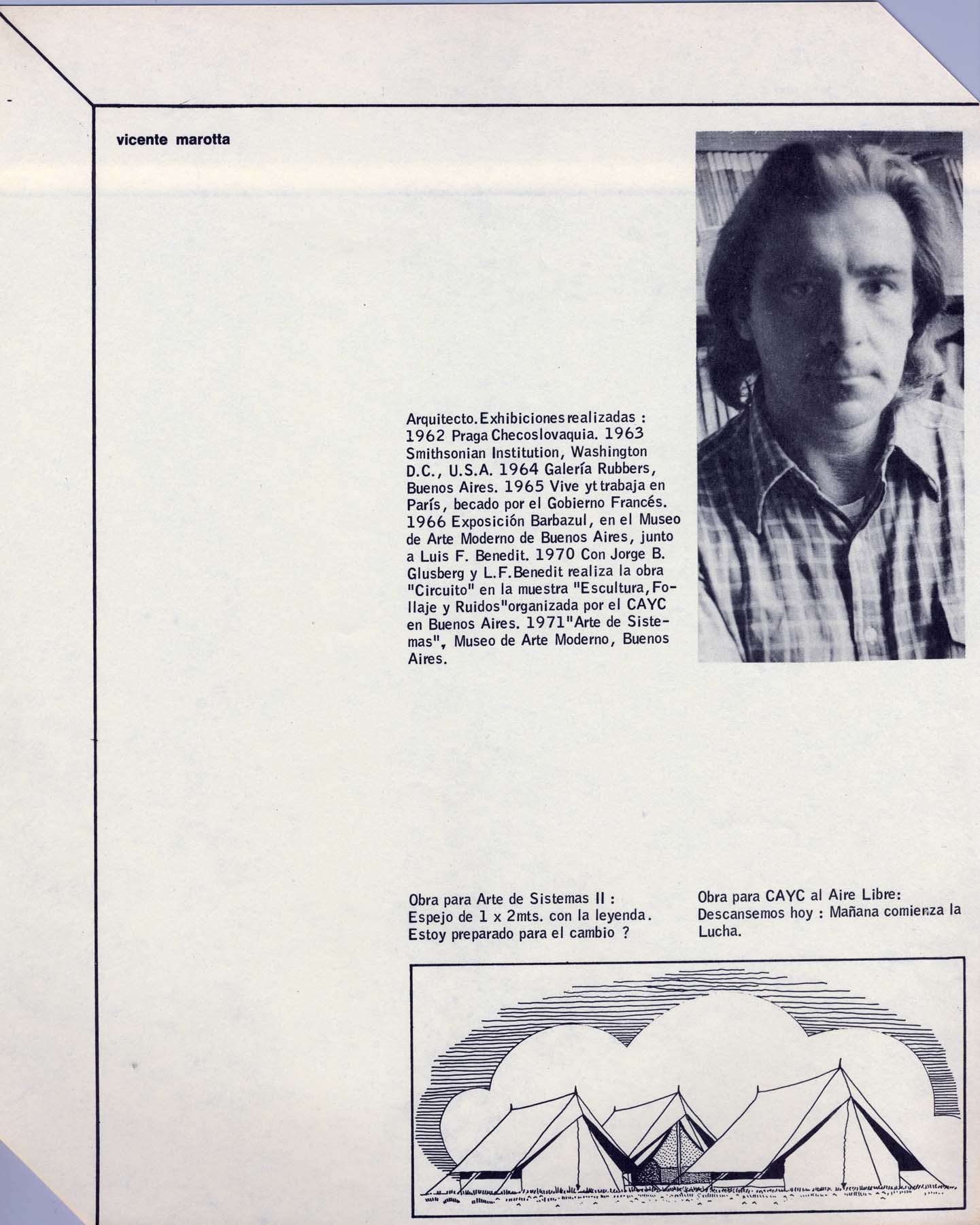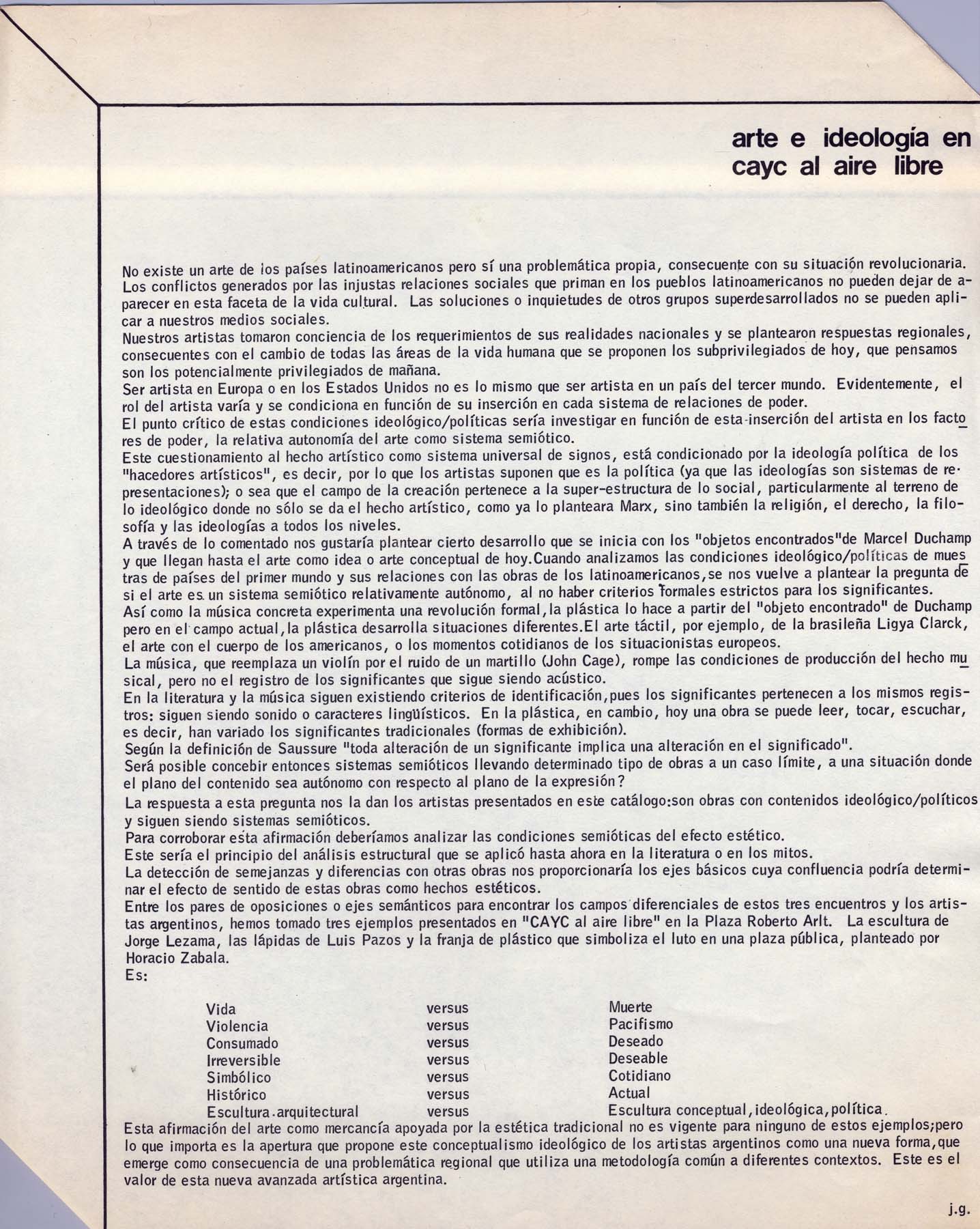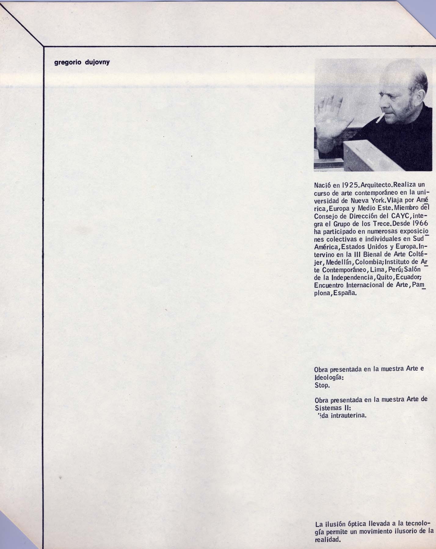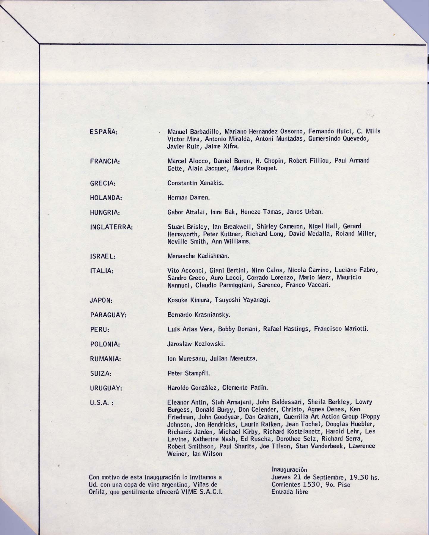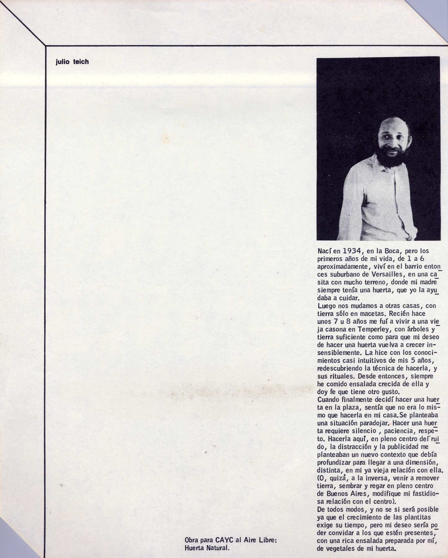 Carpeta de cartulina con hojas Cayc. Actividad realizada en la plaza Ruben Darío. Presenta Grupo de los trece. Organiza Jorge Glusberg. Participan: Zabala, Cayc, Pazos, Dermisache, Perel, Pazos, Solbelman, Dintel, Kotier, Gonzáles, Grippo, Gamarra, Pazos, Lezama, Frascara, Berceteche, Gonzáles Mir, Roux, Faivre, Nusimovich, Romberg, Marzano, Portillos, Romero, Blanco Espacio Humano, Cerrato, Dujovny, Marotta, Conte, Portillos, Sanievich, Teich, Fioravanti, Raffo, Duarte, Bedel, Claiman, Pellegrino, Montagu, Glusberg, Saravia, Sardi, Raffo, Duarte, Amarasi, Leonetti, Pazos, Maxera, Arraiano, Duarte, Claiman, Bedel