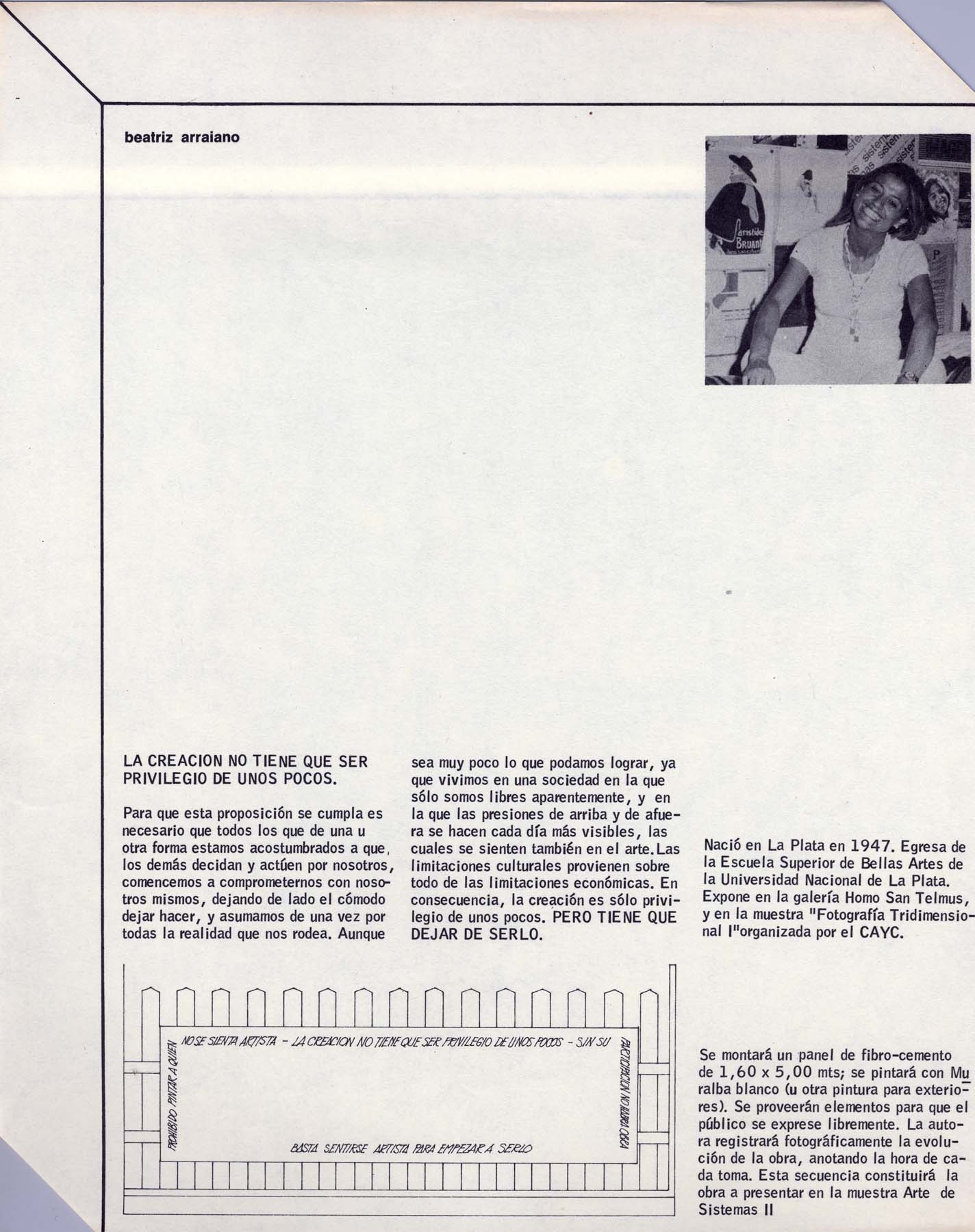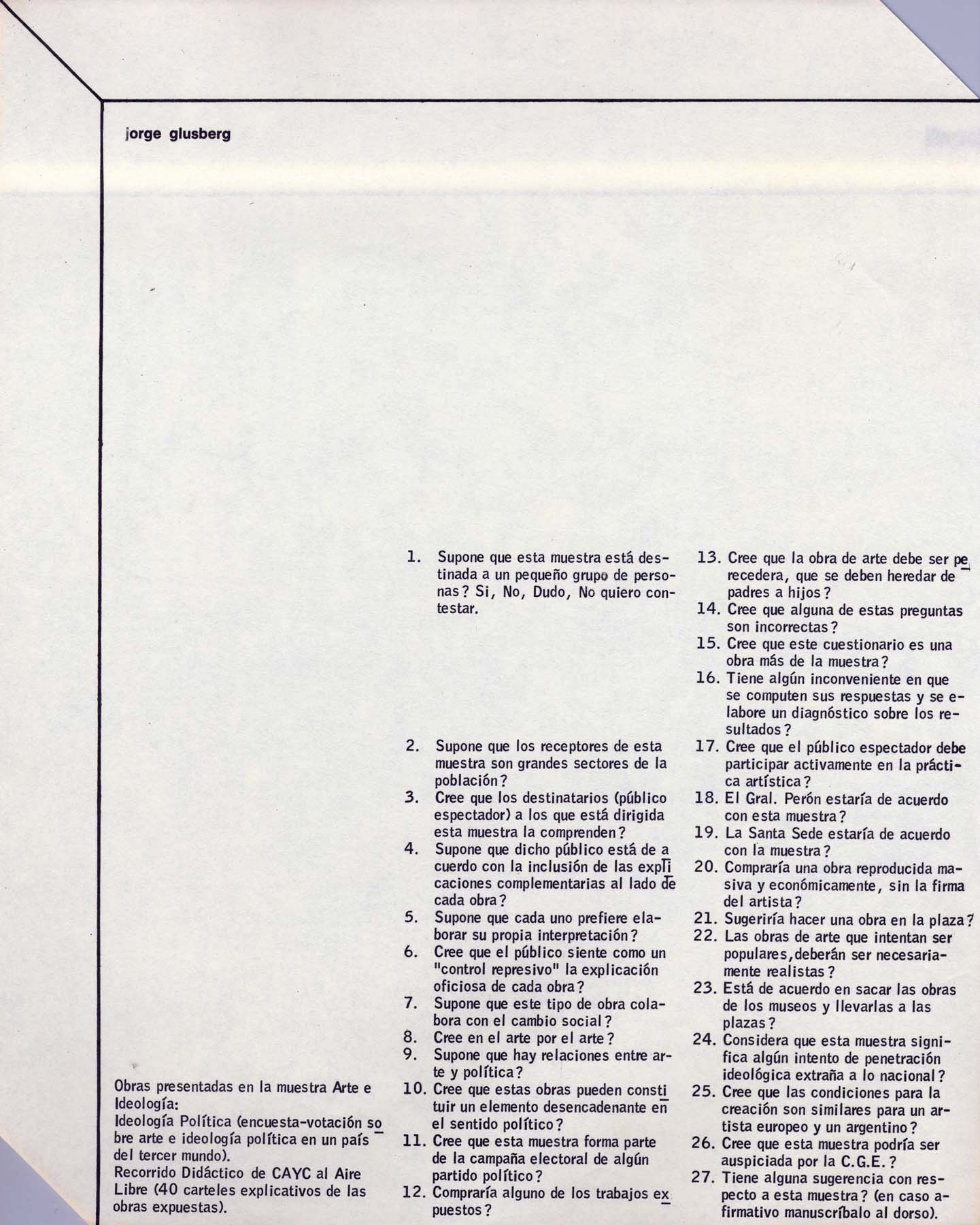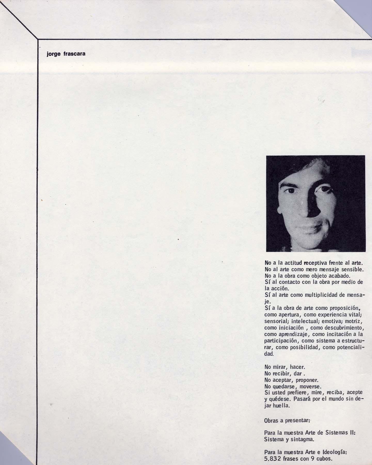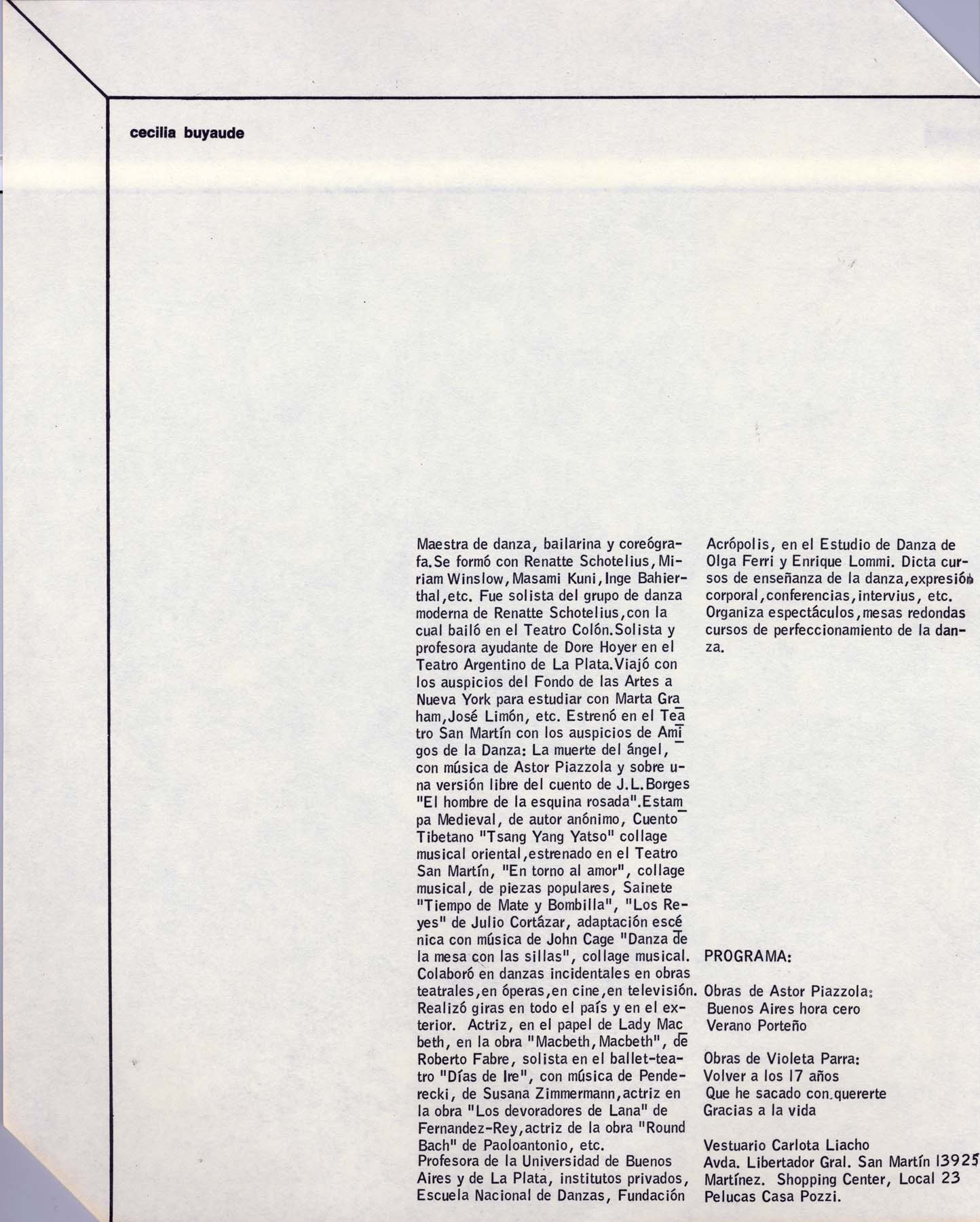 Carpeta de cartulina con hojas Cayc. Actividad realizada en la plaza Ruben Darío. Presenta Grupo de los trece. Organiza Jorge Glusberg. Participan: Zabala, Cayc, Pazos, Dermisache, Perel, Pazos, Solbelman, Dintel, Kotier, Gonzáles, Grippo, Gamarra, Pazos, Lezama, Frascara, Berceteche, Gonzáles Mir, Roux, Faivre, Nusimovich, Romberg, Marzano, Portillos, Romero, Blanco Espacio Humano, Cerrato, Dujovny, Marotta, Conte, Portillos, Sanievich, Teich, Fioravanti, Raffo, Duarte, Bedel, Claiman, Pellegrino, Montagu, Glusberg, Saravia, Sardi, Raffo, Duarte, Amarasi, Leonetti, Pazos, Maxera, Arraiano, Duarte, Claiman, Bedel