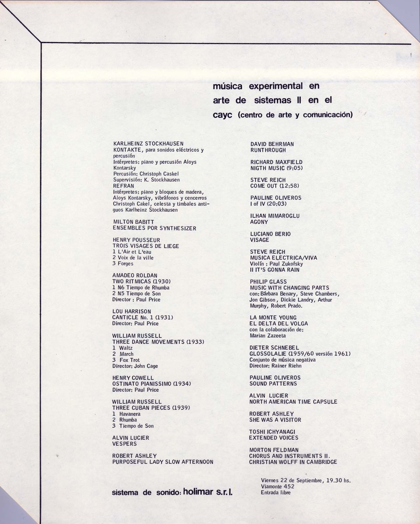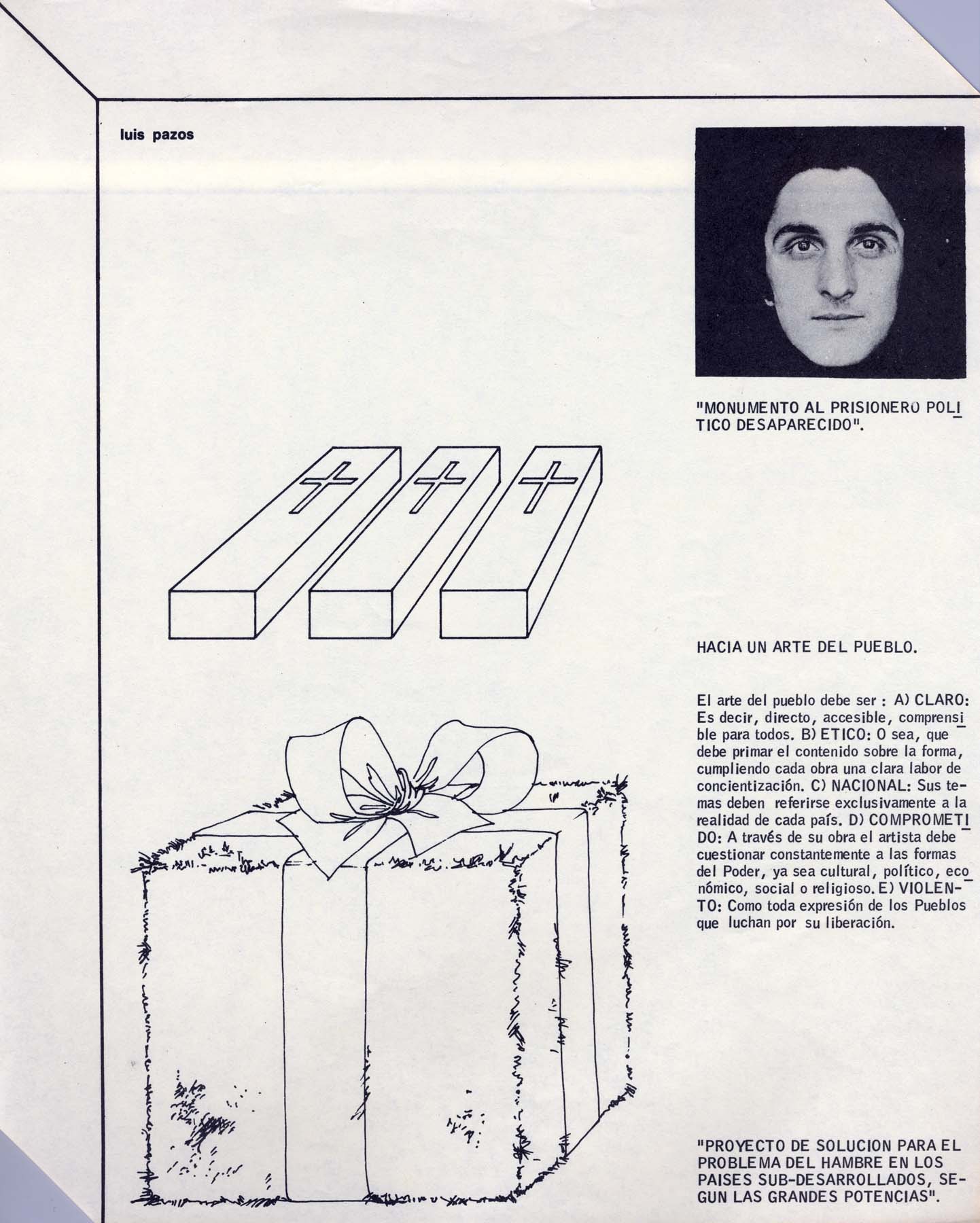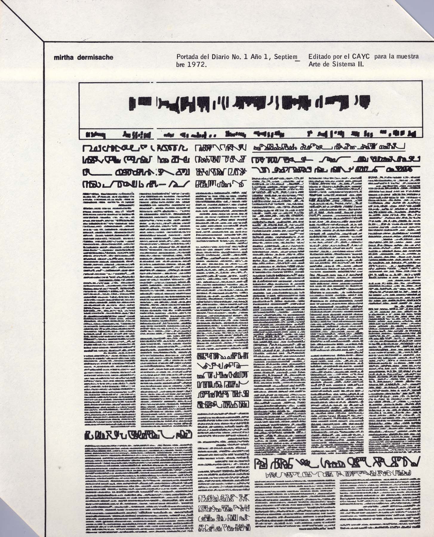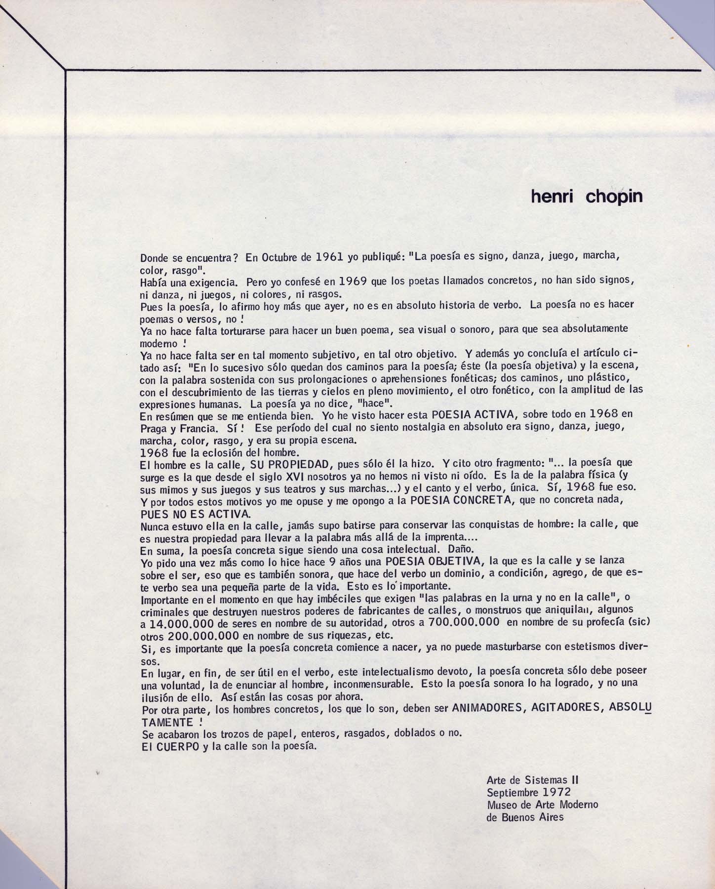 Carpeta de cartulina con hojas Cayc. Actividad realizada en la plaza Ruben Darío. Presenta Grupo de los trece. Organiza Jorge Glusberg. Participan: Zabala, Cayc, Pazos, Dermisache, Perel, Pazos, Solbelman, Dintel, Kotier, Gonzáles, Grippo, Gamarra, Pazos, Lezama, Frascara, Berceteche, Gonzáles Mir, Roux, Faivre, Nusimovich, Romberg, Marzano, Portillos, Romero, Blanco Espacio Humano, Cerrato, Dujovny, Marotta, Conte, Portillos, Sanievich, Teich, Fioravanti, Raffo, Duarte, Bedel, Claiman, Pellegrino, Montagu, Glusberg, Saravia, Sardi, Raffo, Duarte, Amarasi, Leonetti, Pazos, Maxera, Arraiano, Duarte, Claiman, Bedel