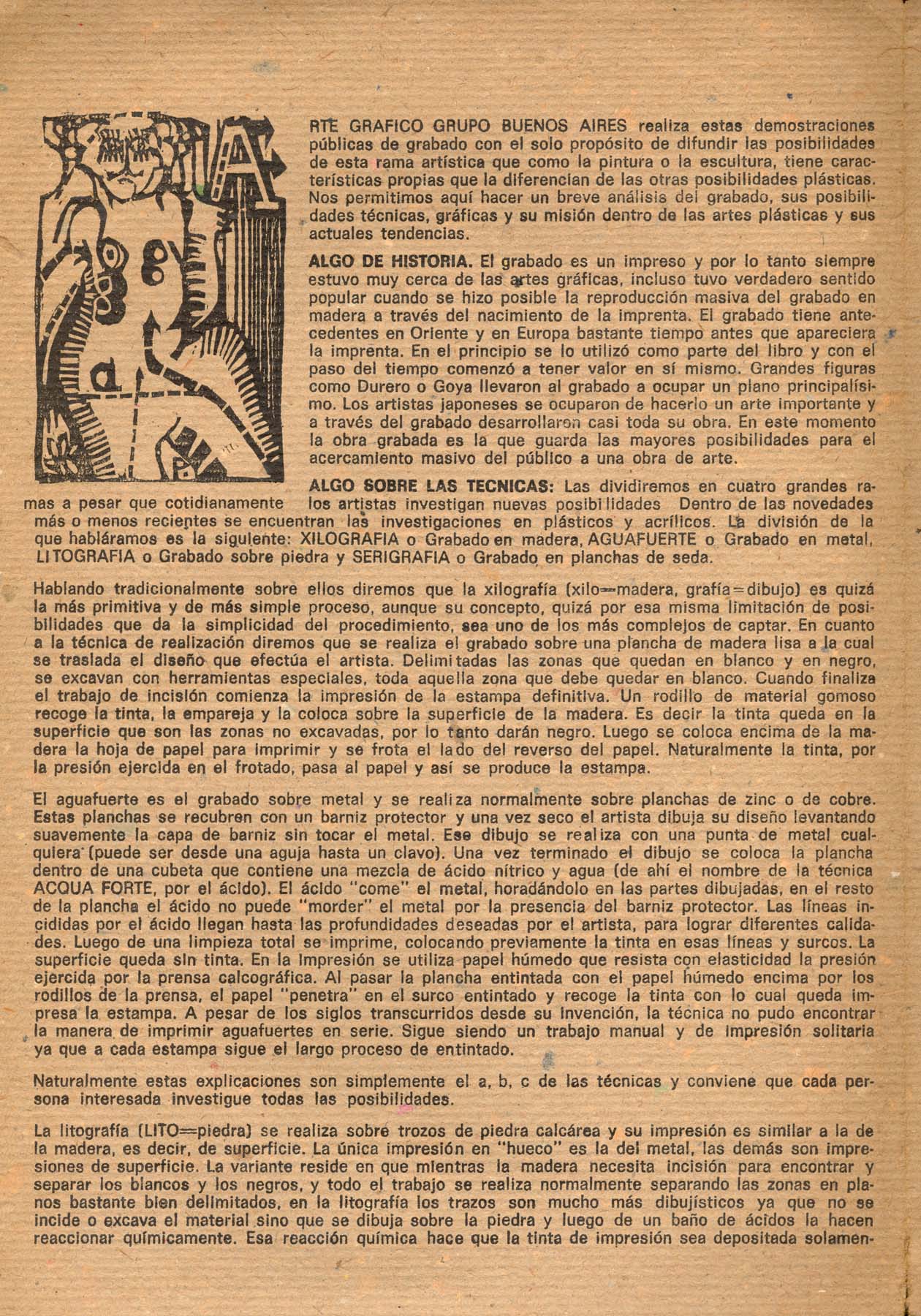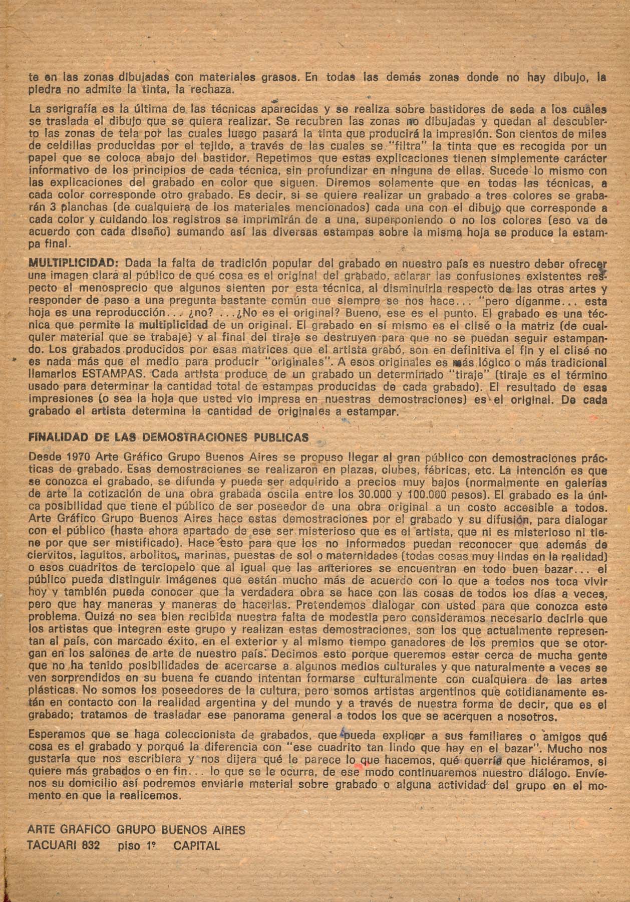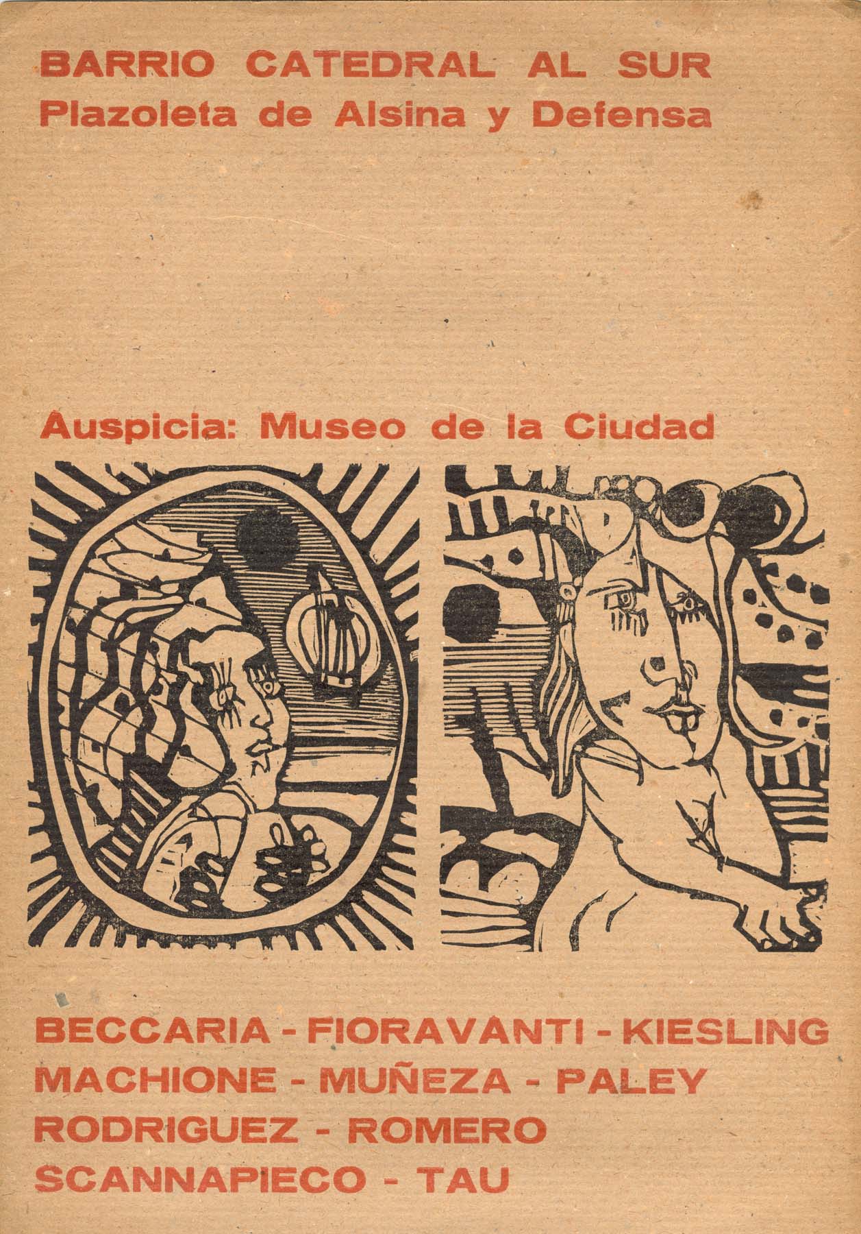 Participan: Beccaría, Fioravanti, Kiesling, Machione, Muñeza, Paley, Rodríguez, Romero, Scannapieco, Tau. Auspicia Museo de la Ciudad. Texto de Arte Gráfico Grupo Buenos Aires.