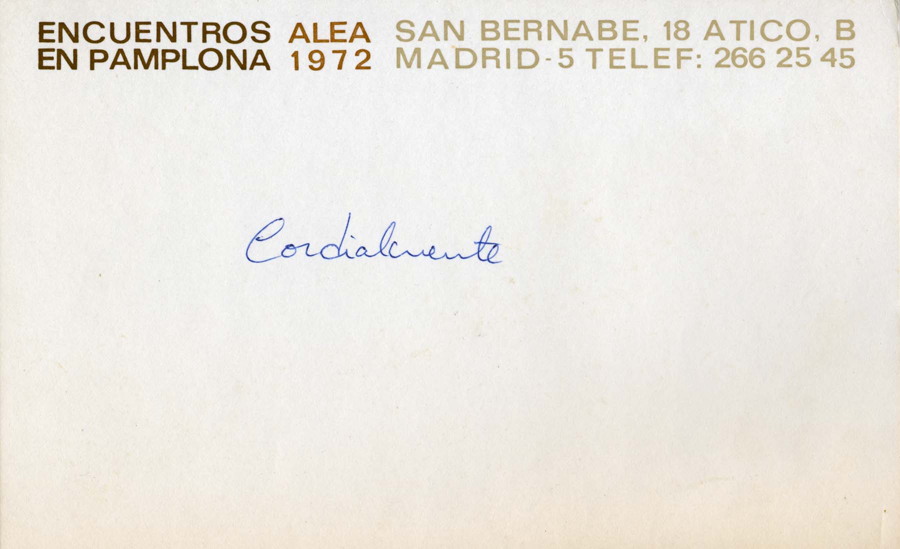 Invitación a Encuentros Alea en Pamplona 1972. San Bermabé, 18, Atico, B, Madrid