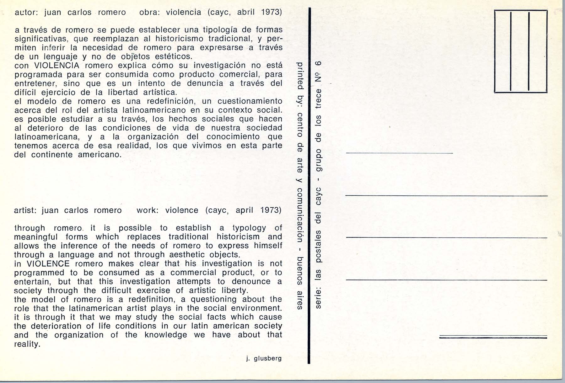 Postal del CAYC N° 6 de la serie "Postales del Cayc"- Grupo de los 13