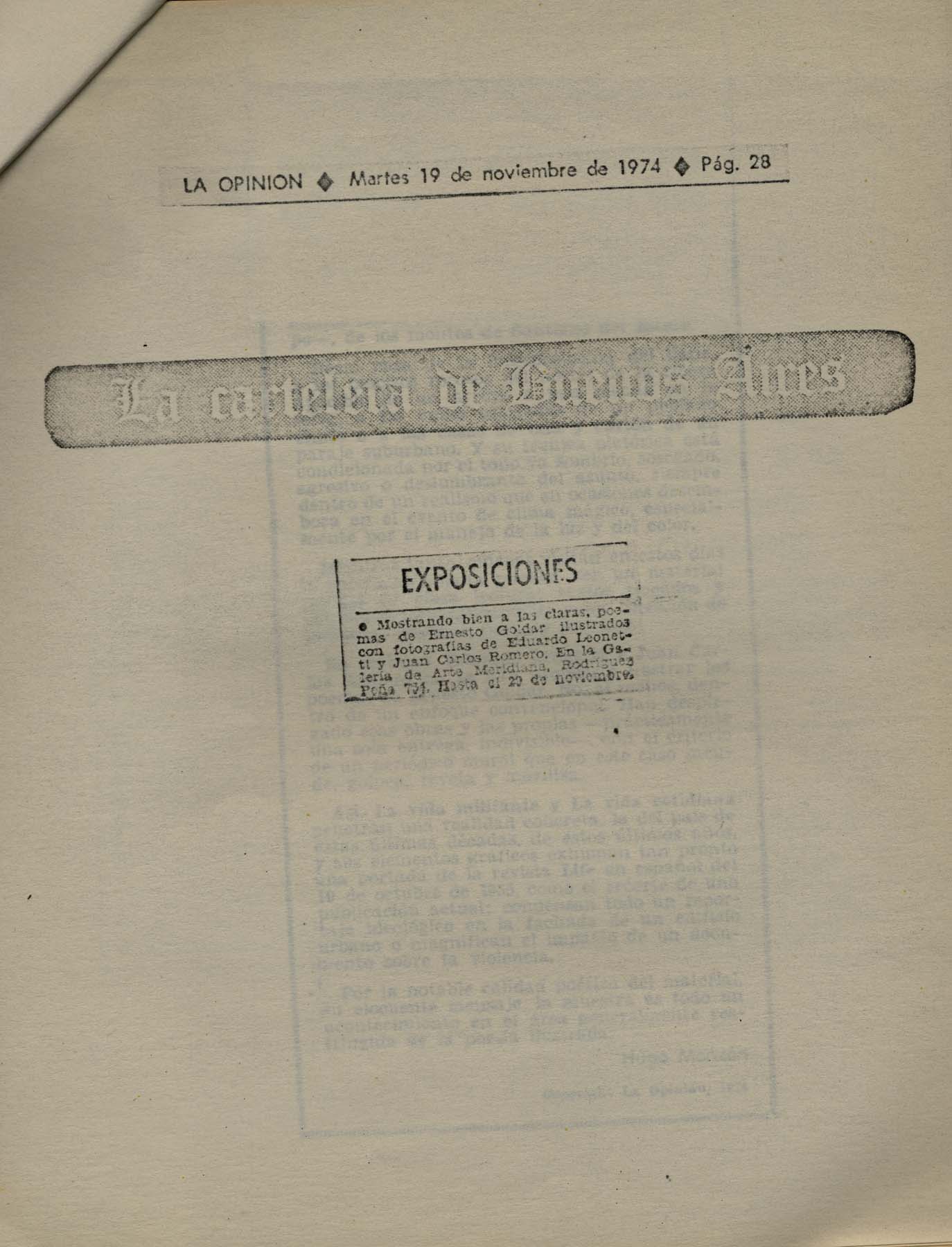 Forma parte de un mismo abrochado de fotocopias.Martes 19 de Noviembre de 1974. La cartelera de Bs. As. "Mostrando bien a las claras"