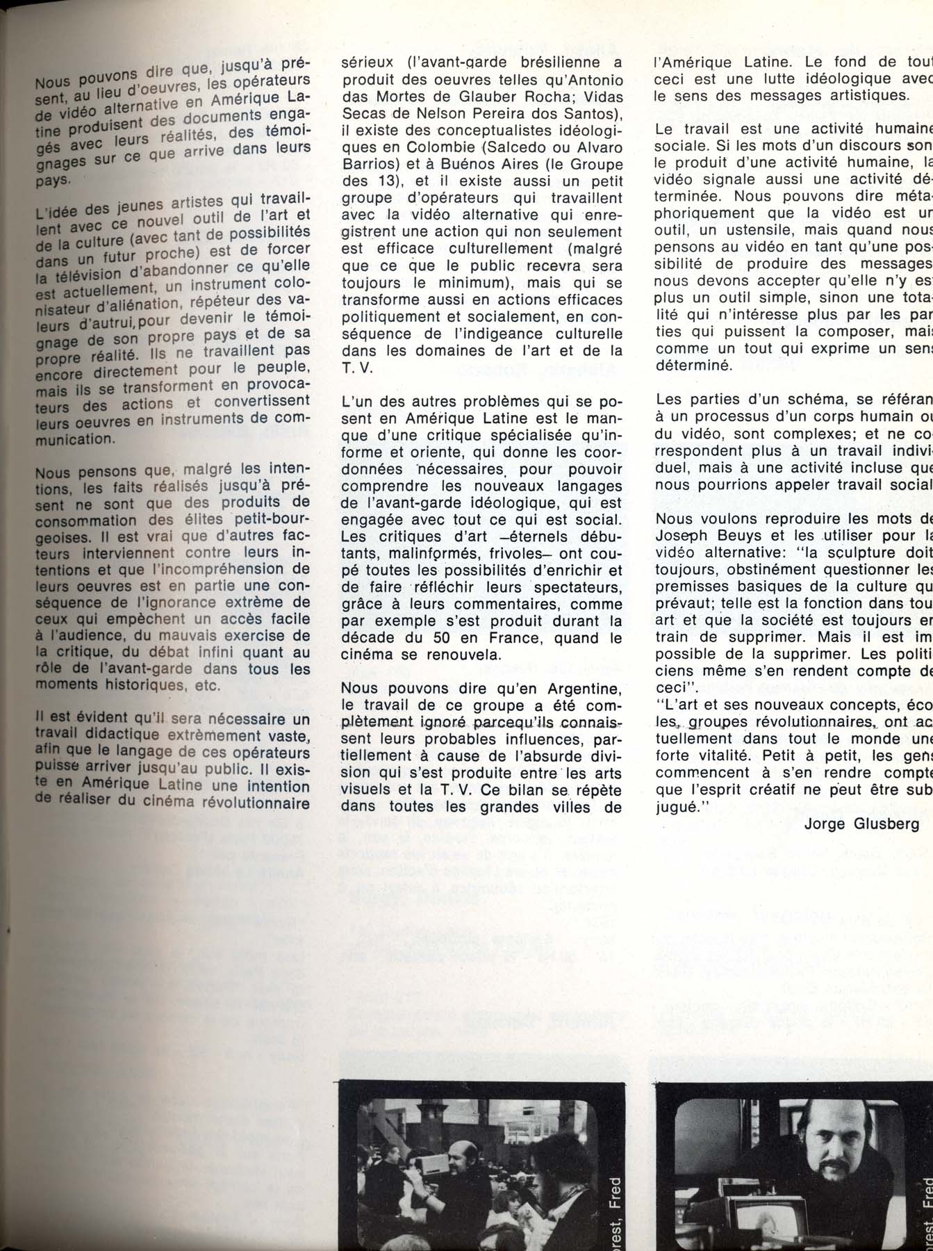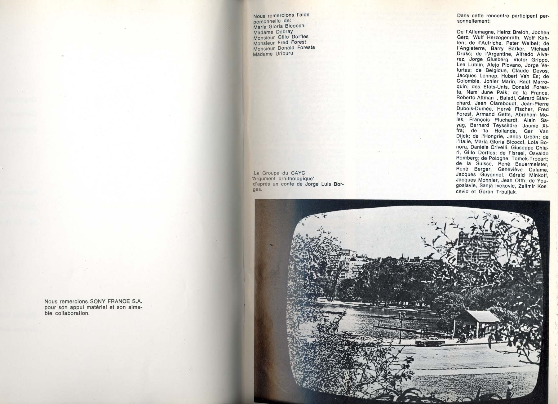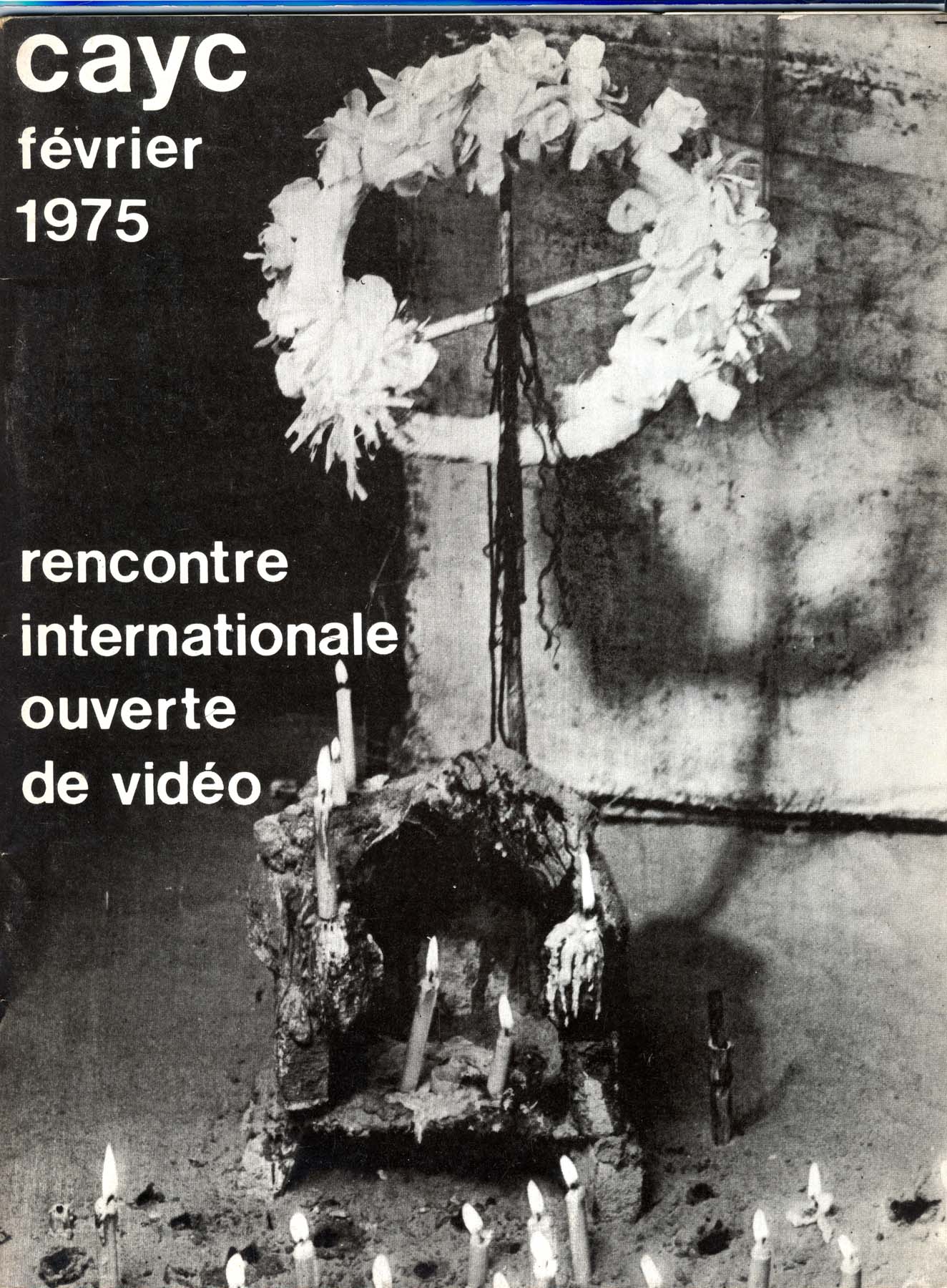 Encuentro Internacional de video en Francia. Texto inicial de Jorge Glusberg. Participan, entre otros: Abramovic, Agnetti, Albright, Alleyn, Altmann, Andersen, Antin, Baladi, Bauermeister, Belloir, Verbizh, Bonnier, Bonora, Breloh, Bucan, Burgy, Byerley, Cardena, Carey, Cerberus, Clareboudt, Cort, Crivelli, Chartier, Chiari, Davis, Druks, Ehrenberg, Electron, Fabro, Fandangos, Flesher, Forest, Foz, Germana, Gerz, Gette, Giaccari, Giler, Goddamatch, Group Cap, Cayc - Vigo, Leonetti, Glusberg, Romero, Lujan Gutierrez, Giodia, Alvarez, Gomez, Torres, Veuirtas, Hastings, Bedel, Benedit, Dujovny, Ginzburg, Grippo, Marotta, Pazos, Pellegrino, Portillos, Romero, Vzabala- Guyonnet, Hale, Harding, Hompson, Hudson/tava, Hutchinson, Limura, Imai, Irick, Ivekovic, Janicot, Journiac, Kahlen, Kaprow, Kiser, klinkowstein, Kristi, La pietra, Lizene, Lowenberg, Lublin, Lucier, Maier, Marroquin, MArtinis, Mc. Millan, Melnik, Minujin, Morton, Mosconi, Muntadas, Nameth, Olessen, Paik, Palfi, Paolini, Patelle, Pignolet, Romberg, Rainer, Rosler, Schumans, Scweizer, Sekula, Sosno, Thenot, Trotta, Van Es, Urban, Video Access Center, Video Art Group, Wynne, Yamamoto, entre otros. Romero participa en las obras: "Mass Media¨ (1972),