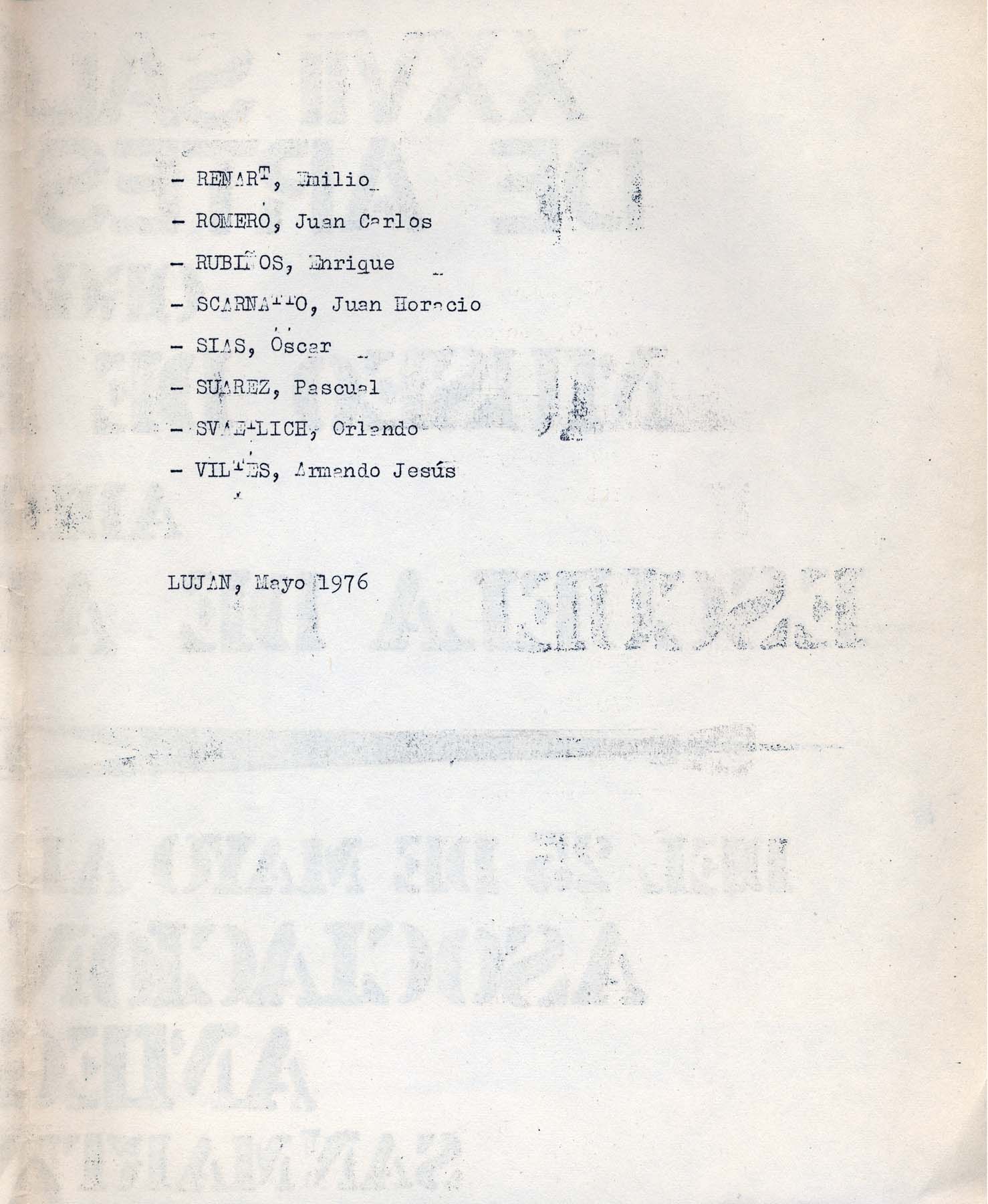 Adhiere escuela de artes de luján. Se llevó a cabo en el Centro Cultural Ameghino. Exponen: Agüero, Canteros, Cirigliano, Cieto, D'Aniello, Dorronzoro, Etcheverry, Foglia, García, Gualchi, Lavarello, Longhini, Martinez, Mendoza, Pino, Renart, Romero, Rubiños, Scarnatto, Sias, Suarez, Svaetlich, Viltes,