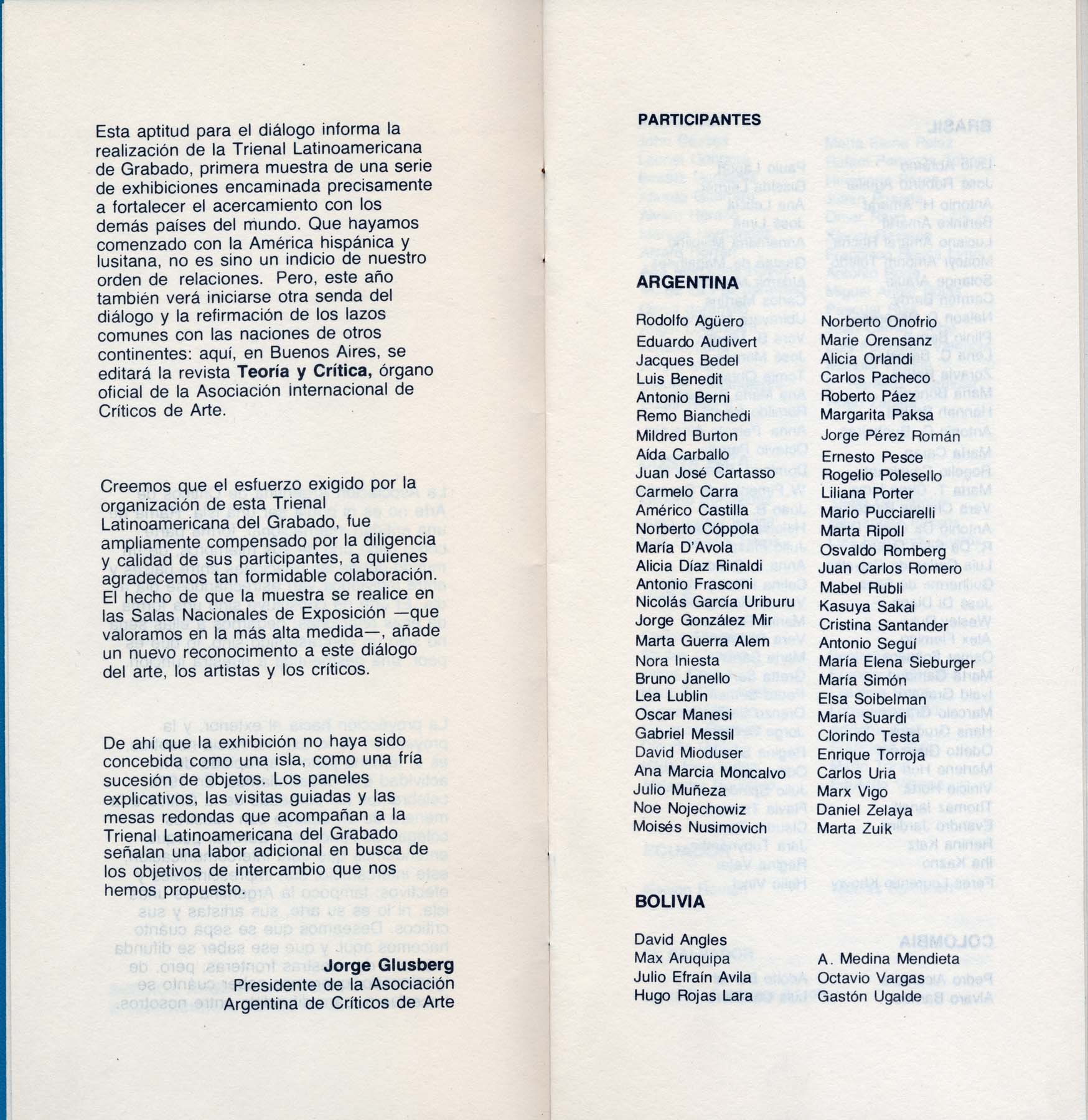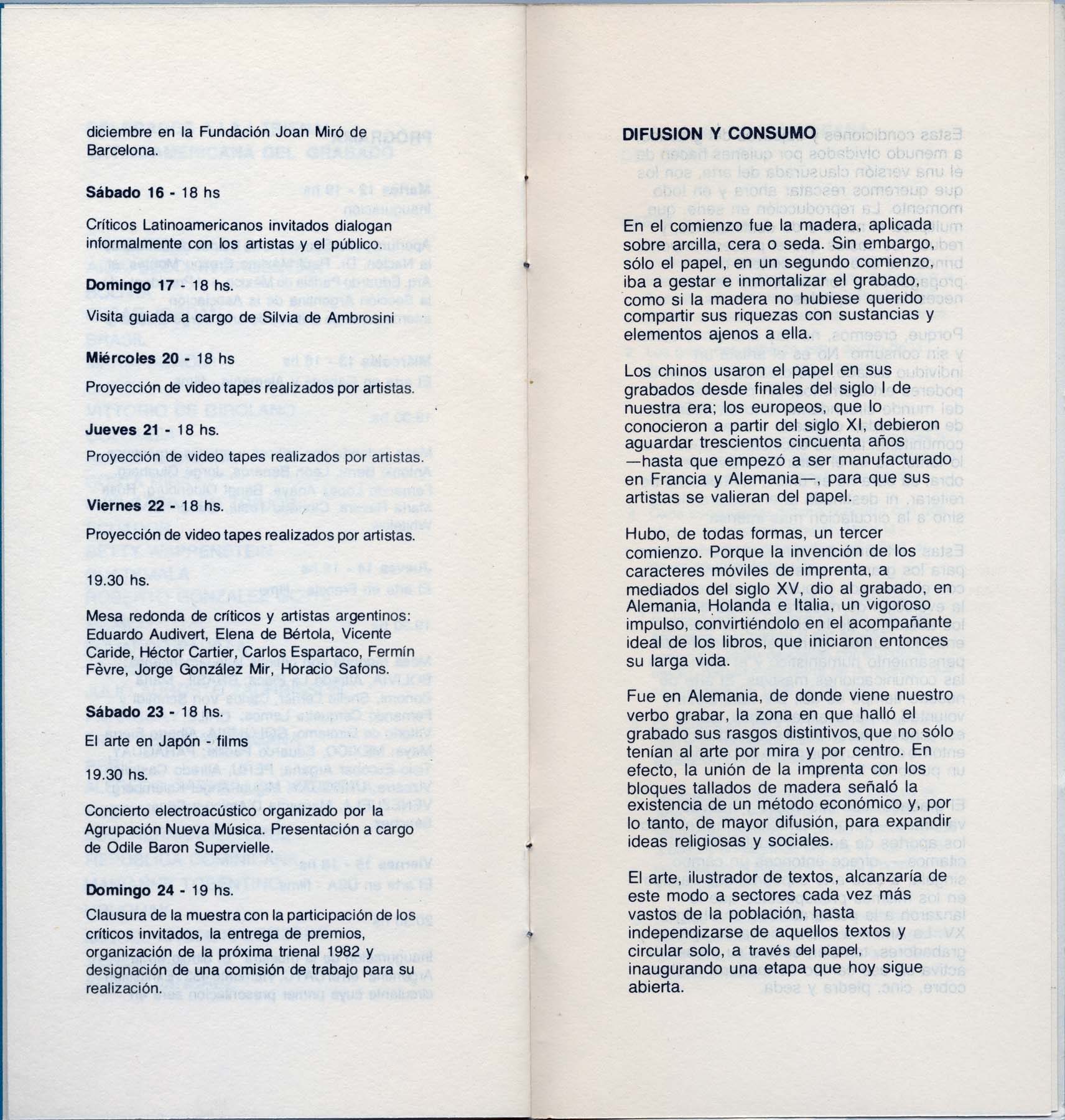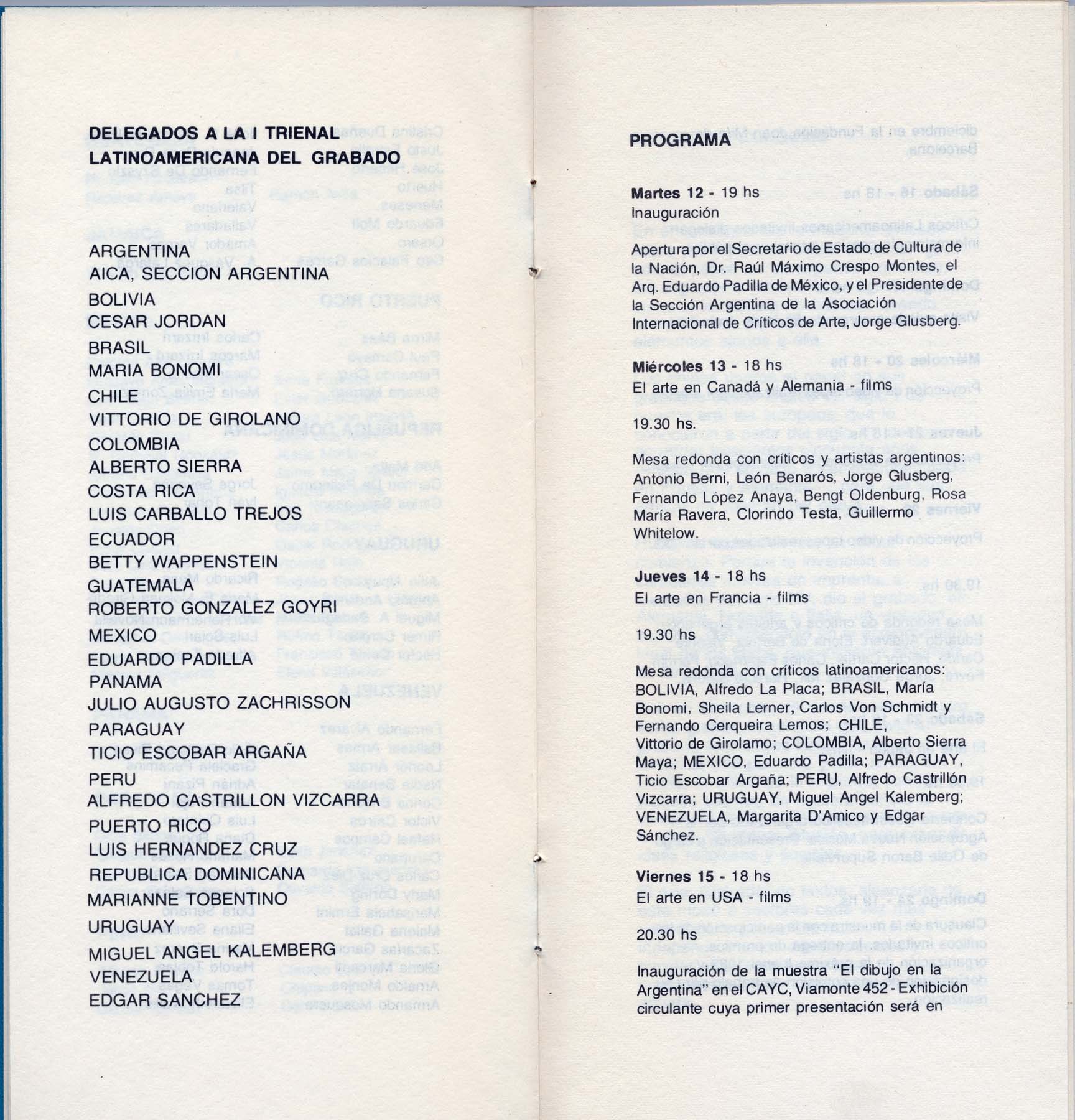 Texto de Jorge Glusberg. Presidente de la Asociación Argentina de Críticos de Arte. En el programa figura: Inauguración de "El dibujo en la argentina". Agüero, Audivert, Bedel, Berni, Bianchedi, Burton, Carballo, Cartasso, Carra, Castillia, Cóppola, D'Avota, Rinaldi, Frasconi, García Uriburu, Gonzalez Mir, Guerra Mir, Guerra Alem, Iniesta, Janello, Luiblin, Manesi, Messil, Mioduser, Marcia Moncalvo, Muñeza, Nojechowiz, Nusimovich, Onofrio, Orensanz, Orlandi, Pachecho, Paez, Paksa, Pérez Roman, Romberg, Santander, Seguí, Testa, Torroja, Uria, Vigo, Zelaya.